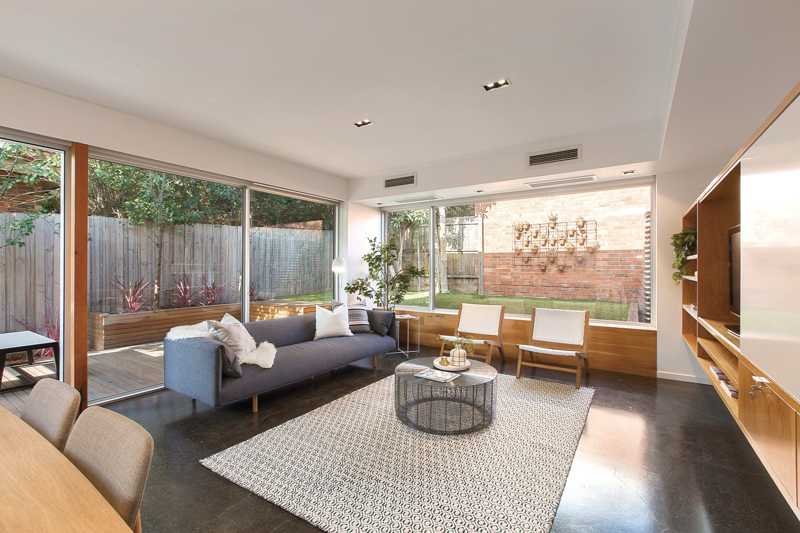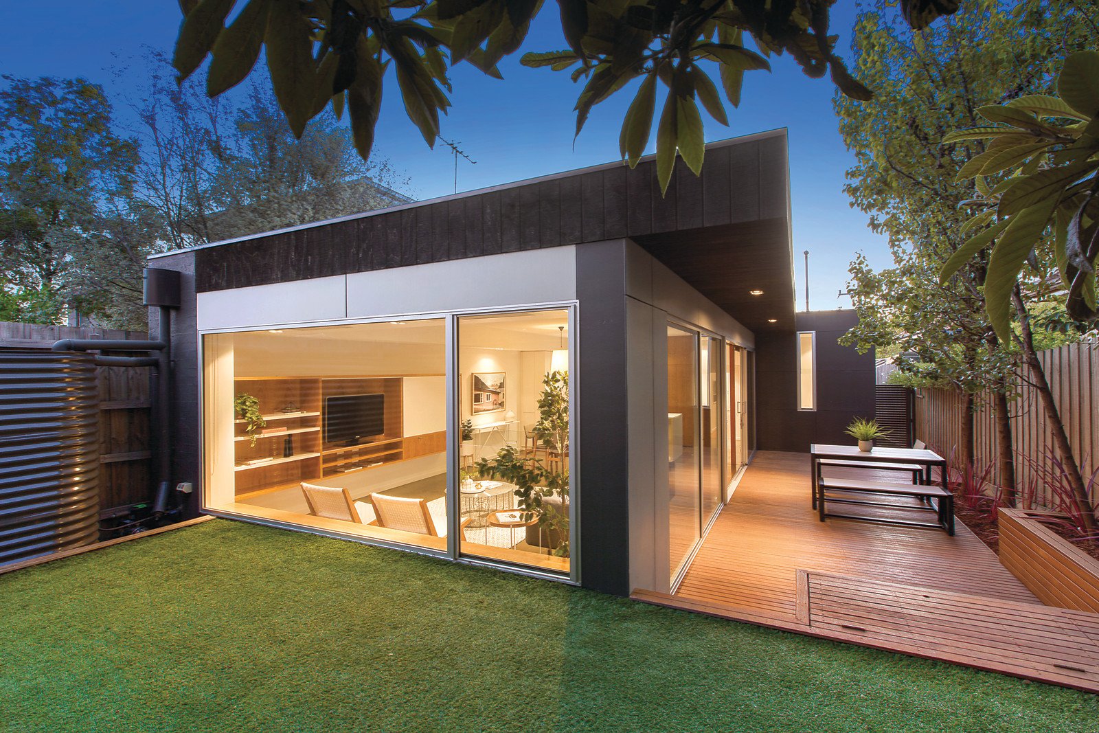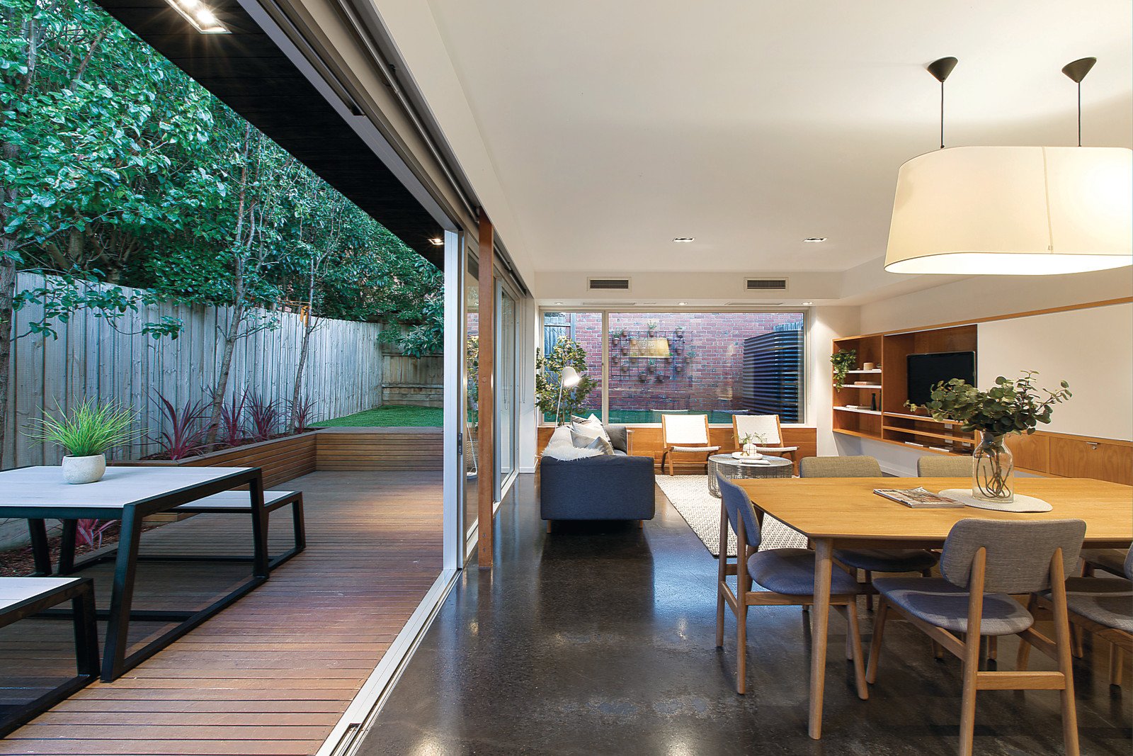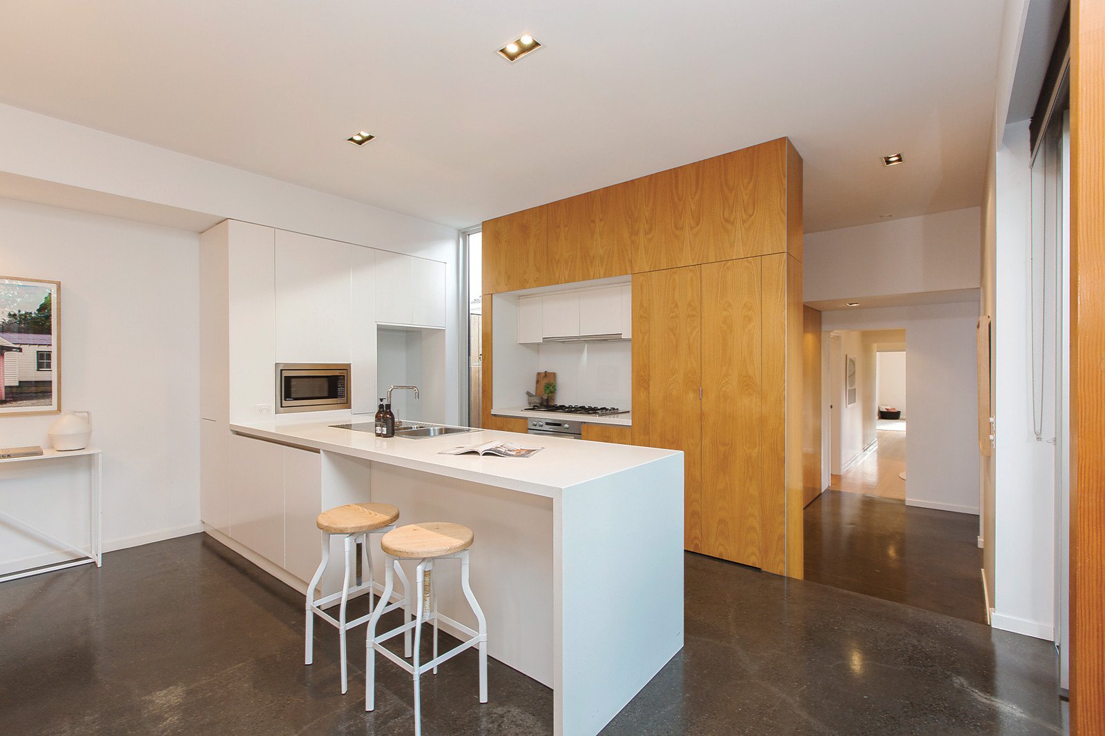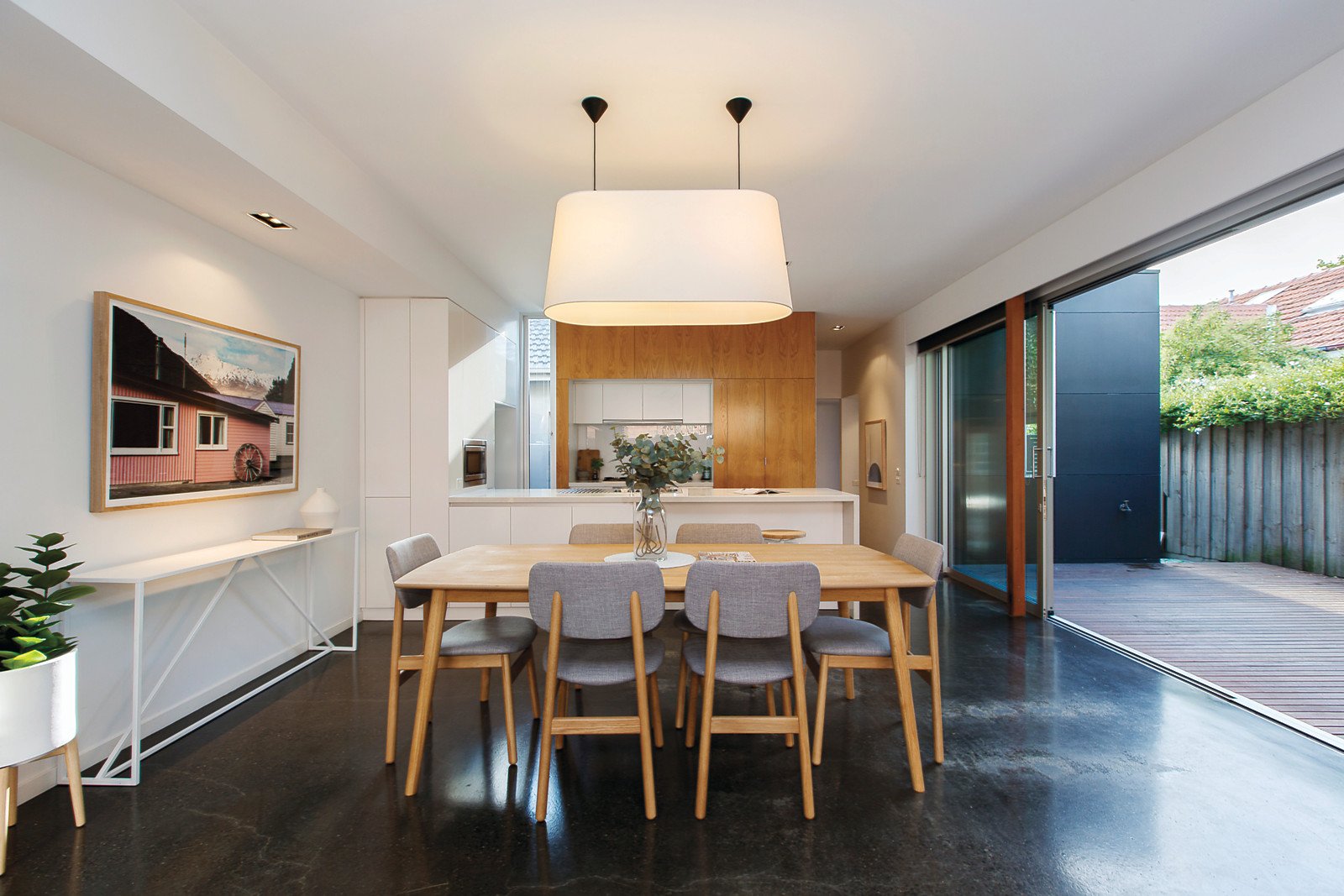 A cleverly designed flowing floorplan divides the original front section into three bedrooms, main with sleek ensuite and light well, study and family bathroom. The rear living areas have cutting edge contemporary style and unexpected space. Highlighted by polished concrete floors, custom oak veneer joinery, white decor, strategically positioned windows and sliding glass walls. This indoor/outdoor room delivers loads of natural light to the family living area with a laundry, powder room plus a smart CaesarStone, stainless steel kitchen and WIP all flowing to a sun drenched northern deck and rear garden. Other features include art deco period features, heating & cooling throughout, 3,000ltr rain water tank, easy care gardens & double off- street parking.