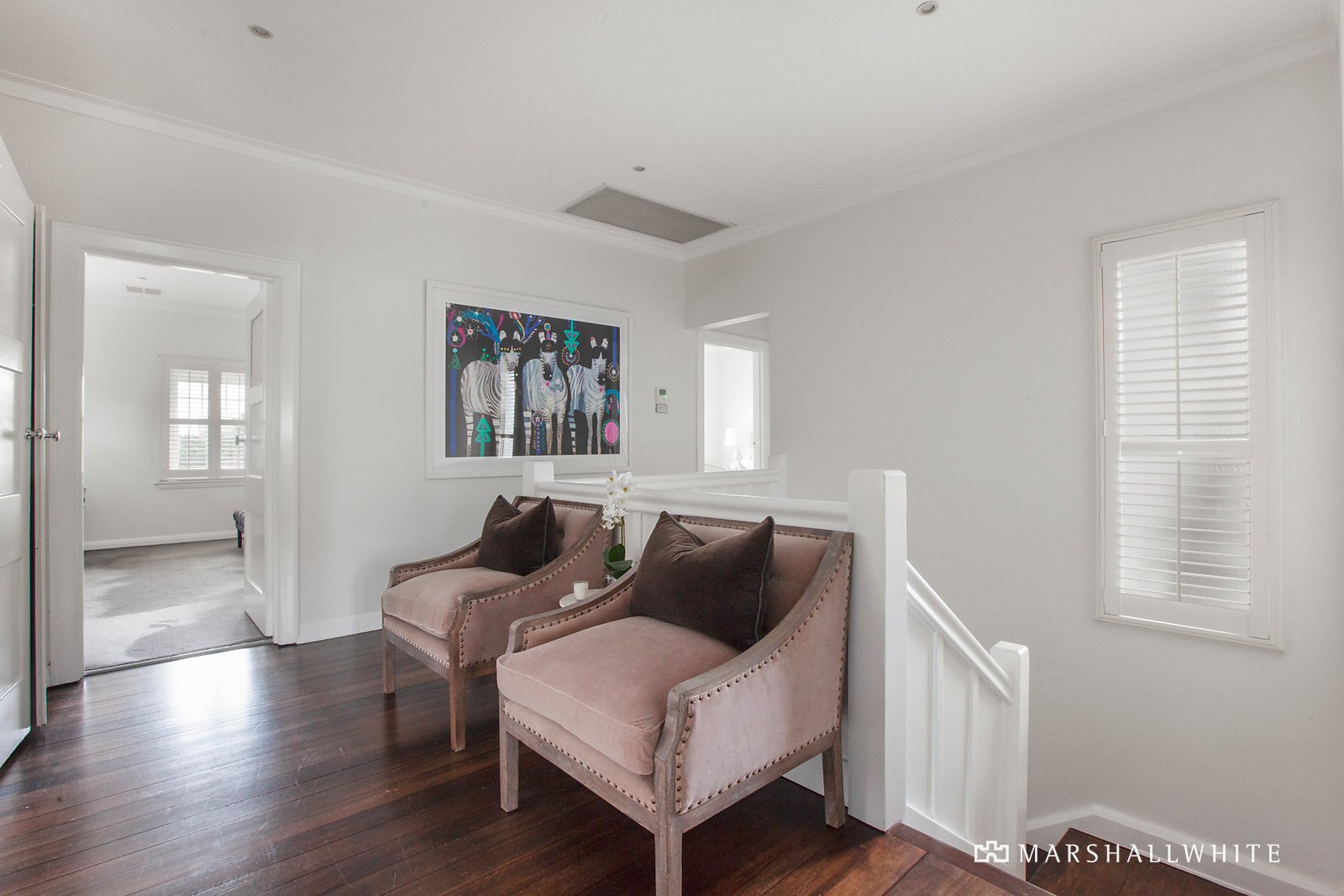 Serenely set behind a high walled garden, the portico entrance introduces a wide foyer and an elegantly proportioned sitting room (open fire) featuring high ceilings and dark timber floors. The dark timber floors continue through the generous formal dining room which opens to the landscaped northwest-facing private garden. The gourmet kitchen boasting marble benches and Miele appliances and a light-filled family living room (fireplace) opens through French doors to the picturesque private northeast garden and glorious heated pool. It's a tranquil oasis surrounded by soaring hedged gardens. Upstairs, there are two gorgeous double bedrooms with stylish en suites and built in robes, a third spacious bedroom with robe and desk, lavish designer bathroom and a 4th bedroom/study.