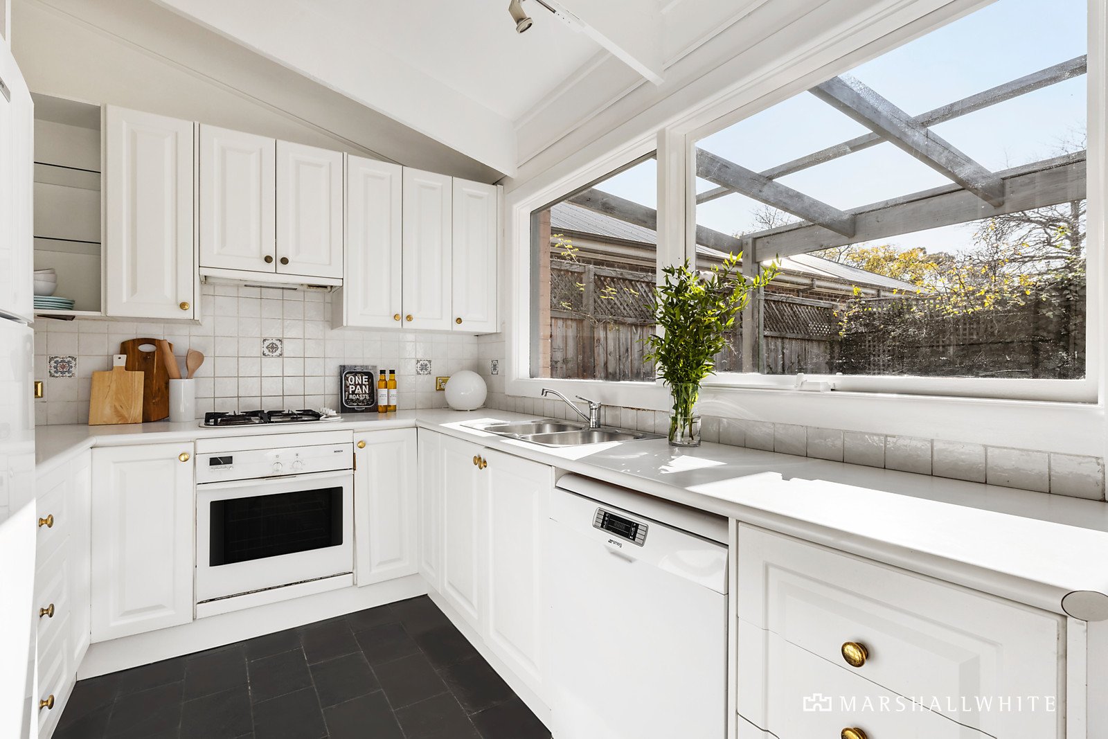 The current home is enhanced by vistas of and access to the leafy gardens, courtyard areas and mature trees which surround the home. The recently refurbished interior features a flexible floor-plan with Baltic Pine floors through the hallway dividing a formal sitting room flowing to a front study and a second living or dining room. Complemented by two bedrooms (a potential third bedroom), the main has BIRs and period-style ensuite opening to a walled front garden. Plus a bathroom/laundry and sun-drenched north-facing kitchen with Euro appliances and informal dining opening to a private garden - ideal for alfresco entertaining. Other features include tandem carport or storage (with access from New Street).