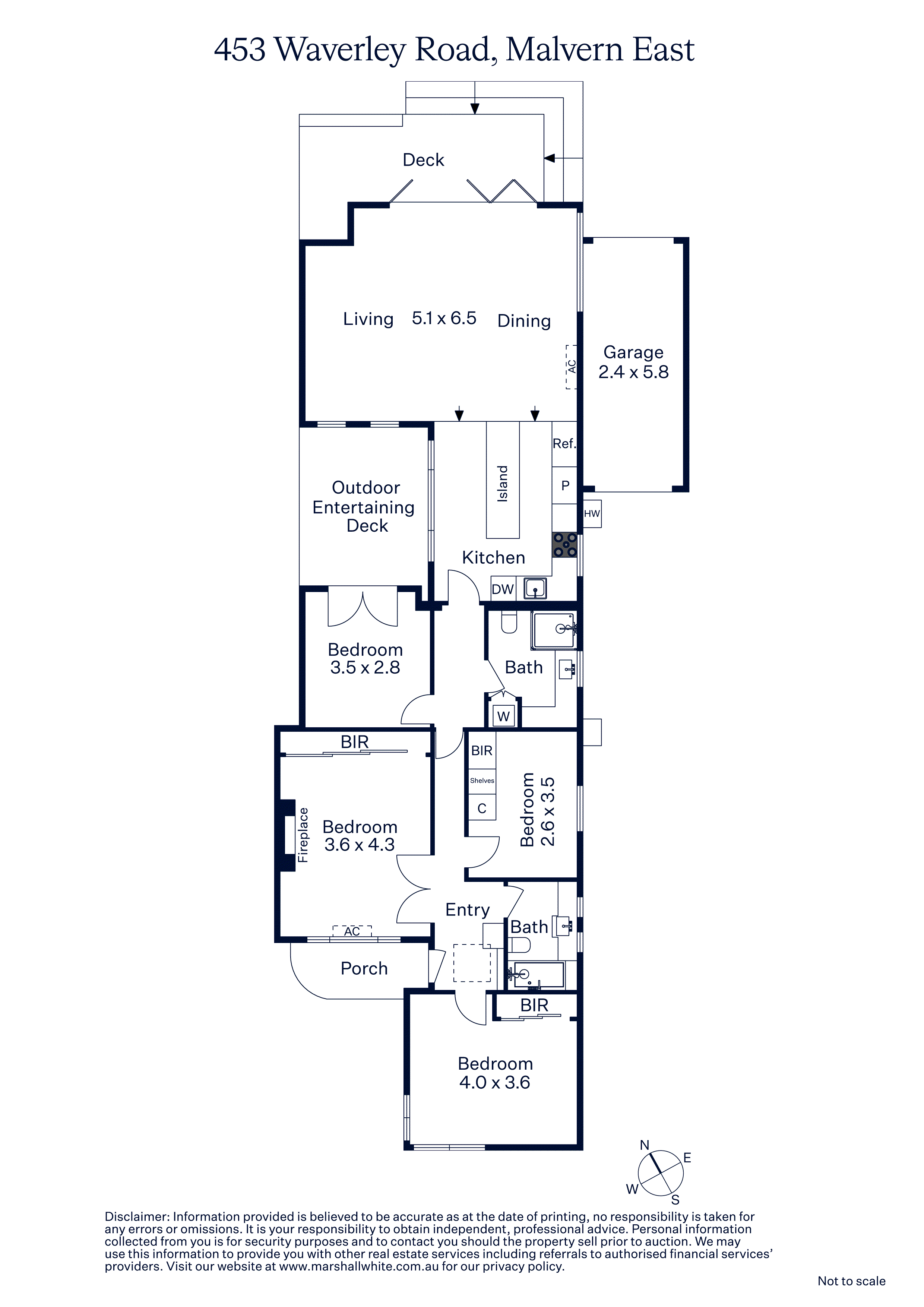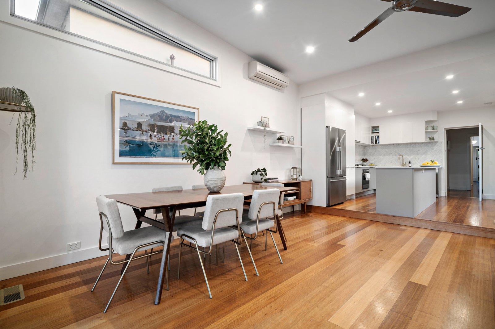 Serenely positioned behind a high wall, the sky-lit entrance hall featuring timber floors flows through to a beautiful bedroom with built in robe, two additional double bedrooms with robes, a generous 4th bedroom or playroom/retreat and two stylish bathrooms. Overlooking a central decked west-facing courtyard, the sleek gourmet kitchen is appointed with Smeg and Bosch appliances, stone benches and marble splash-back. Beneath a raked ceiling with clerestory windows, the expansive living and dining room opens through bi-fold doors to a broad decked entertaining area overlooking the entirely private leafy north-facing garden with a versatile study or gym and storage.