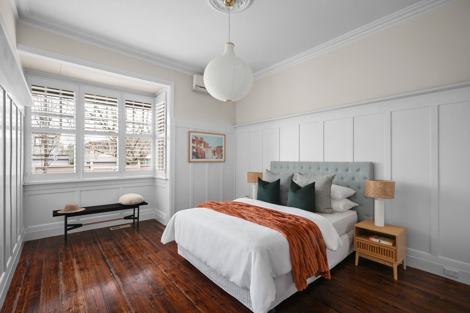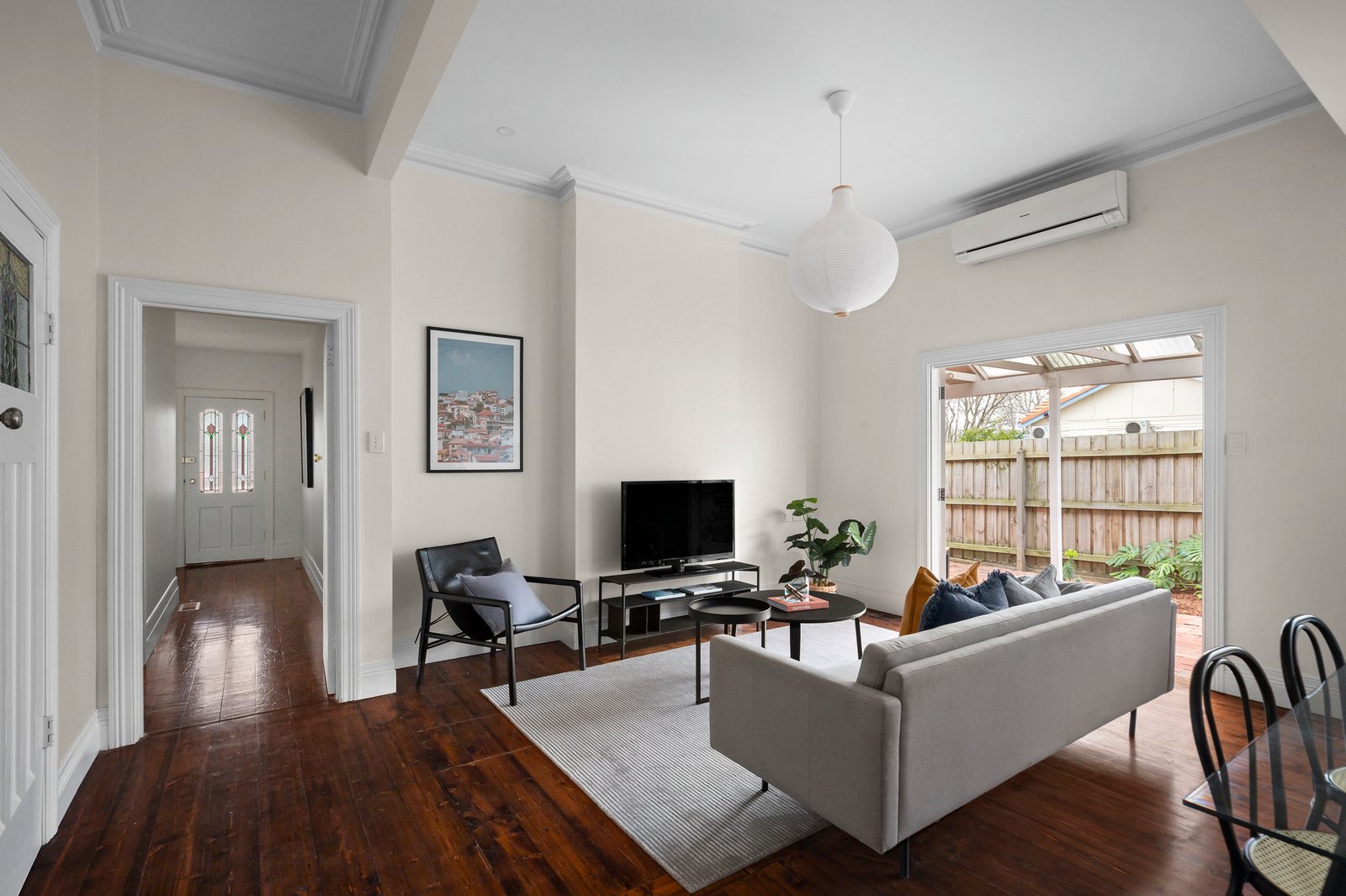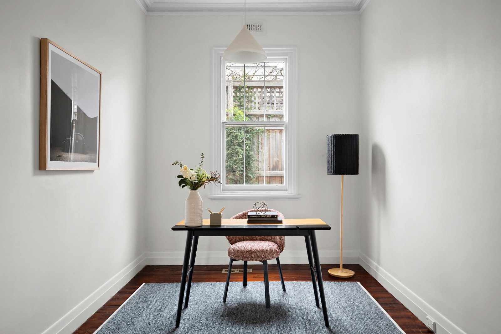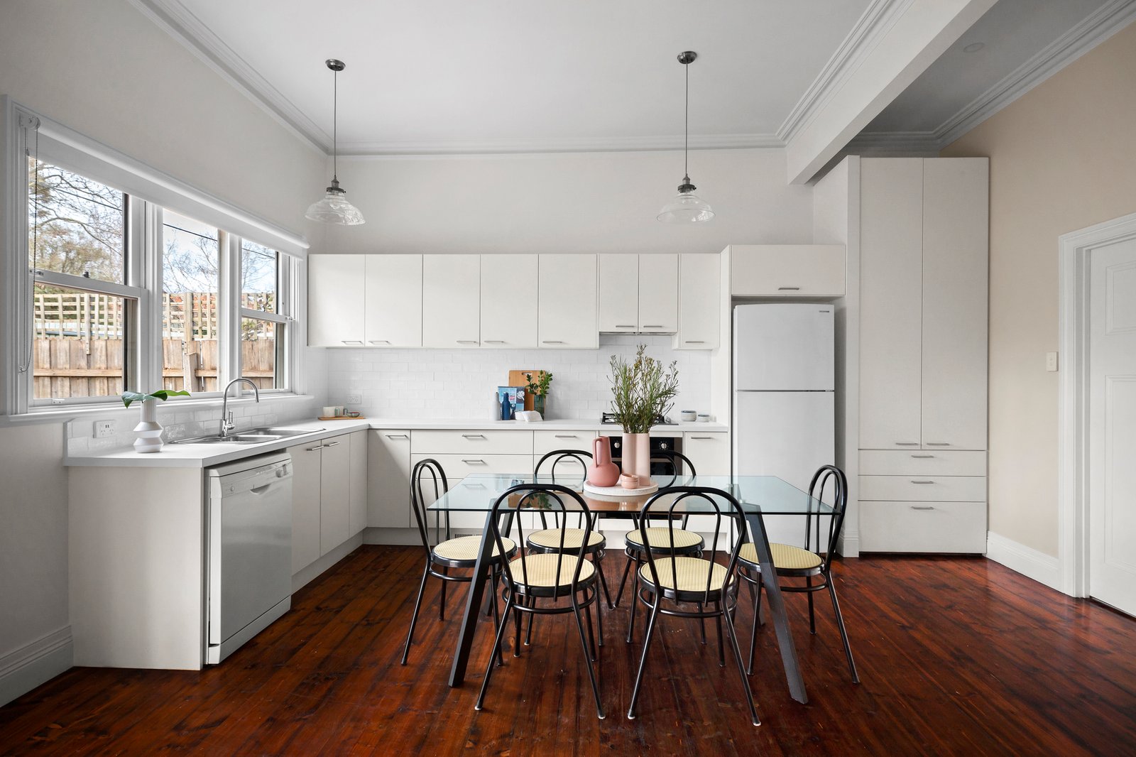 Dark Baltic pine floors and high ceilings define the entrance hall, generous main bedroom with en suite, two additional double bedrooms, a home office or 4th bedroom and a stylish bathroom. Bathed in northern light, the spacious open plan living and dining room with a sleek European kitchen opens to a large undercover terrace, ideal for al fresco dining overlooking the garden.