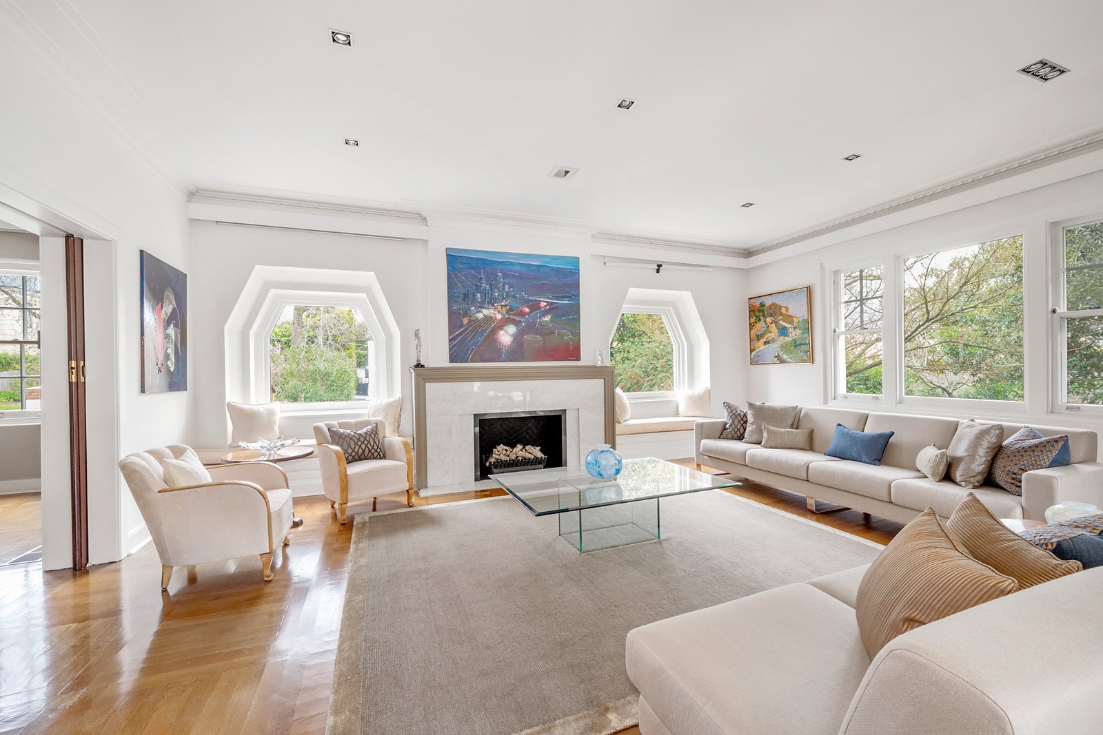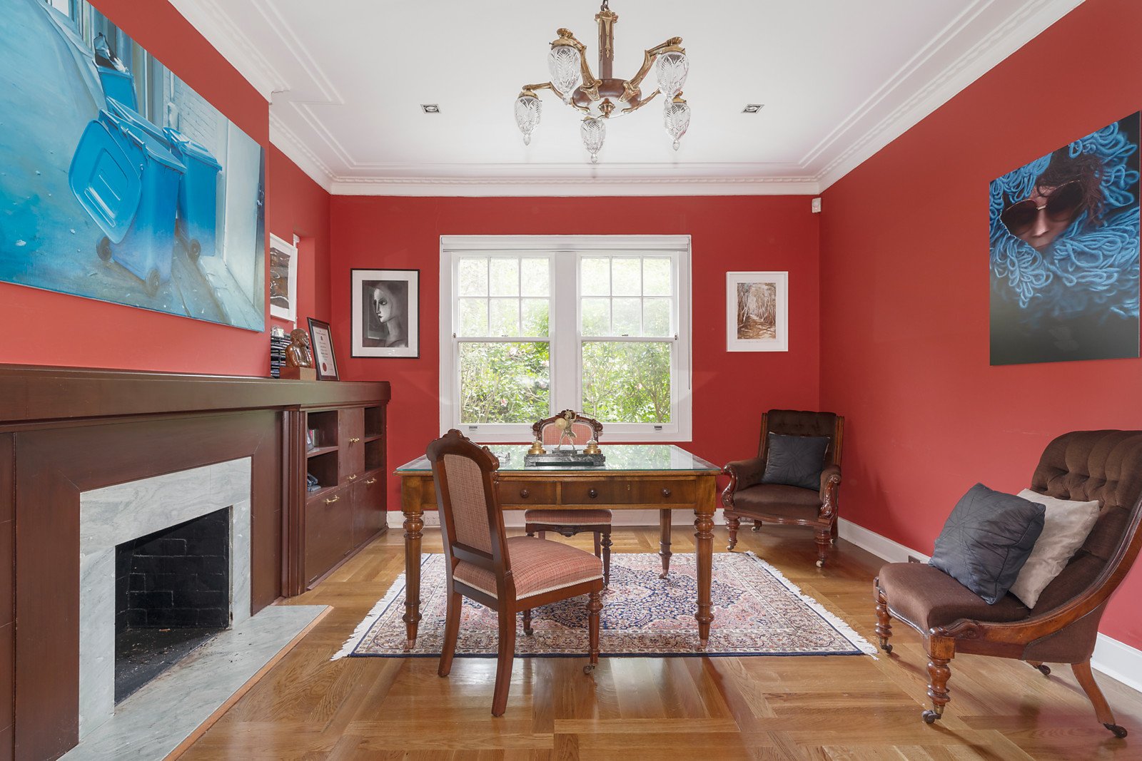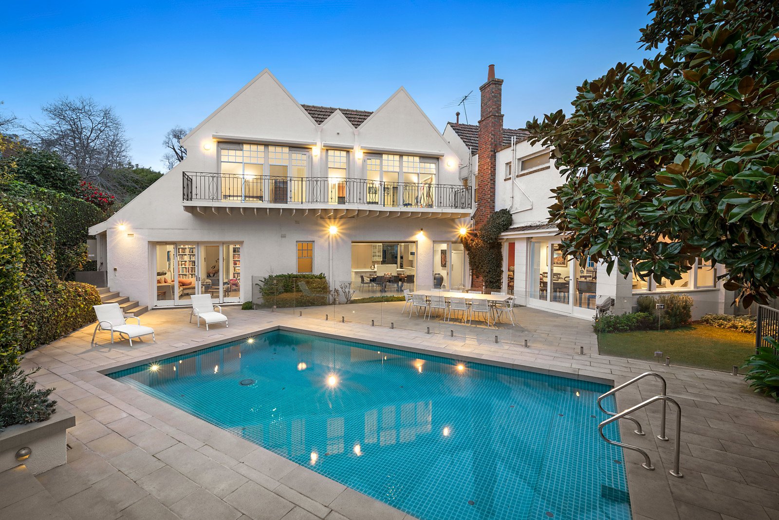 Framed by glorious established gardens, the evocative free-flowing interior spaces featuring oak parquetry floors and high ceilings are perfect for both relaxed family living and entertaining on a lavish scale. An expansive reception hall with gas fireplace introduces a refined sitting room with two gorgeous window seats and a fireplace, stately fitted study, a music nook and the gracious formal dining room. The sleek gourmet kitchen appointed with marble and white stone benches and premium appliances, light filled family dining area and a separate living or media room open to the picturesque private landscaped north-facing garden with heated pool and terraces. The opulently proportioned main bedroom with dual robes and luxurious en suite is accompanied by three additional bedrooms with built in robes and a stylish bathroom. With its own entrance and featuring soaring vaulted ceilings, a sensational self contained attic style apartment includes a kitchenette, bathroom, built in robe and wide north-facing balcony.