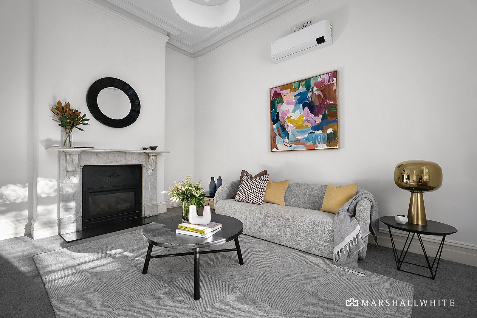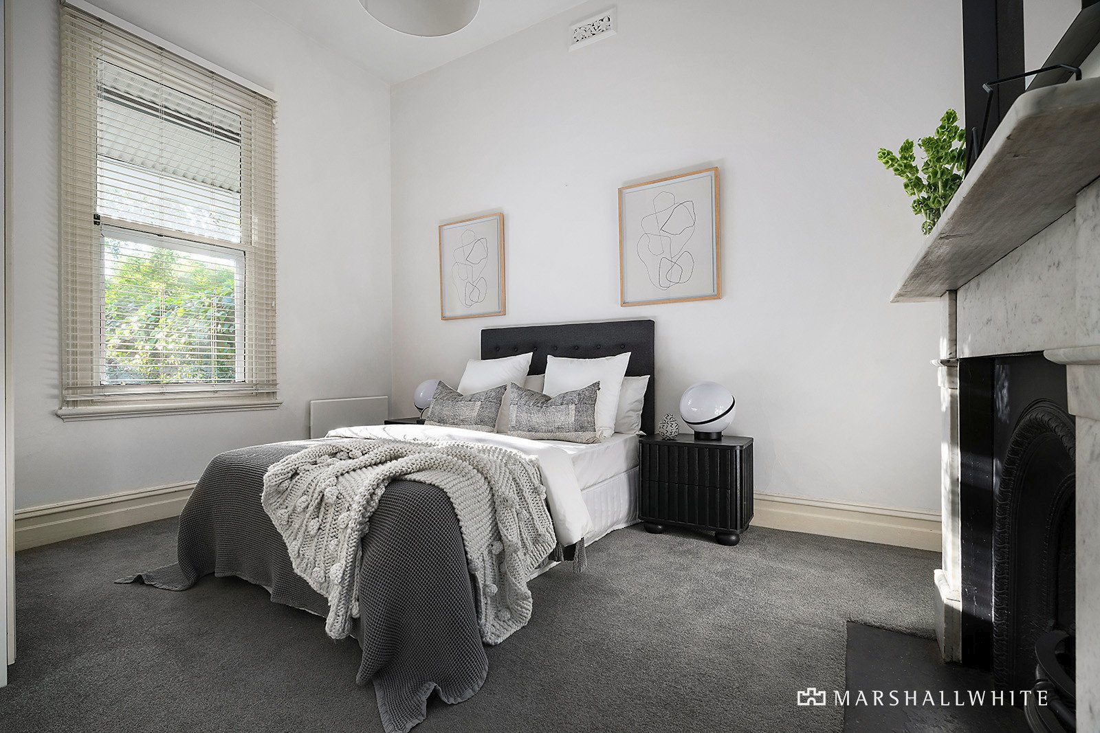 A gorgeous, landscaped garden and verandah frame the wide arched central hall which flows through to an elegant sitting room with marble fireplace, two light-filled bedrooms with marble fireplaces and robes, two additional double bedrooms and a bright bathroom with separate toilet. Natural light streams through the open plan living/dining room and capable timber kitchen opening to the private northeast garden.