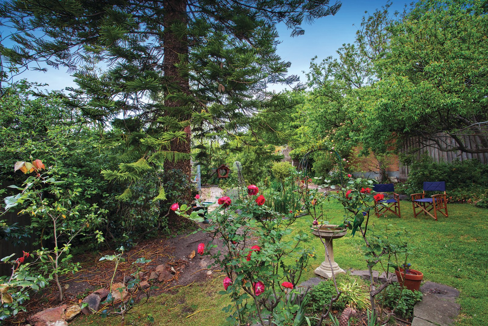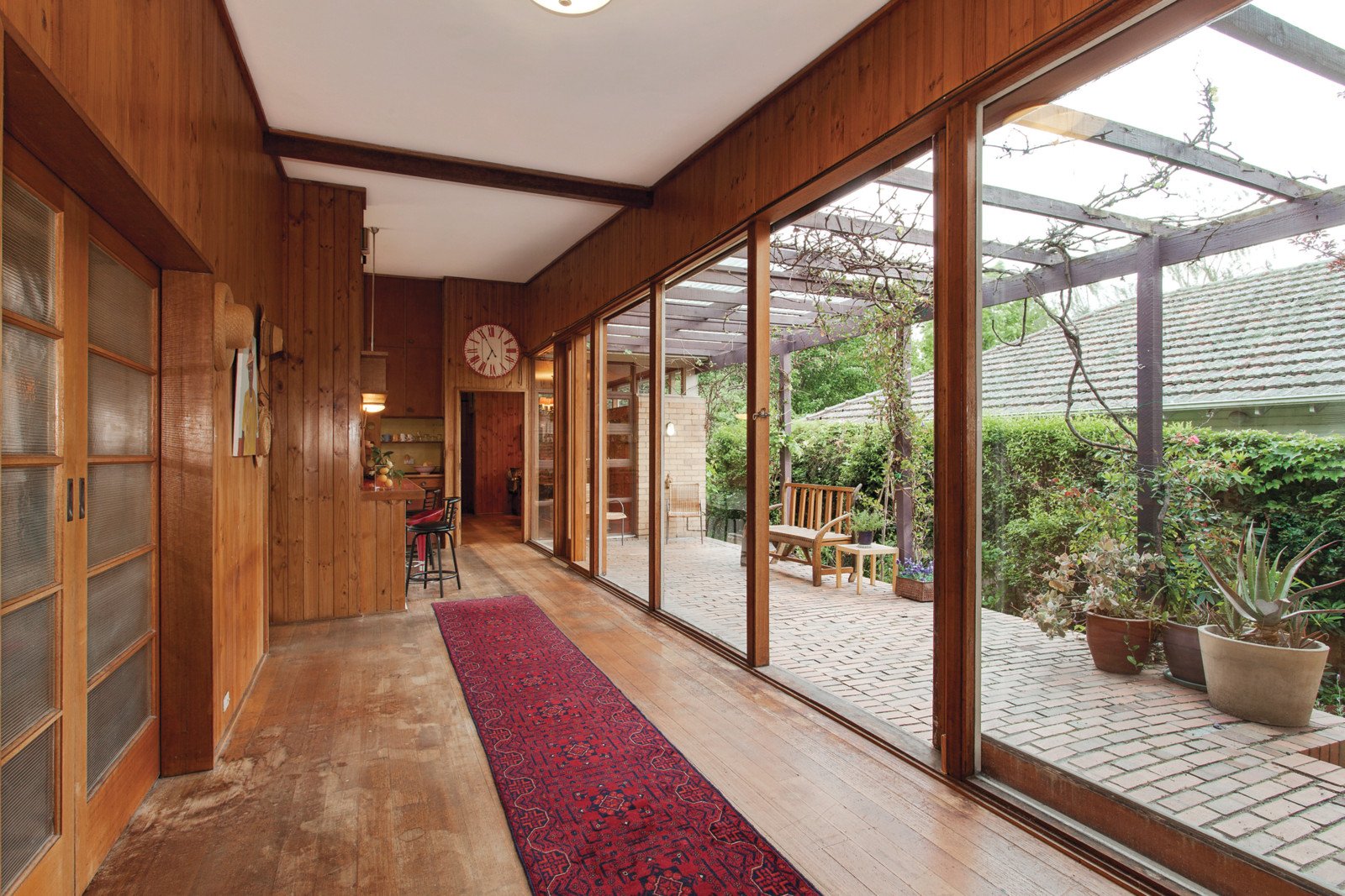 Enjoying soaring ceilings, timber floors and a superb northern orientation, the floor plan is still relevant to modern lifestyles. The spacious living and dining room with a gas fireplace incorporates a large mezzanine retreat that opens to a west-facing balcony. The kitchen includes the original oven which still functions impeccably. A long light-filled gallery opens out to a north-facing terrace and through to the very deep entirely private northeast garden shaded by a majestic Norfolk Pine. Three bedrooms with plenty of robes and a study or retreat are accompanied by a bathroom and shower-room.