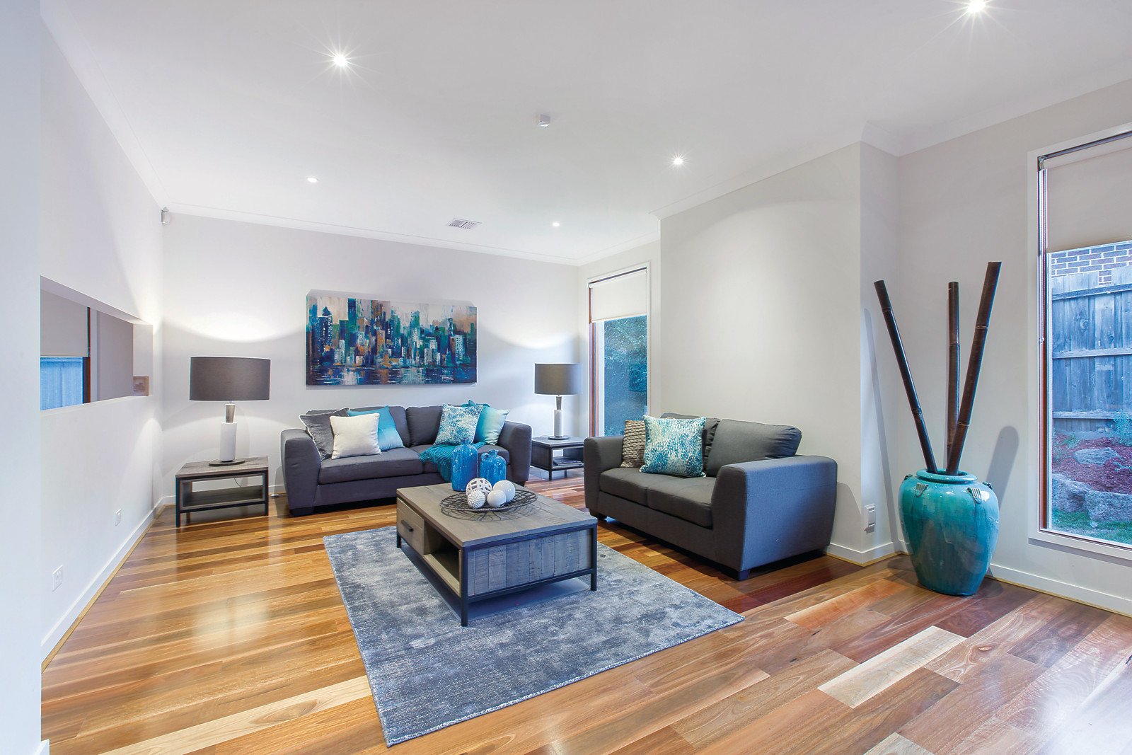 Impeccably appointed throughout, it includes alarm, video intercom, heating/cooling, ducted vacuum, powder-room, laundry, double glazing, storage and internally accessed double garage.