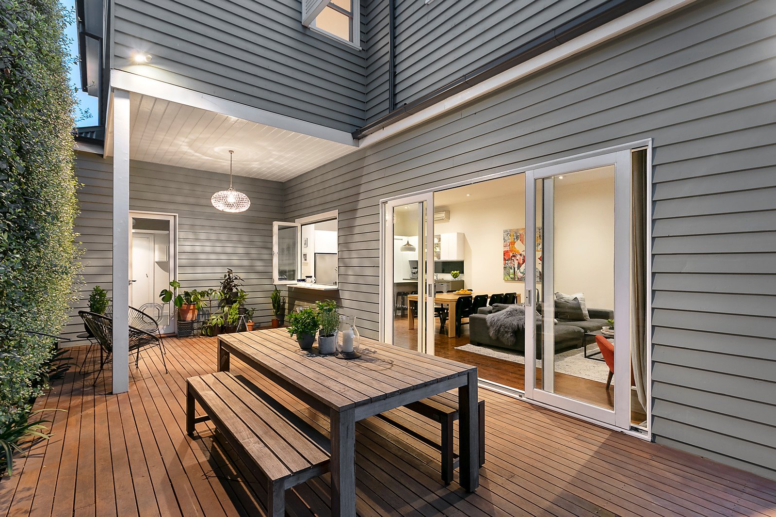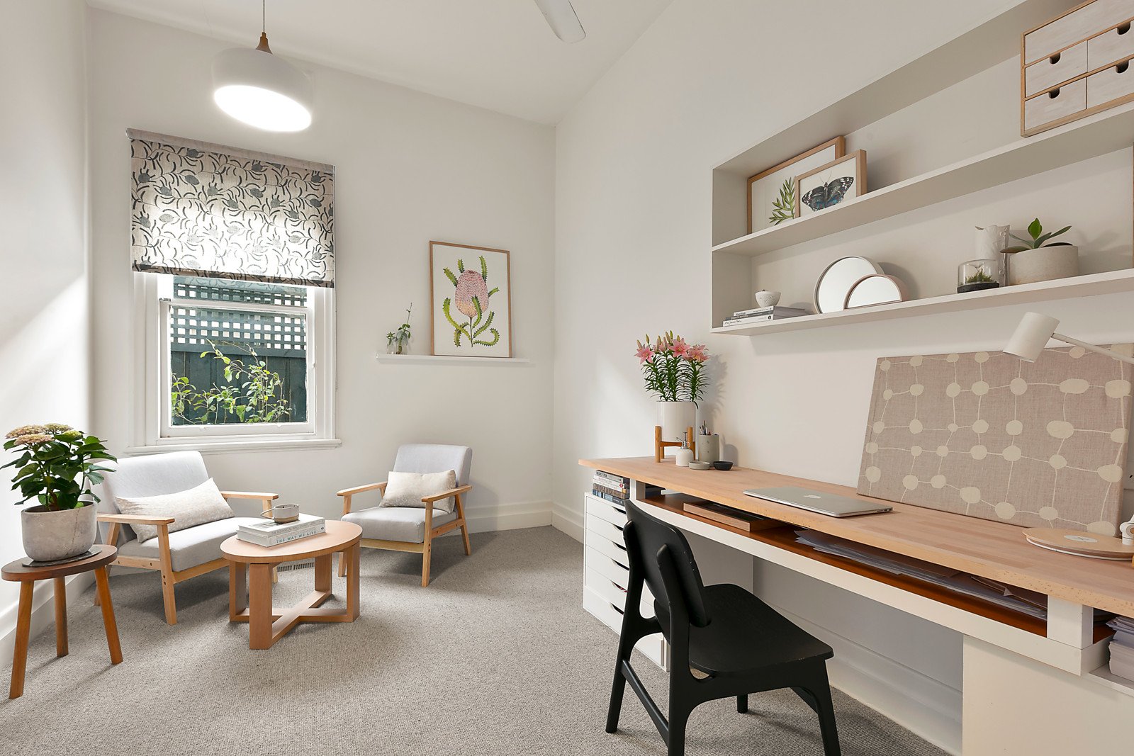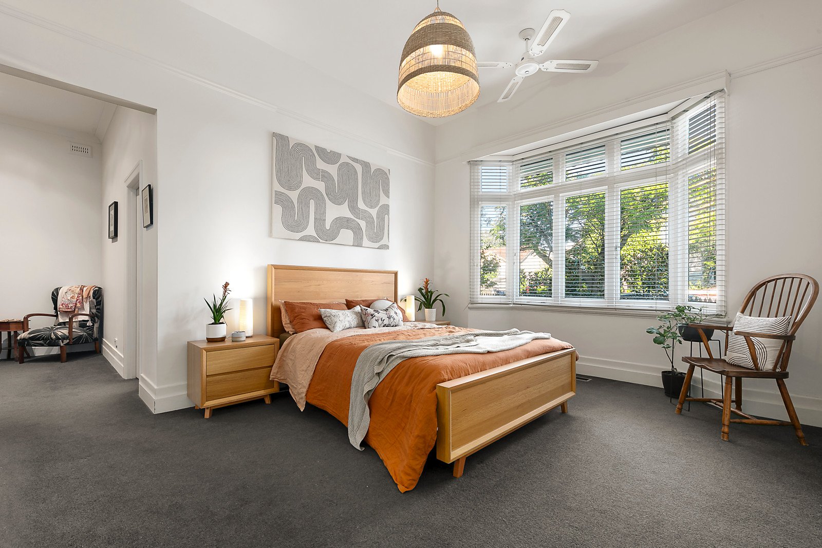 The traditional L-shaped hallway featuring high ceilings and stained Baltic pine floors introduces a generous sitting room with a bank of library shelves, a superb study or 5th bedroom and powder-room. High ceilings continue through the expansive open plan living and dining room with a gas log fire and sleek gourmet kitchen appointed with a 90cm Ilve oven, Miele dishwasher and stone benches. Bi-fold servery windows and glass sliders open to a large entertaining deck and the deep private northwest facing garden offering plenty of room for a pool and access to a rear right of way. The beautiful main bedroom with a huge walk in robe and chic en suite enjoys its own space downstairs while a sensational children's zone upstairs comprises three genuine double bedrooms with robes, a stylish bathroom and spacious retreat.