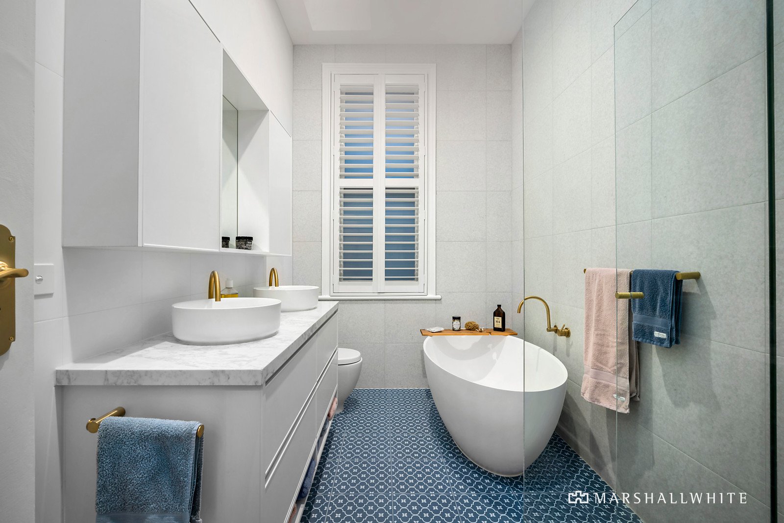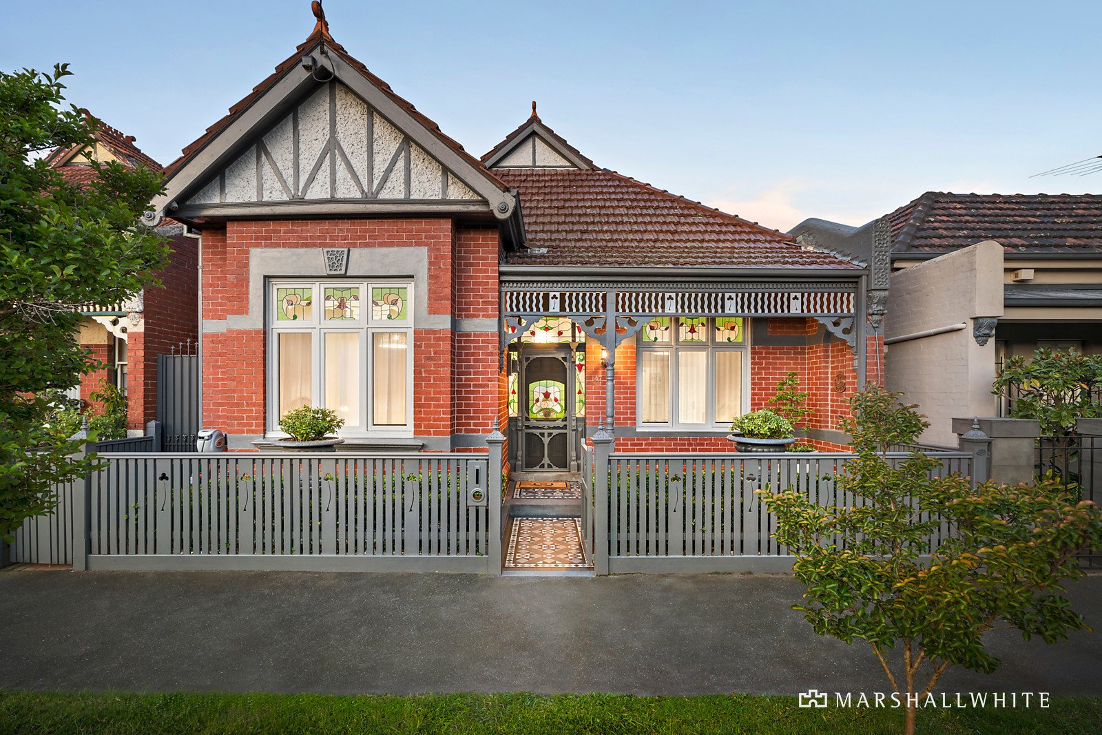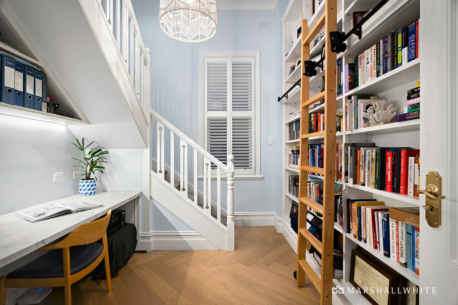 Unexpectedly spacious and instantly calming, the home's impeccable interior matches the hallmark period charms, with a restored tessellated entrance leading into ultra-high ceilings with double fretwork arch and wide oak floors. Attention to detail and an eye for design are resplendent in the beautiful main bedroom, featuring walk-in fitted robes and a soothing ensuite with underfloor heating and feature tiling. This is matched by two additional bedrooms, including the top-floor guest room with ensuite and built-in robes. A study with library shelving and a built-in desk is ideal for those seeking floor plan flexibility, supplemented by a designer family bathroom with a freestanding bath and underfloor heating.