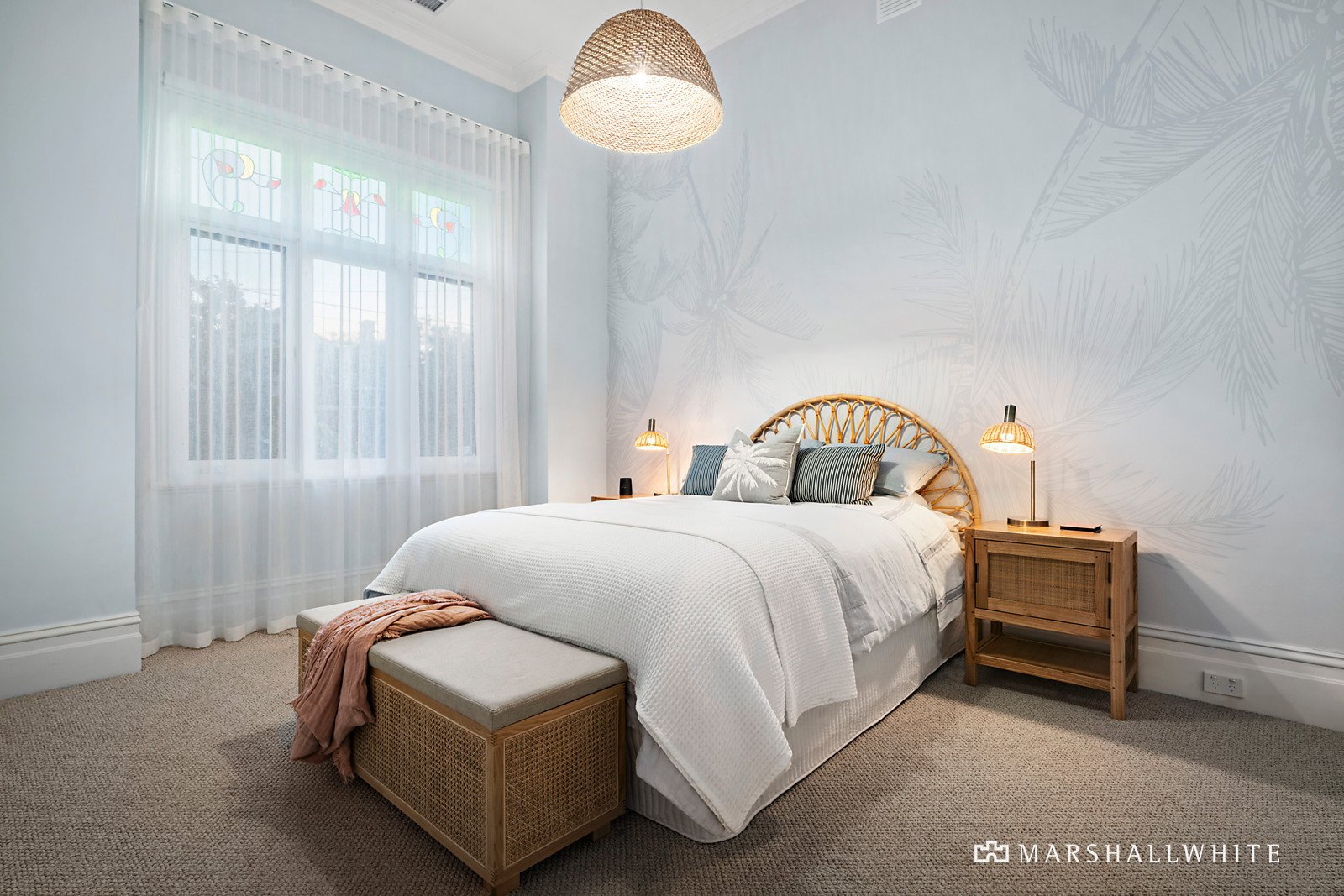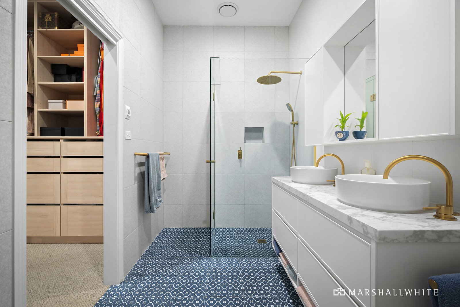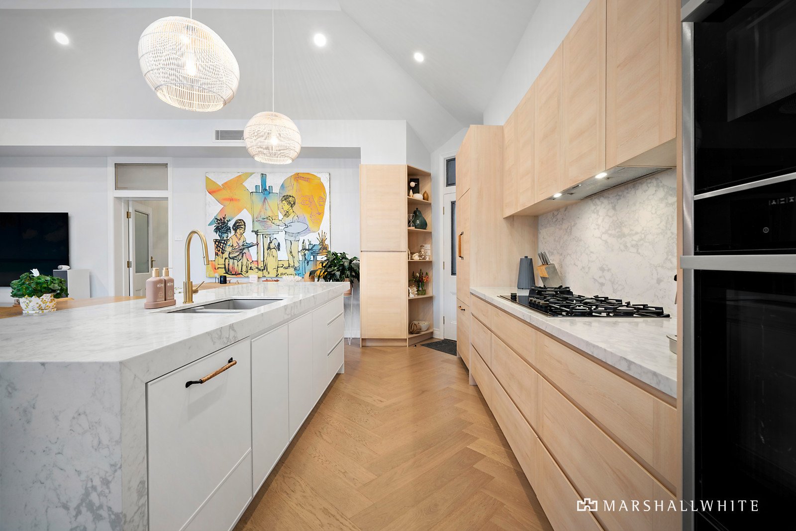 Unexpectedly spacious and instantly calming, the home's impeccable interior matches the hallmark period charms, with a restored tessellated entrance leading into ultra-high ceilings with double fretwork arch and wide oak floors. Attention to detail and an eye for design are resplendent in the beautiful main bedroom, featuring walk-in fitted robes and a soothing ensuite with underfloor heating and feature tiling. This is matched by two additional bedrooms, including the top-floor guest room with ensuite and built-in robes. A study with library shelving and a built-in desk is ideal for those seeking floor plan flexibility, supplemented by a designer family bathroom with a freestanding bath and underfloor heating.