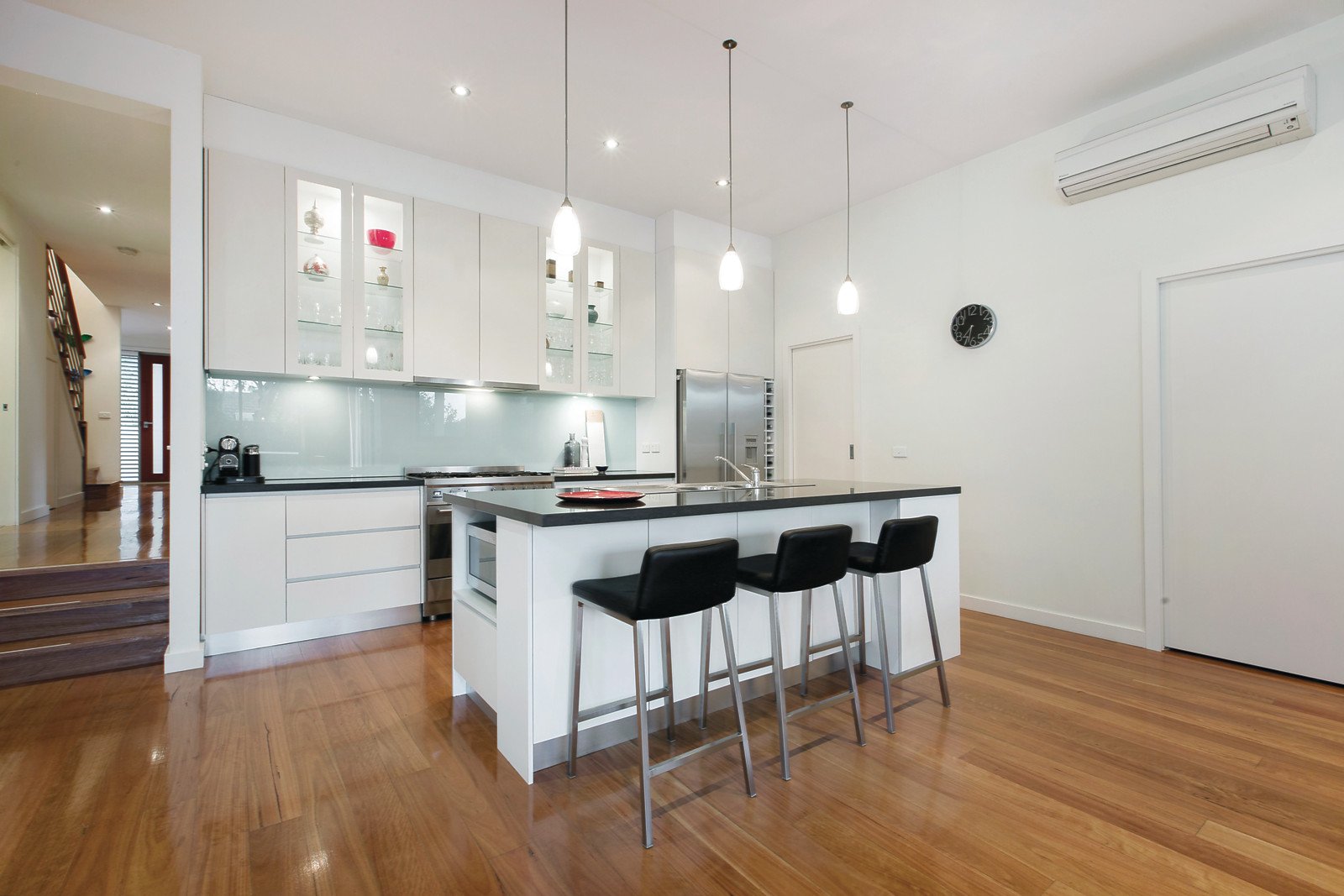 A private oasis, a prime address and true spaciousness combine for an exclusive way of living. Recent renovations have added a luxury dimension to this three-level residence, adding new luxury inside and a self-cleaning plunge pool outside. Four bedrooms and a study includes a standout main suite with huge dressing room, there's dual living areas, and a four-car basement garage and gym. This is a calm retreat to come home to, where you can relax in front of the pebble gas fireplace in the lounge room, enjoy the sun-filled family room with pool views and deck access, and appreciate the quality-rich interior. The Smeg and Miele kitchen is generous and luxurious with a butler's pantry, the family room's wall of customized storage is inspired, and the dressing room has so much space and style. Timber floors, lots of storage space, a maintenance-free deck, remote-control outdoor awning, renovated laundry, and keypad basement are just some of the features in this state-of-the-art residence. Easy walk to North Brighton station, Brighton Primary School, and Bay Street's shops and restaurants.