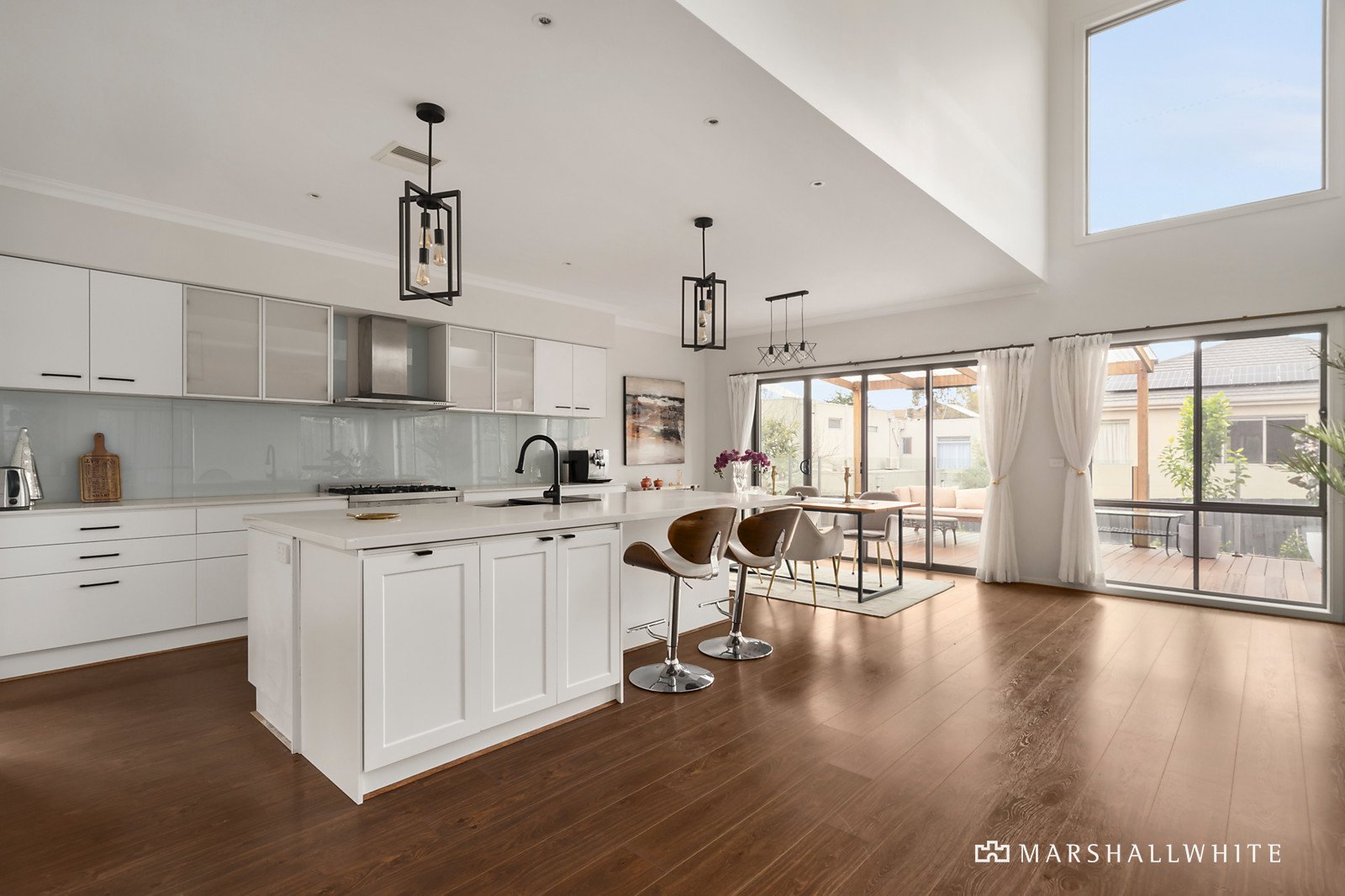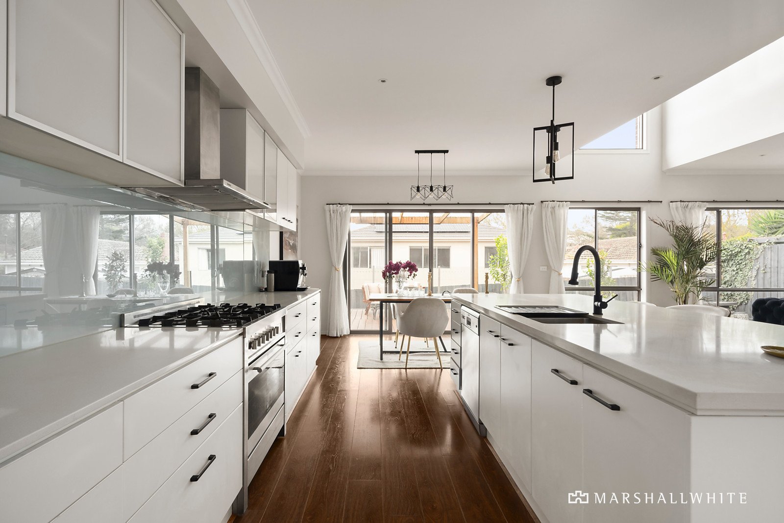 Surrounded by superb parklands, this expansive, two level residence is designed to enhance growing or multi-generational family lifestyles with an array of vast living spaces providing both privacy and togetherness. Abundant space, light and storage is highlighted throughout this tranquil family oasis. Taking advantage of glorious northern light, the generous open plan living/dining zone reveals a double height lightwell and dual aspect windows out to the spacious covered entertaining deck, boundary garden and fire pit. A designer kitchen details premium appliances, oversized island, ample bench space and butler's pantry with cooktop, while a study/home office sits adjacent to a well-positioned play or television room. Dual main bedrooms, one downstairs, one upstairs each comprise walk-in robes and stylish ensuites, with three further upper level bedrooms also offering walk-in or built-in robes and sharing a pristine family bathroom with bath, shower, double vanity and separate WC. A fabulous retreat space, ideal for kids and teenagers, features access to a balcony overlooking the front garden area. This delightful family home also offers a powder room, laundry with external access, ducted heating, evaporative cooling and internally accessed double garage. Enviably located only metres from parklands, with easy access to Gardiners Creek Trail, Malvern Valley Golf Course, recreation facilities, public transport, renowned primary and secondary schools, Monash Freeway, Ashburton Village, Holmesglen, Alamein Train Station, Chadstone Shopping Centre. Land size: 627sqm approx.