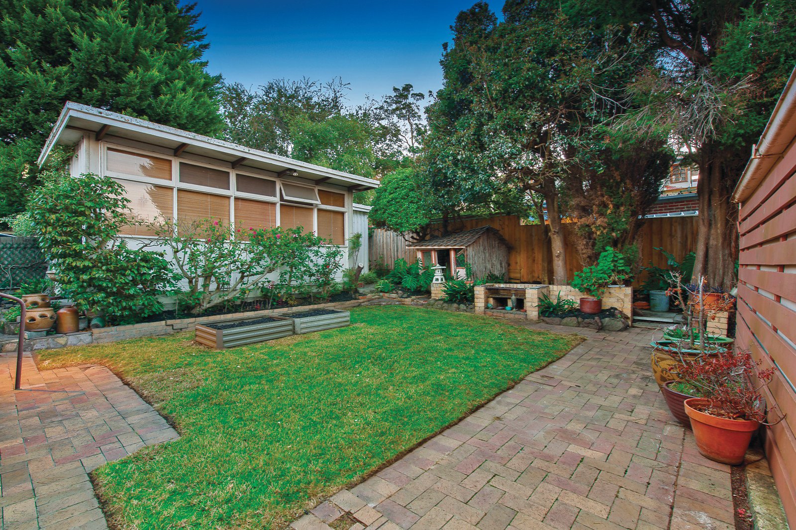 The wide central hall leads to a spacious sitting room and separate formal dining room. The bright capable kitchen and light-filled living and dining room open to the private northwest facing leafy garden. Two double bedrooms with built in robes are complemented by an original bathroom.
