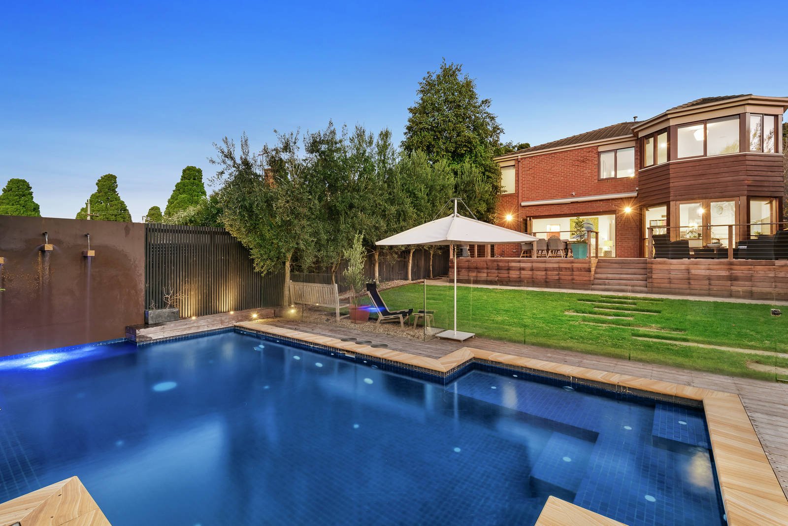 Encapsulating all that is desirable in a two storey family residence this superb example is positioned privately and securely behind a high walled front garden. Providing light-filled north-facing family living spaces of impressive proportions; further enhanced by a sandstone paved entertaining area surrounding a solar and gas heated pool with in-floor cleaning. The accommodation includes polished timber floors through an entrance hall opening to a study/office, formal sitting room and dining room, powder room, laundry and expansive informal dining and living room. Incorporating a stylish kitchen with CaesarStone bench-tops, large entertainers island bench and euro stainless steel appliances. Opening through French and bi-fold doors to a wide deck with electric awning overlooking the pool and deep rear garden lined by Olive trees - delivering brilliant options for indoor/outdoor dining and entertaining. A circular staircase leads to five upstairs bedrooms, a stunning main with retreat area, views to the northern ranges, large ensuite and WIR; plus a family retreat and pristine bathroom with double shower. Other features of this magnificent home include alarm, polished floors, new wool carpets, Jetmaster fireplace (sitting room), split-system heating and cooling, double glazing, remote gates and double garage with direct internal and rear garden access.