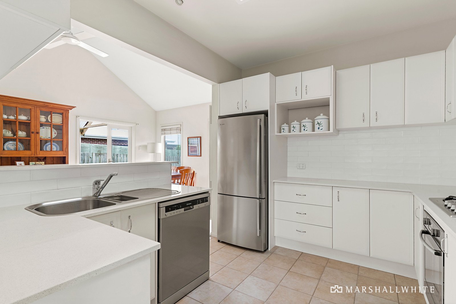 Privately and securely positioned at the rear of a dual occupancy block on 336 square metres (approx.), the character-rich stand-alone home will captivate with its expansive front undercover alfresco deck, and charming, light-filled interiors, with high raked ceilings and engineered timber floors. Central to the open-plan living and dining area, the newly renovated kitchen features stone benchtops, shaker-style cabinetry and Westinghouse appliances including a gas cooktop, oven and dishwasher. Featuring a walk-in-robe, the main bedroom is spacious and bright, while the second bedroom has a built-in robe and desk.
