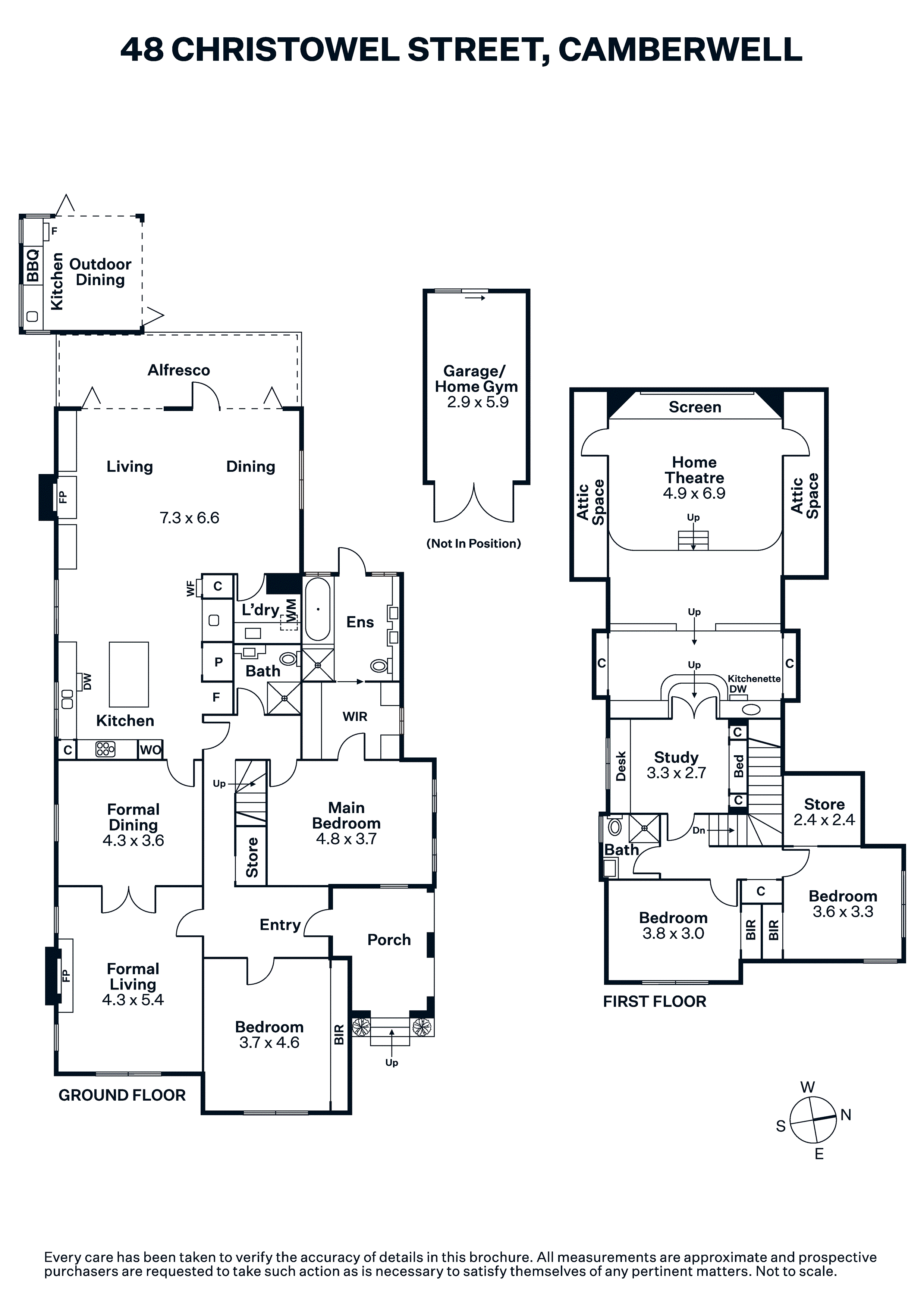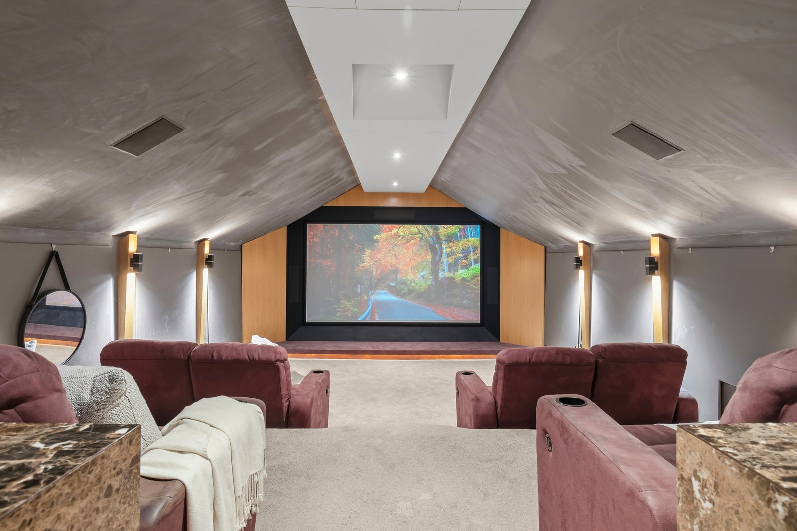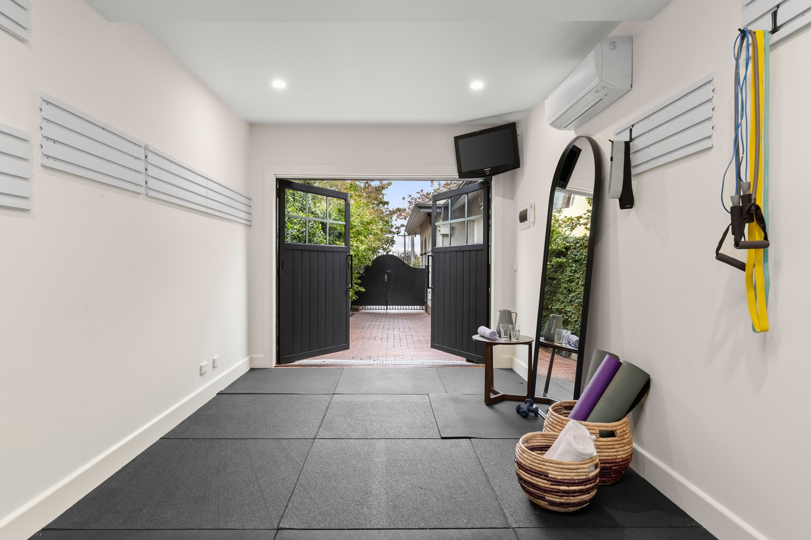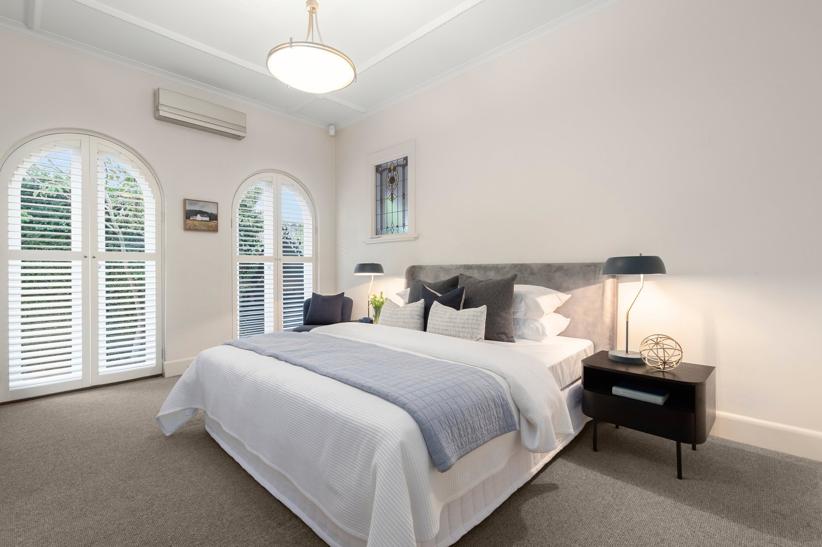 Zoned brilliantly to adapt to the needs of growing families, the home also features a formal dining room and semi-attached lounge – with a gas-converted fireplace – all enriched by the heritage of the home’s original era. Upstairs, a luxe, eight-seat home cinema offers next level movie nights, backed by a kitchenette to add another dimension to your home entertaining experience.