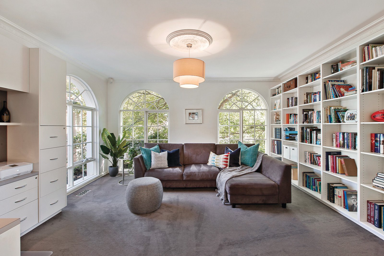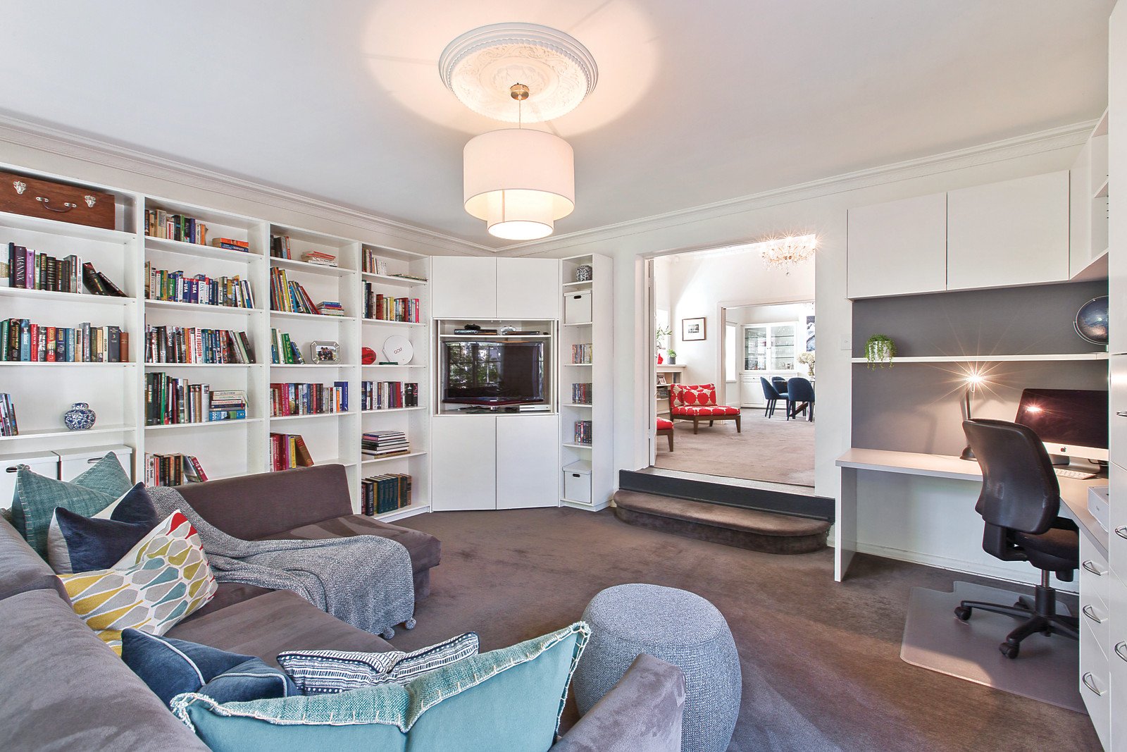 Evocative ornate ceilings, an abundance of natural light and plantation shutters define the inviting entrance hall, refined formal lounge with open fireplace, an elegant formal dining room and a fabulous library or media room with fitted study area. Wide dark stained Blackbutt floors flow through the superbly proportioned informal living and dining zone with stylish gourmet kitchen boasting stone benches and Smeg appliances. Two sets of bi-fold doors open out to the leafy private northeast garden with a gas/solar-heated self-cleaning pool and spa. Flexible accommodation comprises the main bedroom with walk in robe and en-suite and a 2nd double bedroom with built in robe downstairs while upstairs there are 3 large double bedrooms with built in robes, lovely outlooks and a modern bathroom.
