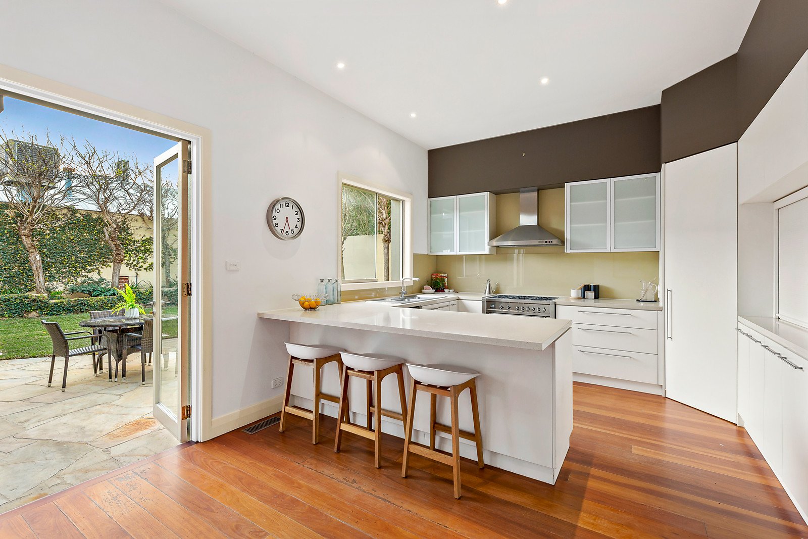 An appealing traditional façade complete with a picket fence, pretty front hedge-lined garden with water feature and a tessellated tile verandah precedes a stylish contemporary interior highlighted by a soft neutral toned decor and generous spaces. The home features a central hallway providing a vista to the rear garden and flanked by a sitting room with marble FP and bay window, four bedrooms or three plus a study, including a main with a dual access bathroom and a rear second bathroom and laundry. A spacious family living and dining area incorporating a sleek kitchen equipped with stone bench tops and Smeg and Bosch appliances opens through north-facing bi-fold doors to an alfresco terrace and private landscaped garden. Other features include alarm, ducted heating, R/C air conditioner (living room), 3,000ltr water tank, large garden shed/storage & remote garage (walk through) plus off-street parking.
