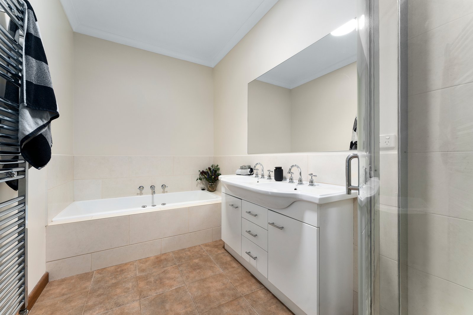 The main bedroom is generously proportioned with walk-in robes and an ensuite that has been appointed with a double shower, while another bedroom offers independent access - boasting a spa ensuite and built-in robes – ideal for accommodating teens, multigenerational family life, or various home office scenarios.