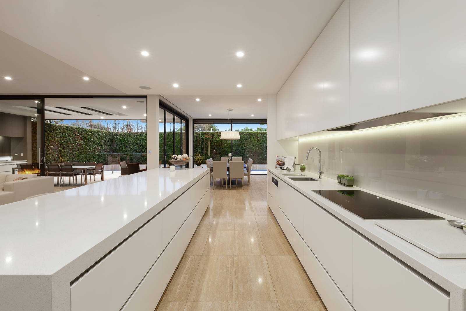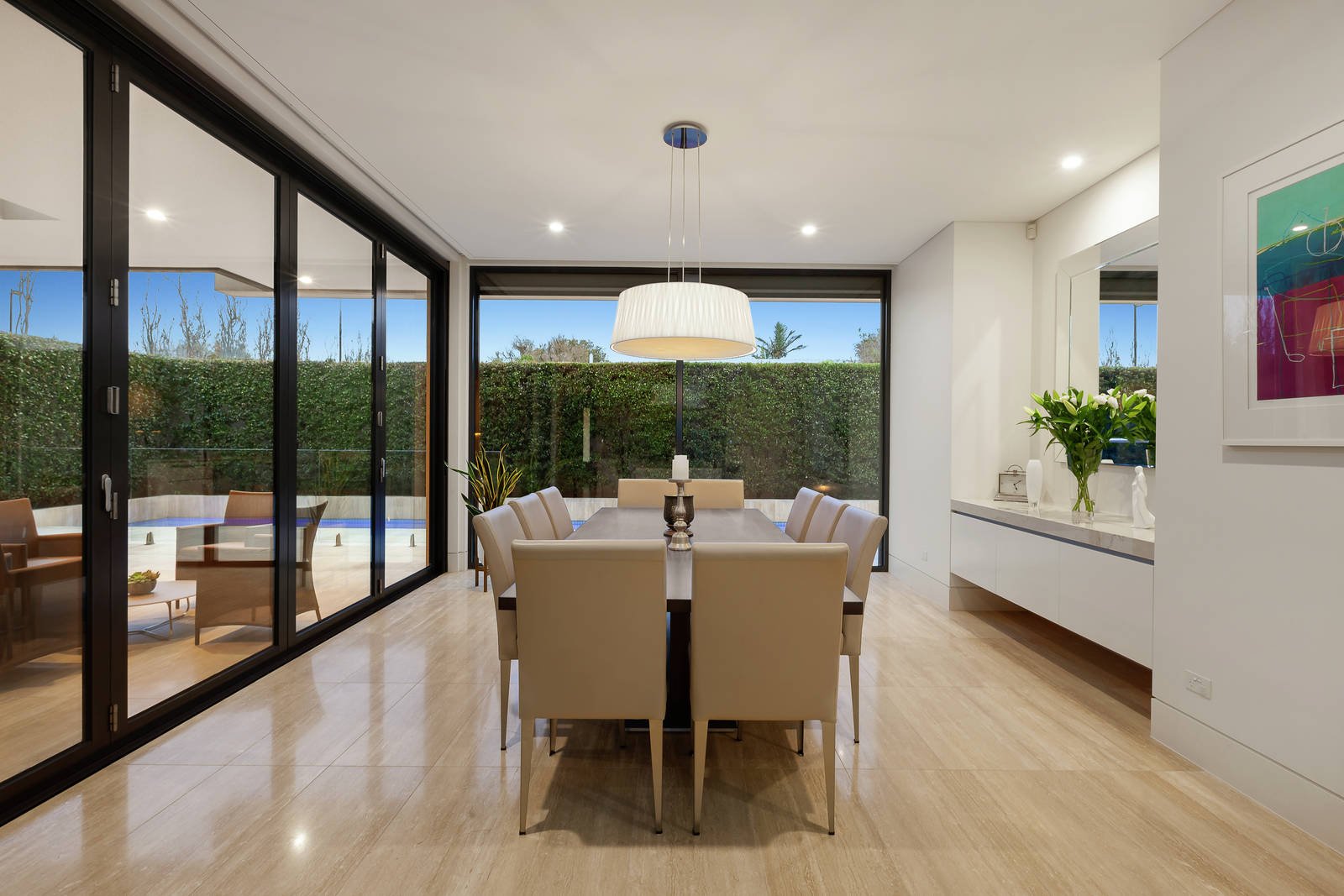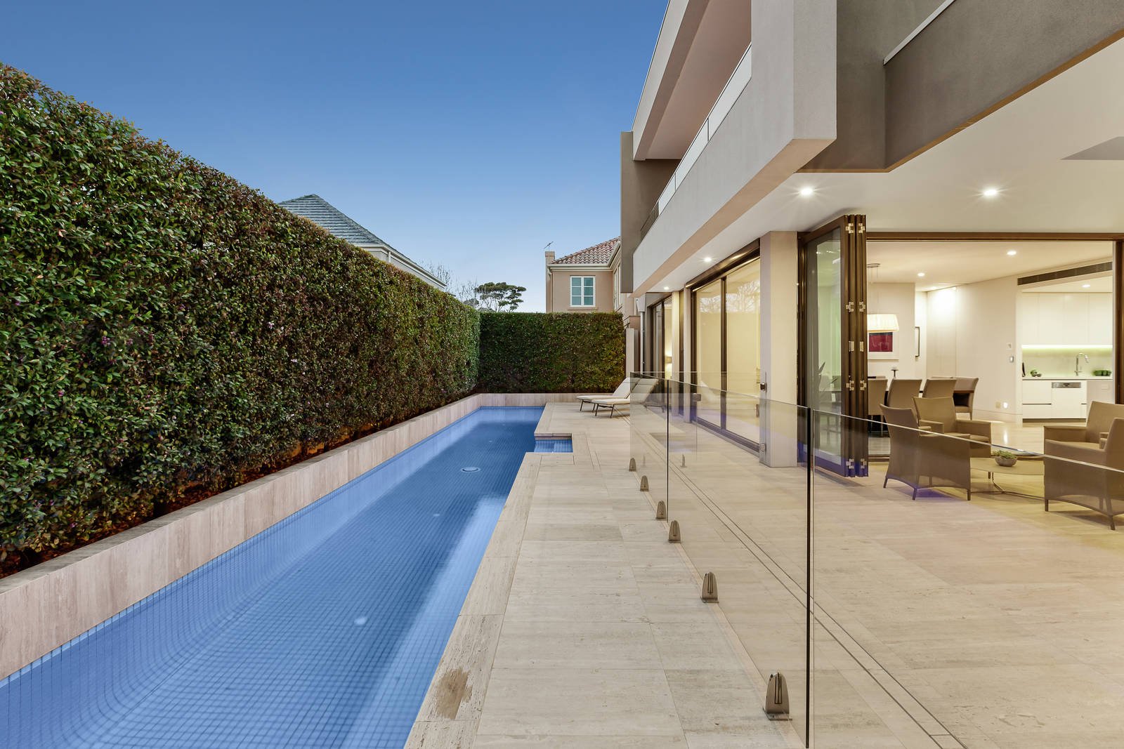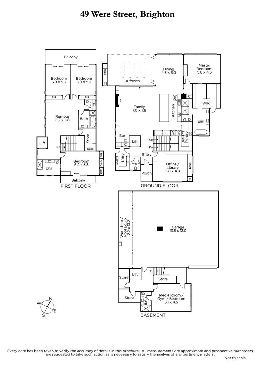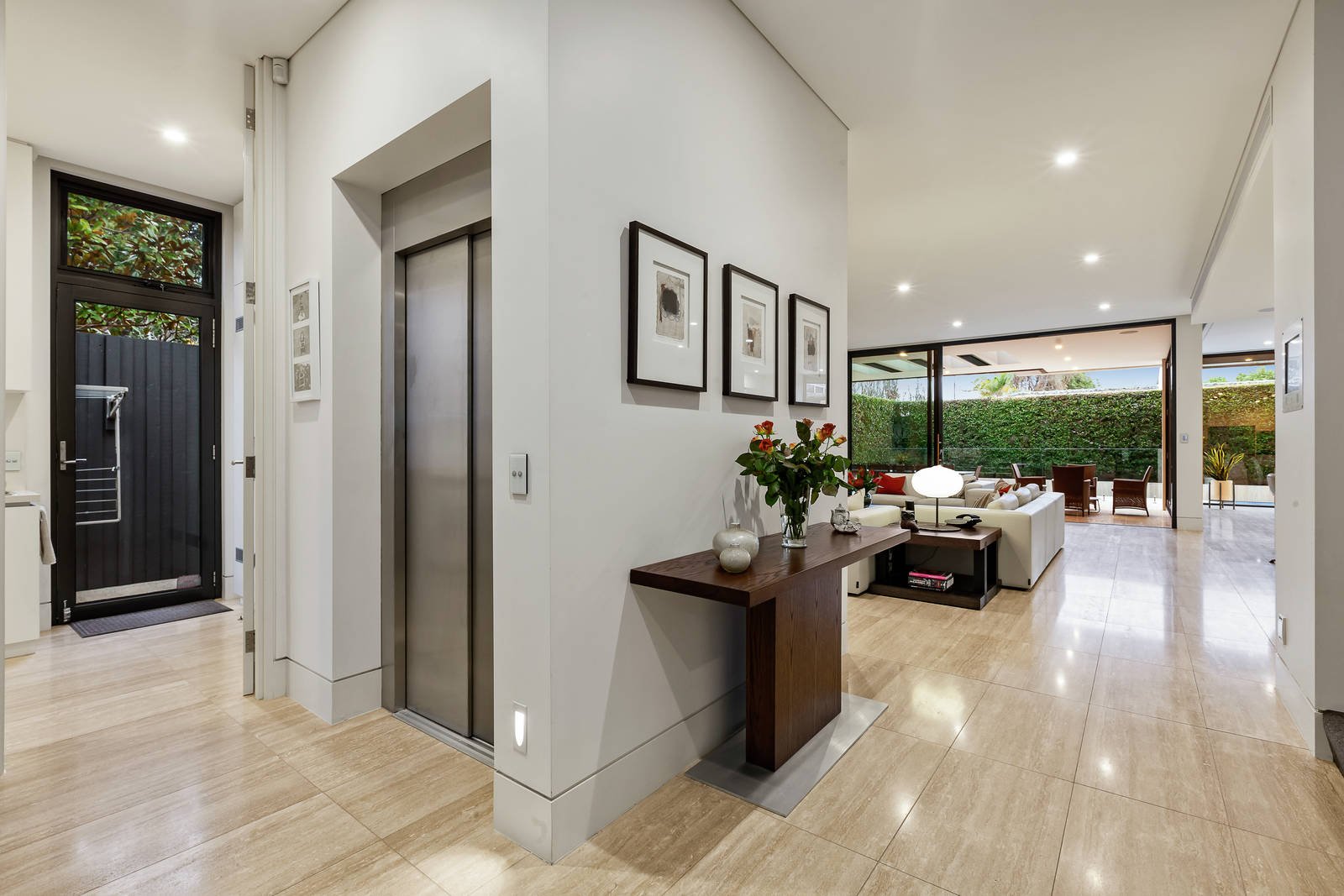 Built to exacting standards showcasing meticulous attention to detail, this stunning, five-bedroom, tri-level contemporary residence in one of Brighton's most prestigious streets exemplifies the sublime aesthetics of modernist architect, Ilario Cortese. Beautifully proportioned with 3-metre-high ceilings on the ground floor, the sophisticated interior fit-out incorporates a host of genius touches such as bespoke storage and space solutions concealed by sleek cabinetry and purpose-fitted alcoves. The 'luxury hotel' ambience is further enhanced by the commercial-grade elevator and resort-style outdoor-living zone with 17-metre solar/gas heated lap-pool and spa. The ground-floor open-plan living/dining zone features a cascade stone clad wall with pebble-flame gas heater plus a wet-bar. Earthy and warm, Travertine-tiled flooring sweeps through to the alfresco area with overhead heating and mains-gas barbeque, accessed by sliding glass and bi-fold doors. The Caesarstone kitchen has a 4.2 metre island bench, a wall of high-end Miele cooking appliances, a butler's pantry and 'tea station' with zip hot/cold tap. The home-office is fully custom-fit with shelving/bookcases and reception space while the adjacent powder room has floor-to-ceiling Travertine tiling. An opulent main bedroom suite includes twin fully-fitted WIRs and bathroom with free-standing tub, shower room and bidet, plus a private balcony. Upstairs is a guest suite, rumpus room, family bathroom and two further bedrooms with BIRs and access to a wide balcony with tree-top views to the city skyline. The basement level includes another bedroom with shower ensuite (currently used as a home-gym), the enormous under-house garage with plant/equipment room (including generator), and various utility/storage spaces. Technologically, the home is extremely well-equipped including a C-Bus system which controls lighting, heating, sound, and security (fully alarmed). There is also automated blinds and awnings, keyless entry, intercom phone system, automatic driveway gate and garage doors, sprinkler system, drying cupboard in the laundry, ducted vacuum, hydronic heating and split system air con throughout. Superbly located on the north side of Were Street close to everything the Brighton has to offer, the famous beachfront, boutique shops, cafes, schools, golf courses, parkland and a short distance to Brighton Beach Station.
