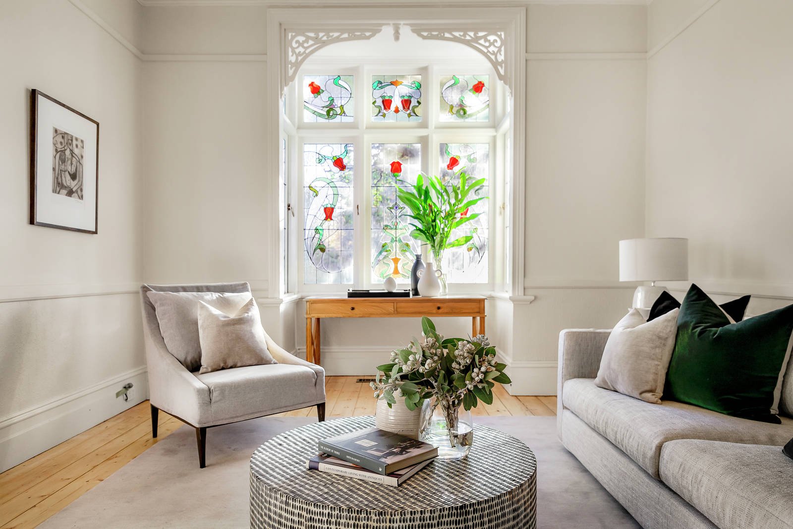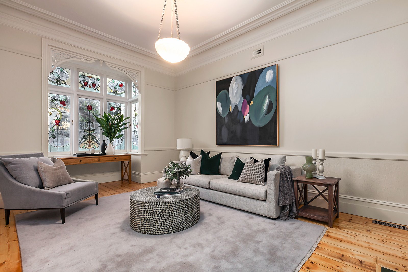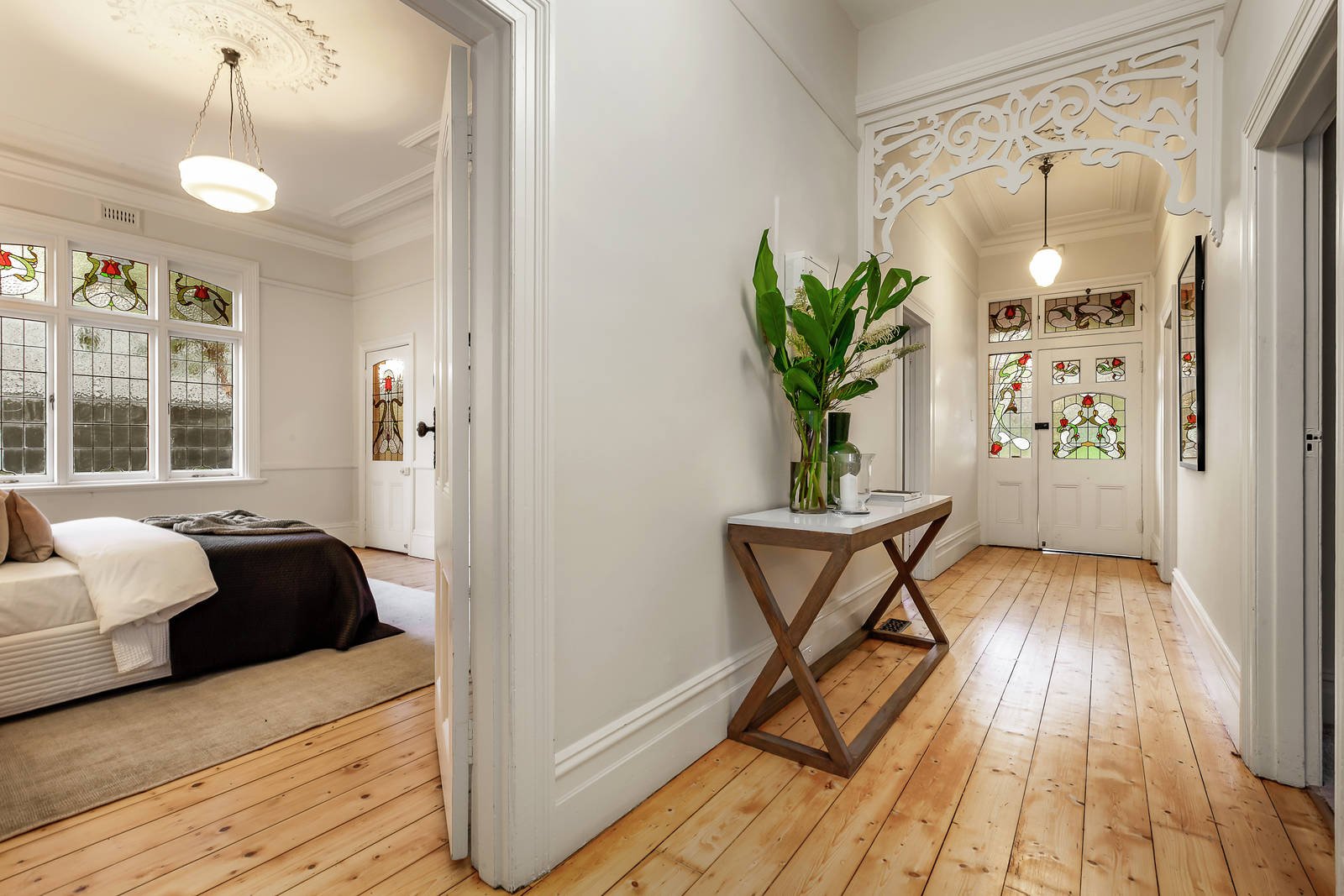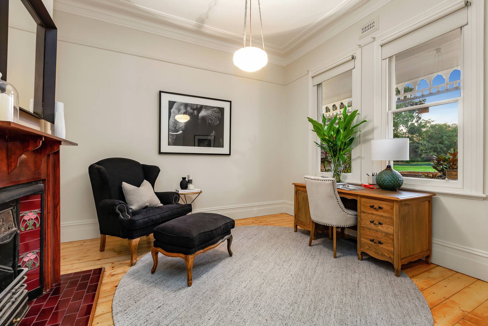 Decorative timber fretwork, open fireplaces, exquisite leadlight windows, ornate ceilings and Baltic pine floors highlight the period charm of the home. The wide central hall leads through to the elegant formal rooms, expansive familyroom, well-appointed granite kitchen and family dining area opening out to the private leafy northeast garden and pool with an abundance of accommodation that includes 5 bedrooms, 2 studies and 2 bathrooms.