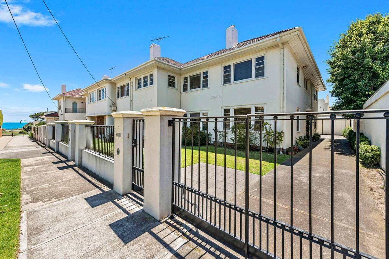 An elite beachfront address footsteps from the bay is home to an outstanding three-bedroom townhouse, where Art Deco elegance meets exclusive style. Located on the beach walking track at the end of a cul-de-sac in Kent Avenue, this is one of only five residences in the tightly held "Jumna" complex. Recent renovations have created a new era of style with feature staircase, separate lounge and dining rooms, a granite kitchen with new Smeg dishwasher and oven, two bathrooms, powder room and bay glimpses from the first floor level. The two-storey interior impresses with polished timber floors and 1930s craftsmanship, and the sense of space and privacy is outstanding. Love the lounge with double-door entry and feature brickwork surrounding the gas log fireplace with mantle. This is tailor-made for premium living, featuring a renovated bathroom with a large freestanding bath with view of the Bay and a main-bedroom ensuite with twin basin vanity. There's automated gates and your own garage on separate title with remote-control door, solid-brick construction, and a well-maintained garden setting. Start your day with bay views the moment you walk out your front gate, love having North Road's foreshore cafe and playground 300 metres away, and keep fit riding the Bay Trail that winds along the foreshore. Outstanding opportunity to own a rare beachside maisonette from a golden era.