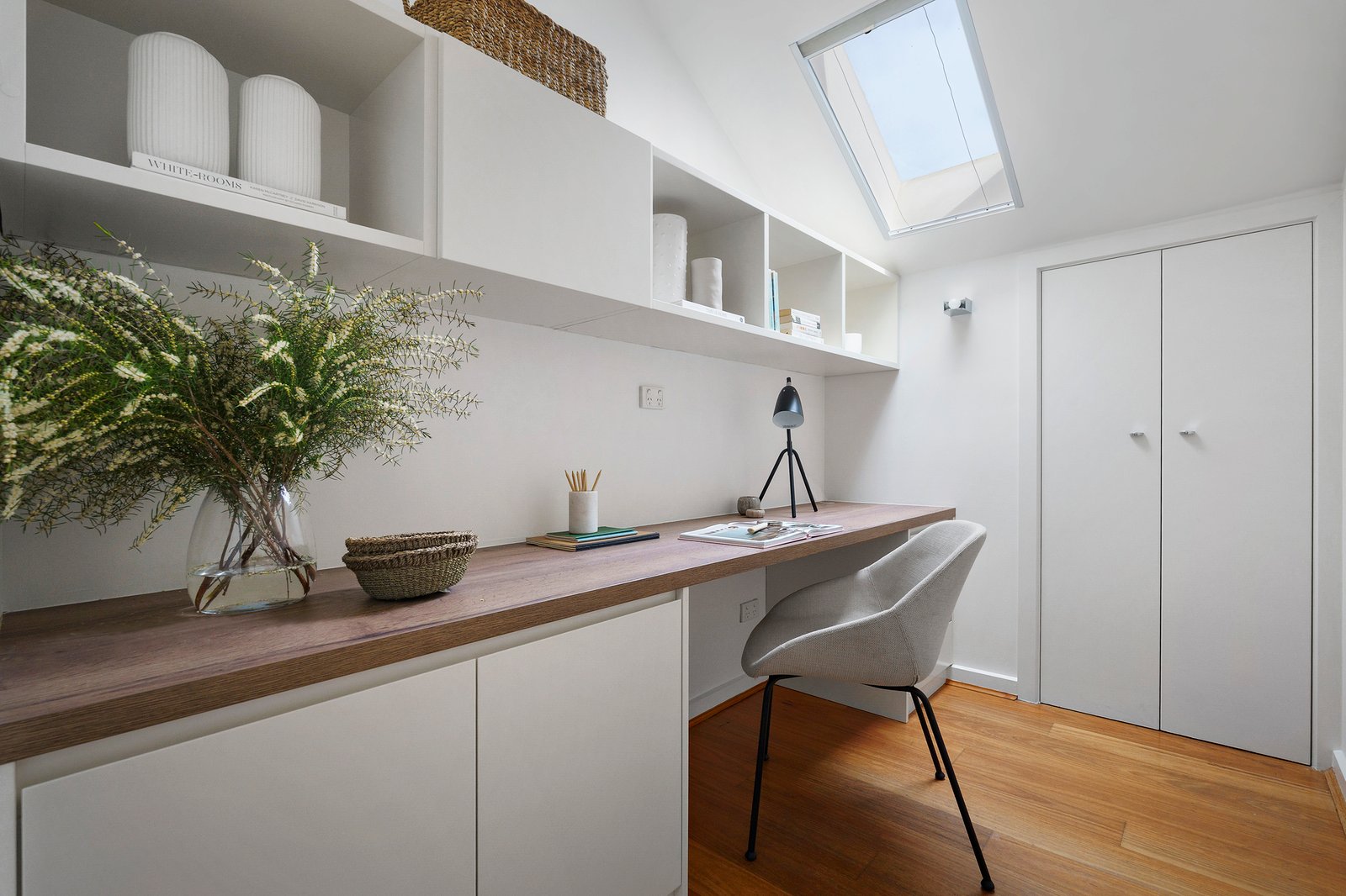 Superb architectural ceilings and spectacular light continue through the main bedroom with a sky-lit ensuite and extensive walk-in robe. A second large bedroom matches it with walk-in robes, a third with built-in robes, a fitted home office with skylight and a well-appointed central bathroom with a bath. In a premium lifestyle position renowned for its peaceful tree-lined streets, this impressive apartment also includes intercom access, ducted heating/cooling, split system heating/cooling, laundry, abundant storage and basement parking for two, as well as a walk-in storage cage.