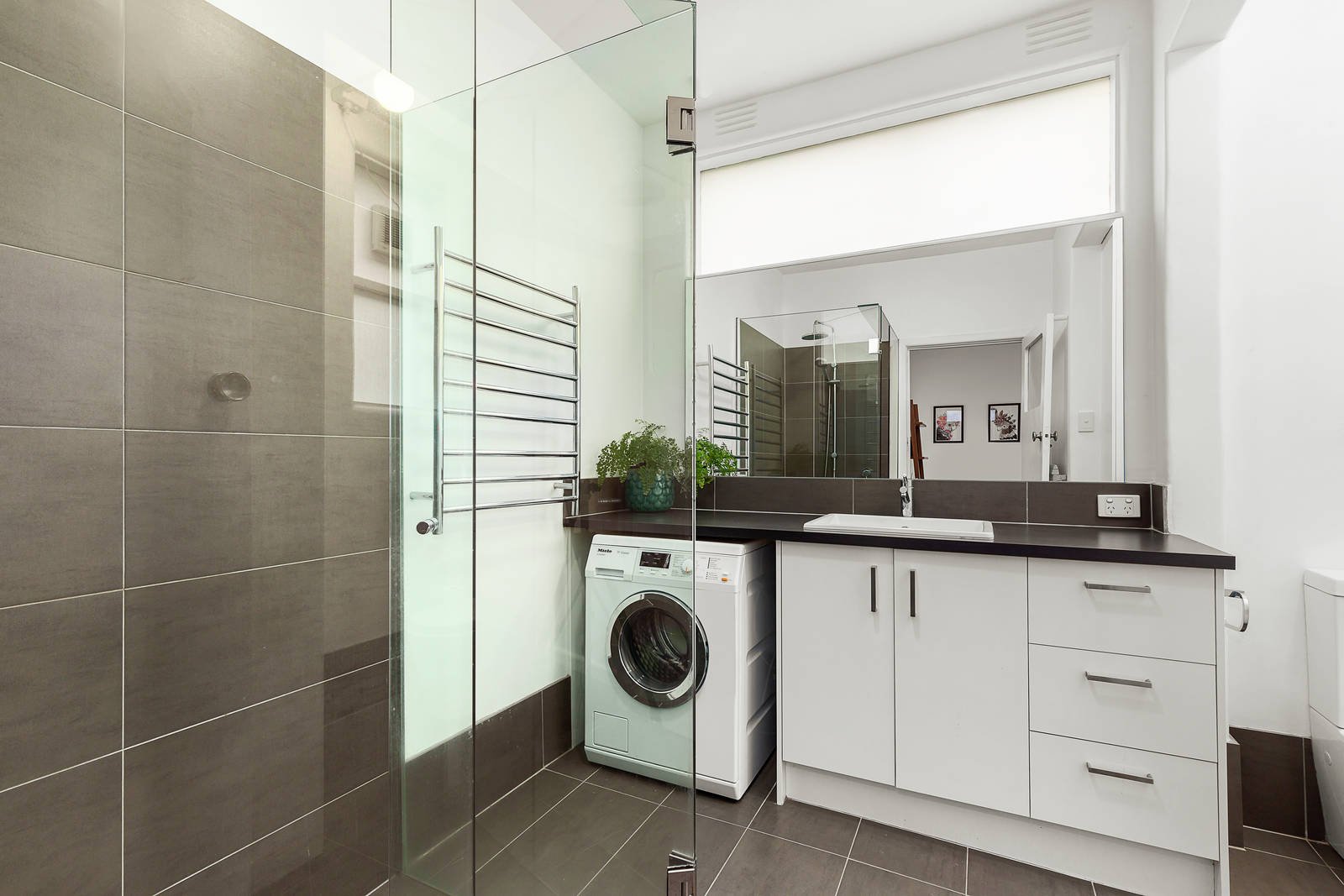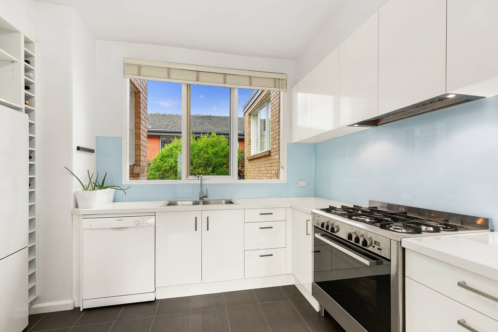 Huge full-width windows introduce not only floods of natural light, but also a sense of older-style chic, to a lounge/ dining room that opens to the home's balcony and also flows to a semi-attached gourmet kitchen in which CaesarStone benches compliment a stainless steel 900mm Emilia oven/cooktop, Bosch dishwasher and volumes of premium soft close cabinetry. Set on the first floor, this home also features high ceilings, huge customised built-in robes in each bedroom, a vogue bathroom with a frameless screened shower, plus wall panel heating and split system cooling.