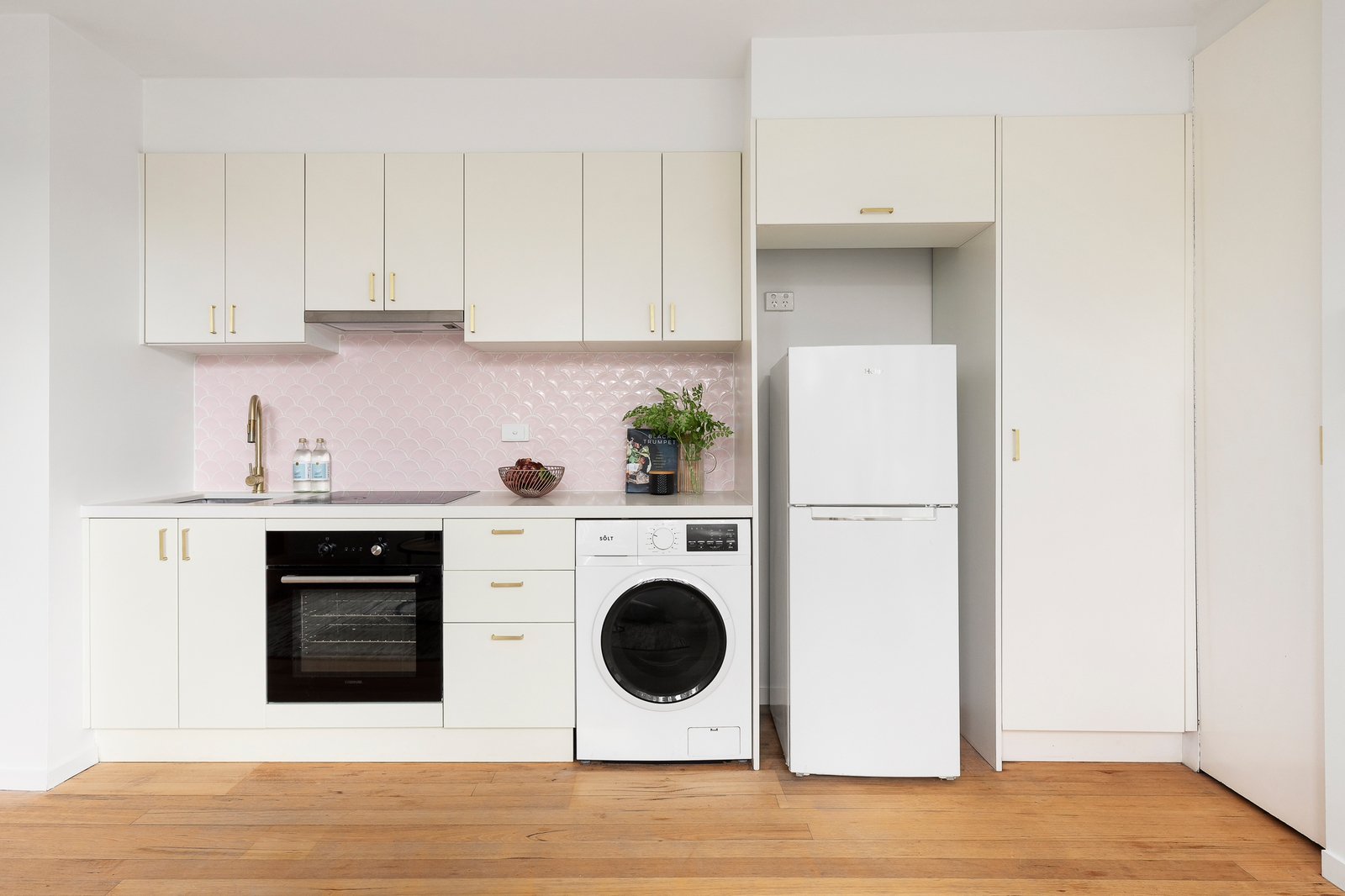 Freshly painted with polished hardwood flooring, the apartment opens to reveal dining / living in which its every corner fills with natural light and is all underpinned by a stone-topped kitchen with electric cooking and plenty of soft close cabinetry. Accessed securely via intercom entry and with the added prize of an oversized undercover parking space with potential to add a storage unit, the apartment also features a bright bathroom, built-in robes in the bedroom and split system heating / air conditioning.