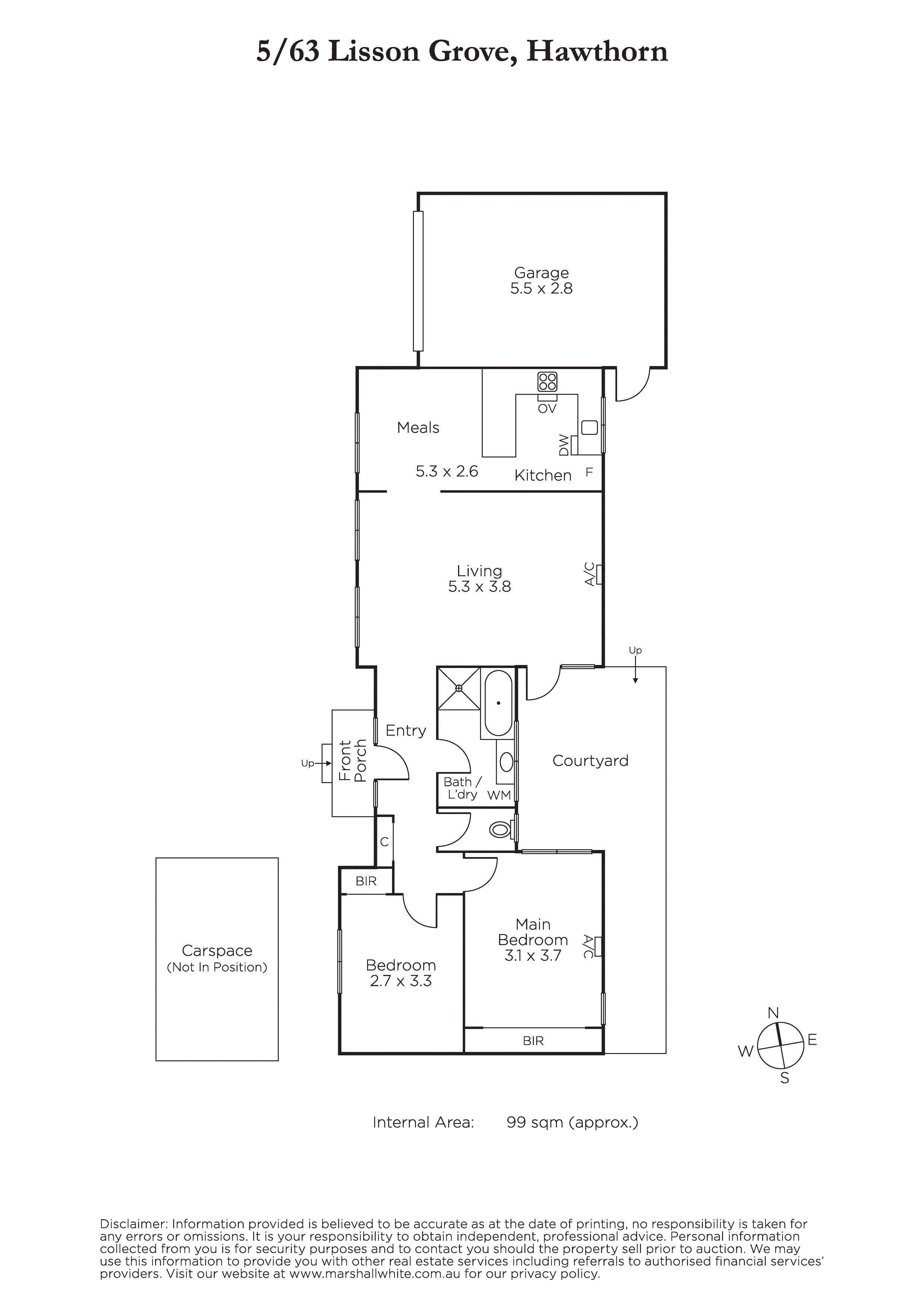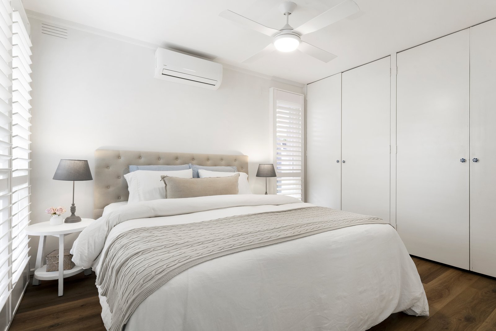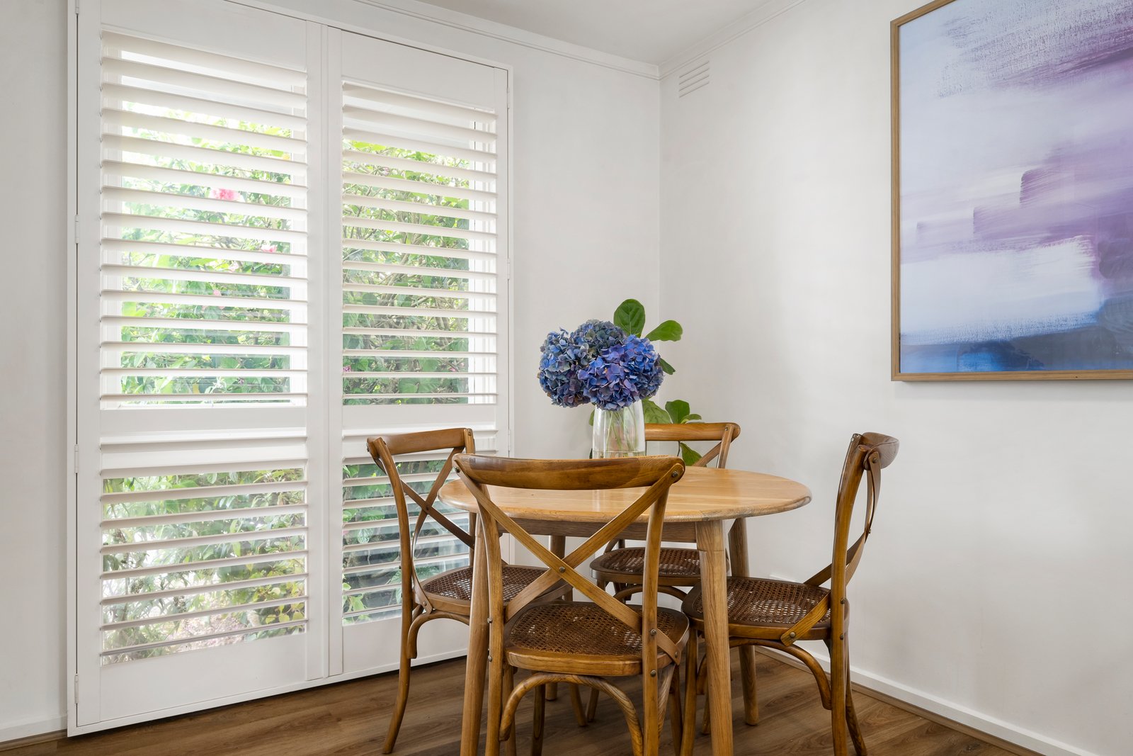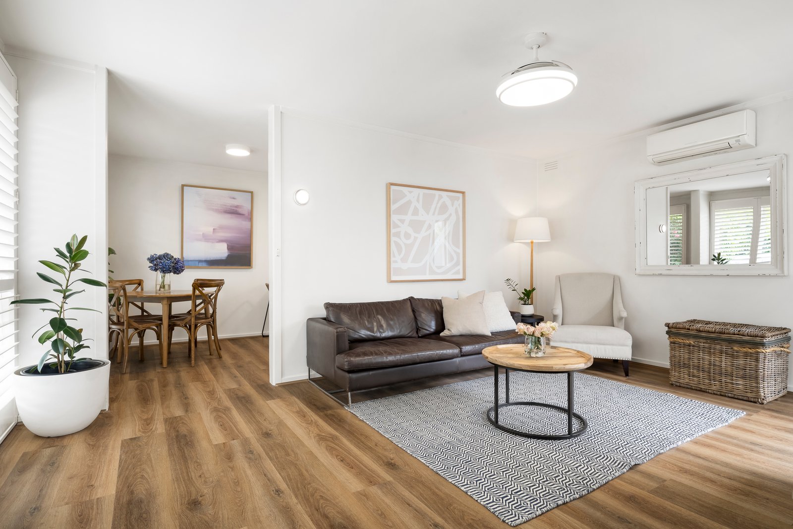 The immaculately maintained and presented single level interior features a spacious, light-filled ambience, crisp white decor and hybrid oak floors. The entrance foyer ideally separates the two generous bedrooms (each with built-in robes) from the stylish living areas and contemporary kitchen equipped with quality stainless steel appliances. Flowing seamlessly from the indoor living areas, the north-east sun-filled courtyard is perfect for alfresco entertaining and relaxation. Other features include reverse-cycle air conditioners (in the living room and main bedroom), high quality plantation shutters throughout the home which provide both a “Hamptons” feel and privacy, as well as a lock-up garage and additional car space on title at the doorstep.