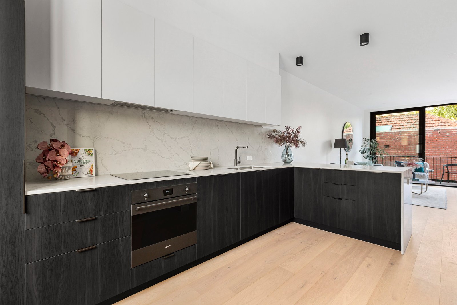 Inside, northern light-filled interiors unfold across multiple levels, with open-plan living and dining connecting seamlessly to a private terrace -- creating the perfect setting for both entertaining and everyday living. Natural timber flooring, stone finishes and clean architectural lines create a warm yet refined aesthetic.