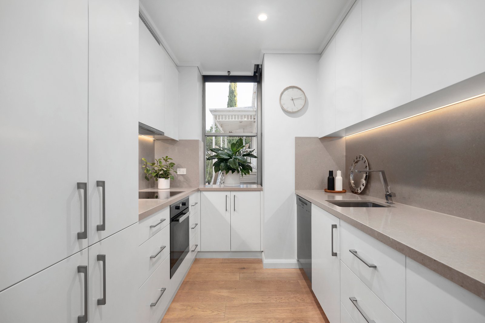 A flawlessly appointed contemporary kitchen highlights marble benchtops and a suite of Miele appliances – including an induction cooktop – while open-plan dining and living is utterly superb with Oak flooring and seamless connection to a broad terrace that is both remarkably private and bathed in morning sunshine. The extensive use of marble continues into the main bedroom’s ensuite as well as the central bathroom and laundry, plus there is decadent sub-floor heating in the main bathroom, central heating and air conditioning throughout, as well as secure intercom entry, non-stacker undercover parking, permit parking and a storage unit.