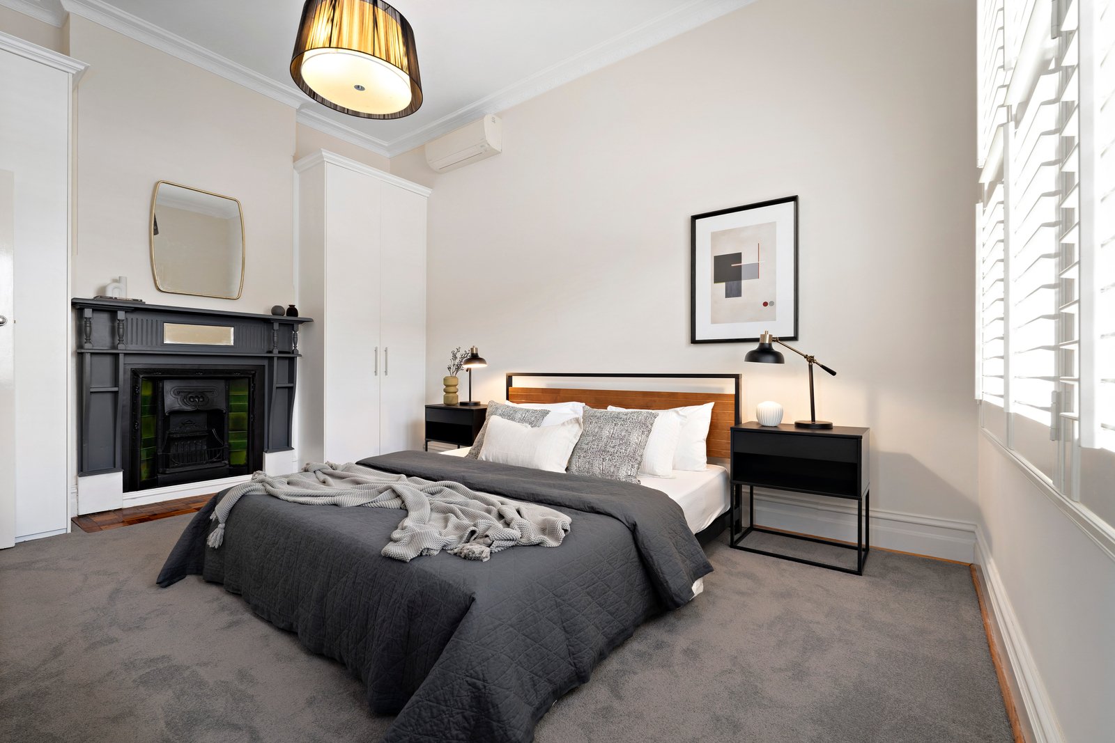Four generous bedrooms all come with built in robes and share a gorgeous central bathroom with claw foot bath, separate walk in shower and stone topped vanity. High ceilings, cornicing and polished timber floors are a few of the period hallmarks, while features include a separate powder room/laundry, plantation shutters, split system air conditioning and ducted heating.