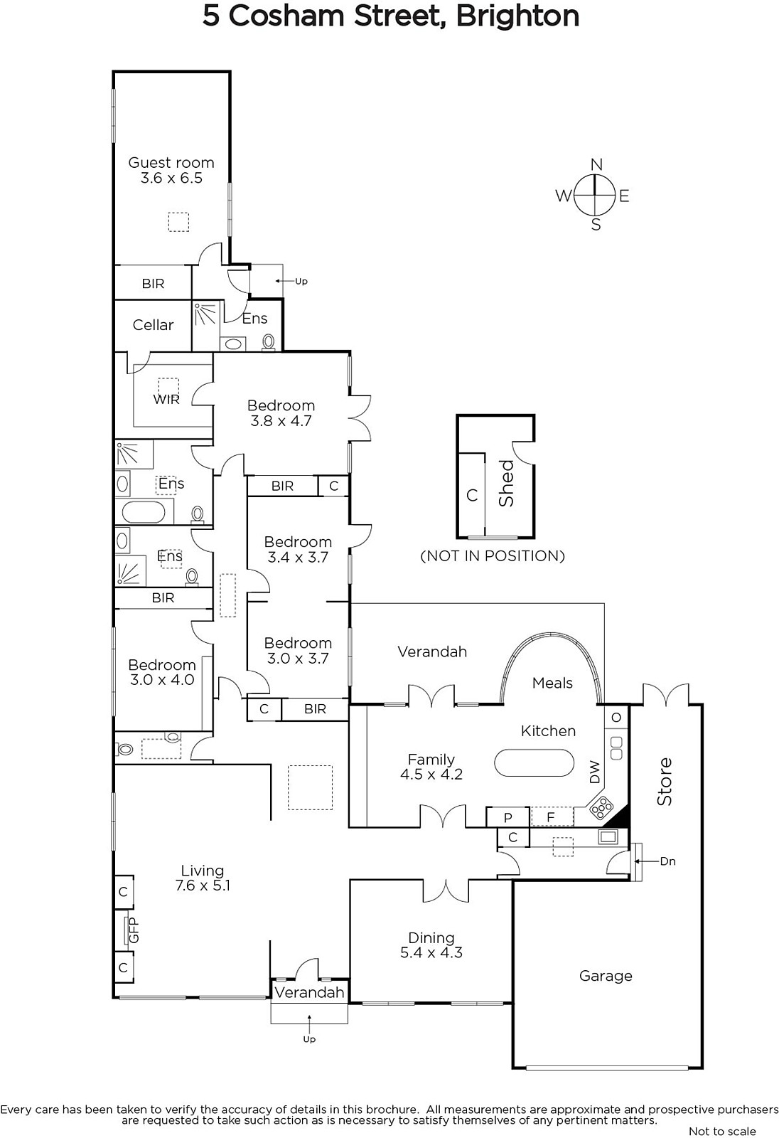 This impressive four-bedroom single-level Brighton residence on a quiet street provides luxury and comfortable family living through lavish proportions and a classic style. Behind the privacy of rendered fencing and an iron front gate lies the well-maintained garden surrounds of this Jon Friedrich designed home that has been built to the highest quality. A grand entrance introduces the fine details of this abode, such as timber flooring and double-glazed windows, adding to the ambience and sense of pleasance in a light-filled open-plan formal sitting area with gas fireplace. Formal dining room, relaxed living/dining with prism-shaped floor-to-ceiling windows and a well-appointed kitchen with rare built-in refrigerator and freezer, granite benches and Bosch appliances complete the zoned living spaces. Three spacious bedrooms comprise built-in robes, while the main bedroom features walk-in robe, ensuite and cellar/storage space. With glorious northern orientation, the outdoor entertainment area encompasses a large kidney-shaped pool, leafy garden and an external studio or guesthouse with ensuite. Additional features include central bathroom, powder room, ample laundry with storage, outdoor work shed and secure garage for two cars. Located conveniently near Bay Street and New Street shops and cafes, the beach, the Bay Trail, North Brighton train station, prestigious schools such as Star of the Sea and Brighton Grammar School and within the Brighton Primary School zone.