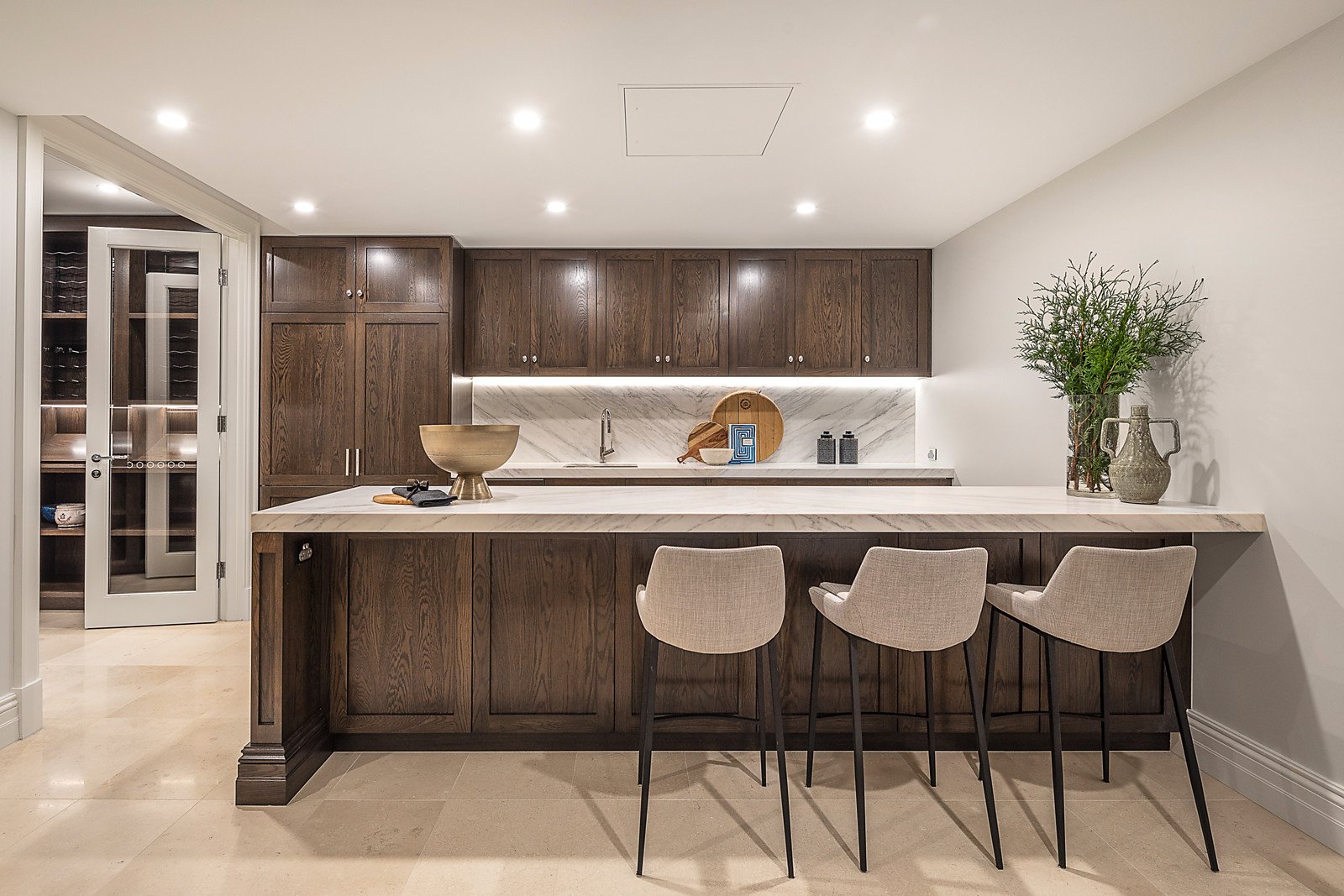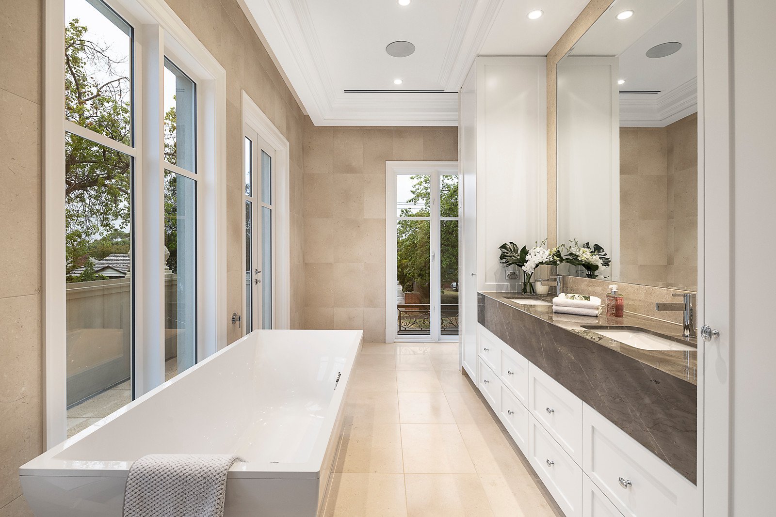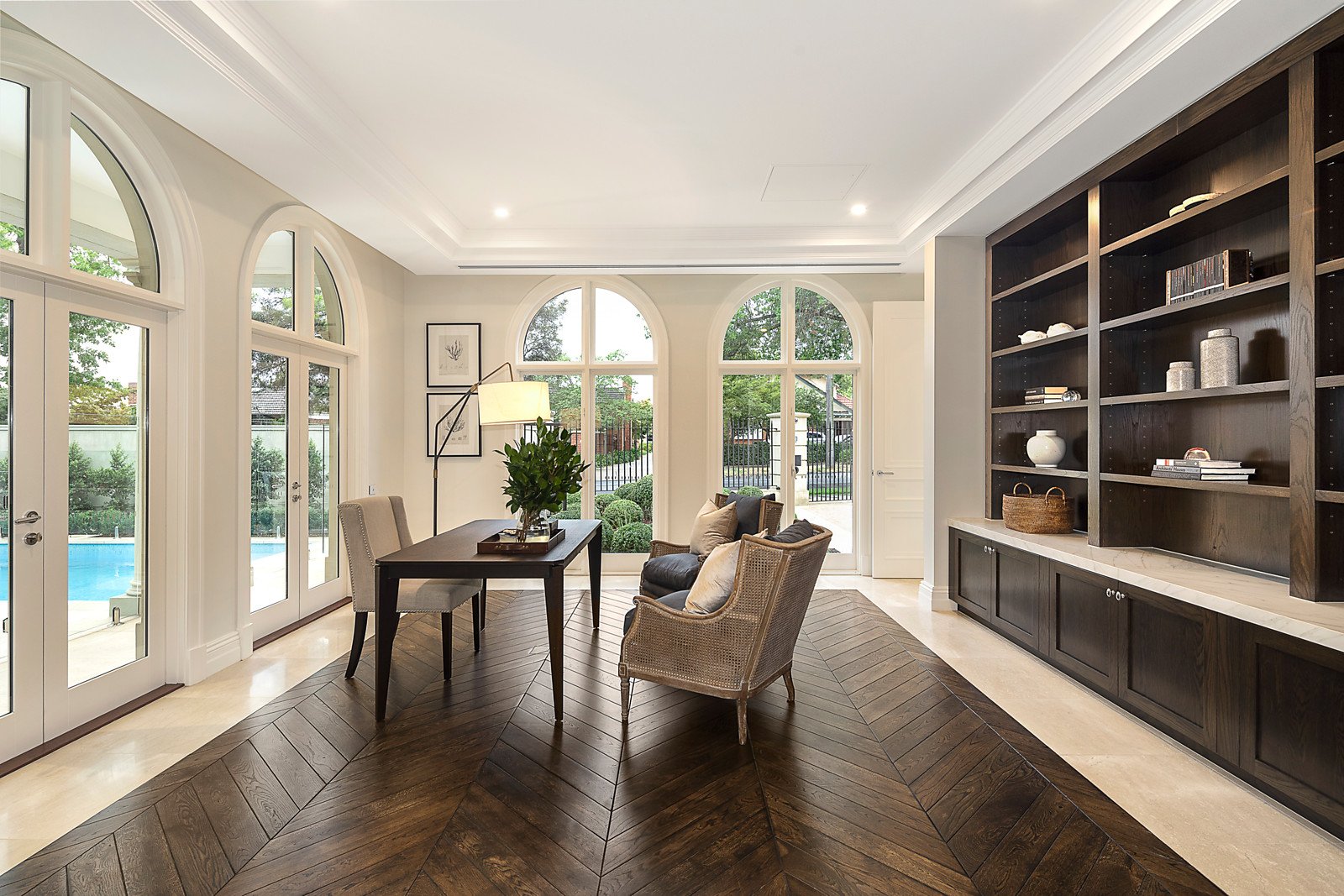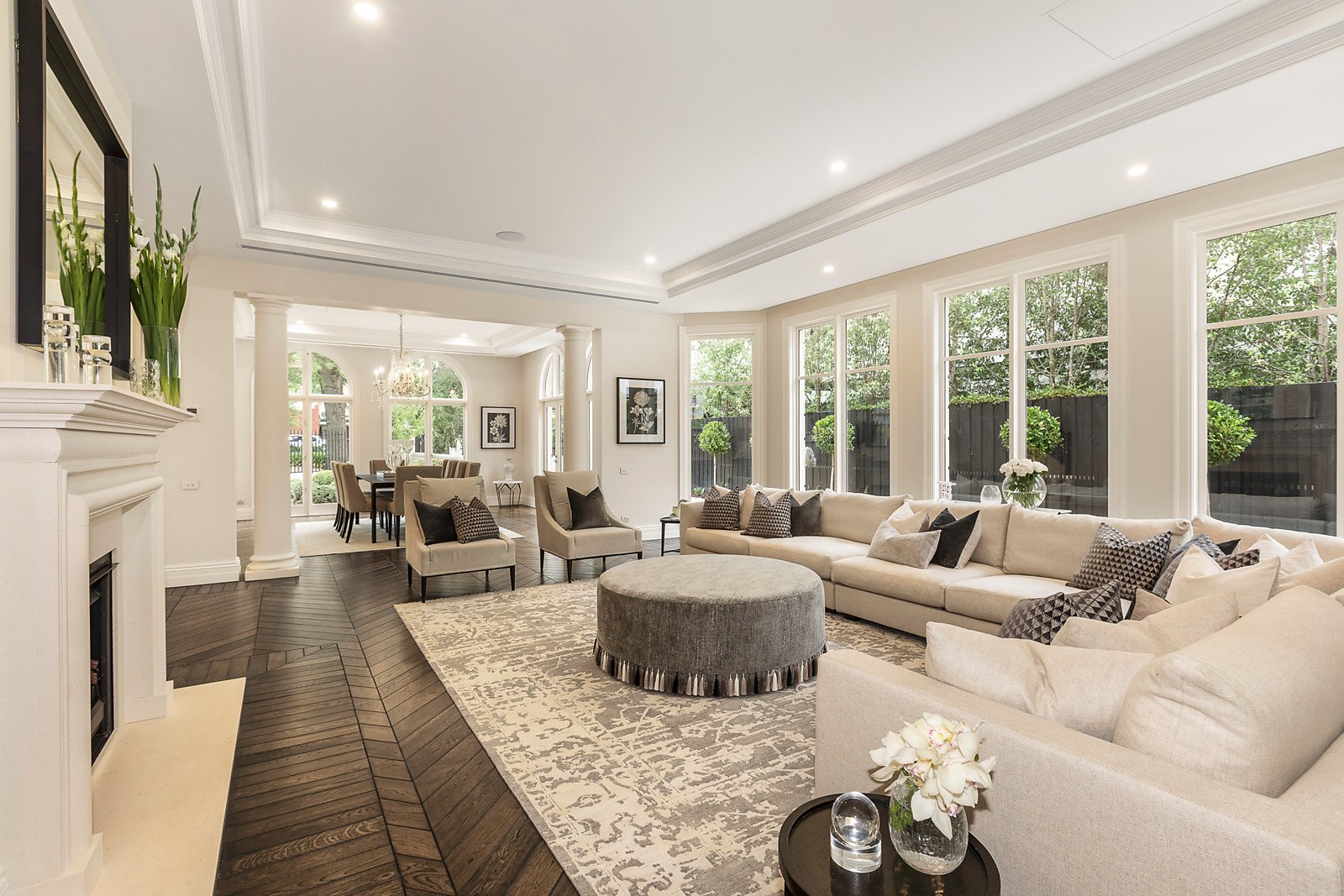 The palatial reception hall boasting a soaring double height coffered ceiling, limestone floors and an Italian chandelier creates an unforgettable first impression. Majestically proportioned and ideal for entertaining on a lavish scale, the sumptuous formal sitting and dining rooms with gas fireplace flow out to a landscaped limestone terrace. On the north-side of the hall, a refined fitted library, expansive living room and glorious dining area open to the stunning north-facing landscaped garden with a premium solar-heated pool and wonderful al fresco terrace complete with BBQ kitchen, gas fireplace, outdoor heaters and powder-room. A triumph of form and function, the sublime kitchen is appointed with Calacatta marble benches, top of the range Miele appliances, integrated fridge/freezers and a full butler's pantry. A seductively curved staircase featuring customized wrought ironwork and a lift ascend to the accommodation level comprising the opulent main bedroom with luxurious en-suite, dual walk in robes and north-facing balcony, three additional double bedrooms with built in robes and stylish en-suites, 5th bedroom with built in robe and a generous lounge room or retreat. An entertainment zone on the basement level includes a huge fully fitted home cinema, fabulous recreation/billiards room with wet-bar and evocative wine room, a gym, bathroom and 5-car garage.