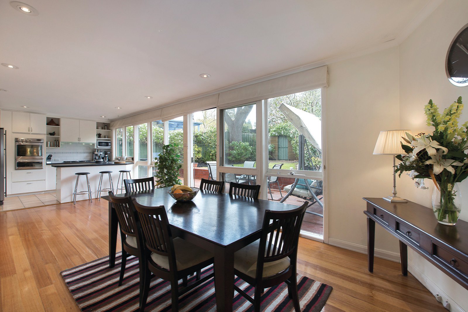 Enjoying an elevated position in a quiet, family oriented location, this delightful Californian Bungalow with well-presented interior and flexible layout boasts 2 bedrooms with BIRs, home office/3rd bedroom, formal sitting room with adjacent living room and kitchen with large dining area that opens onto the entertainment deck overlooking the leafy and private surrounds of the rear garden. The home also comprises a refurbished central bathroom, powder room, separate laundry, double carport and is conveniently located within close proximity to Cotham Road trams leading to popular Kew Junction and Whitehorse Road shops and cafes (Snow Pony cafe, Palace Cinema), Victoria Park and many of Melbourne's finest schools. Other features include ducted heating/cooling and vacuum, ceiling fans, OFP, timber floors and ample storage.