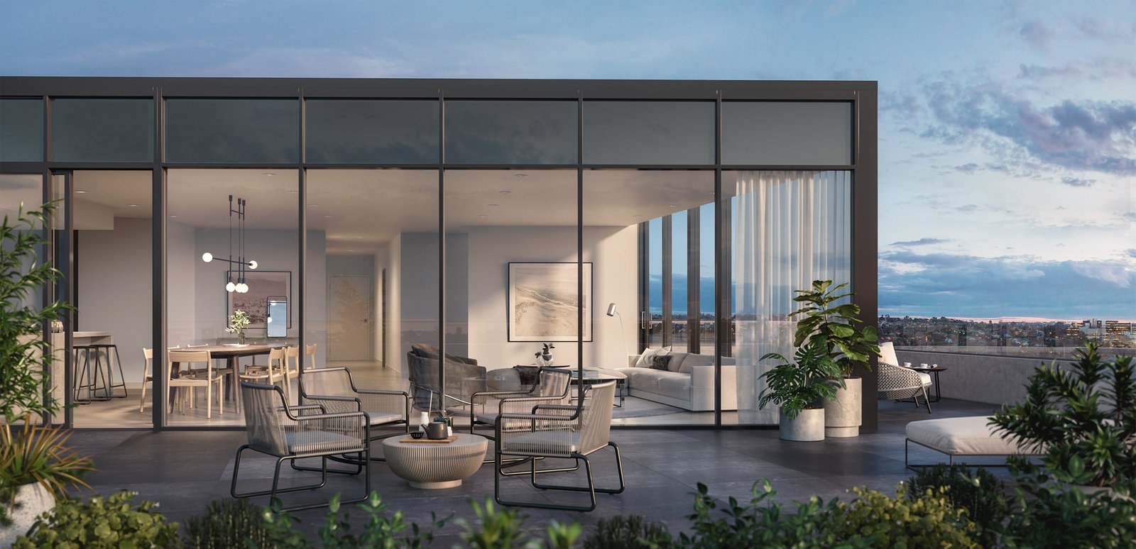 Enjoy light-filled open plan living. Step out to private terraces, perfect for a morning coffee or al fresco meals in the summer. Full height, well-considered robes and built in flexible storage options convey a generosity of space. Every room showcases meticulous attention to detail such as hidden architectural lighting to instill drama and interest. Feature chrome plated wall and pendant lighting creates a sense of fun and warmth in kitchen and dining areas. Kitchens feature Miele ovens and gas cooktops, integrated fridge freezers and honed stone benchtops in a selection of hues.