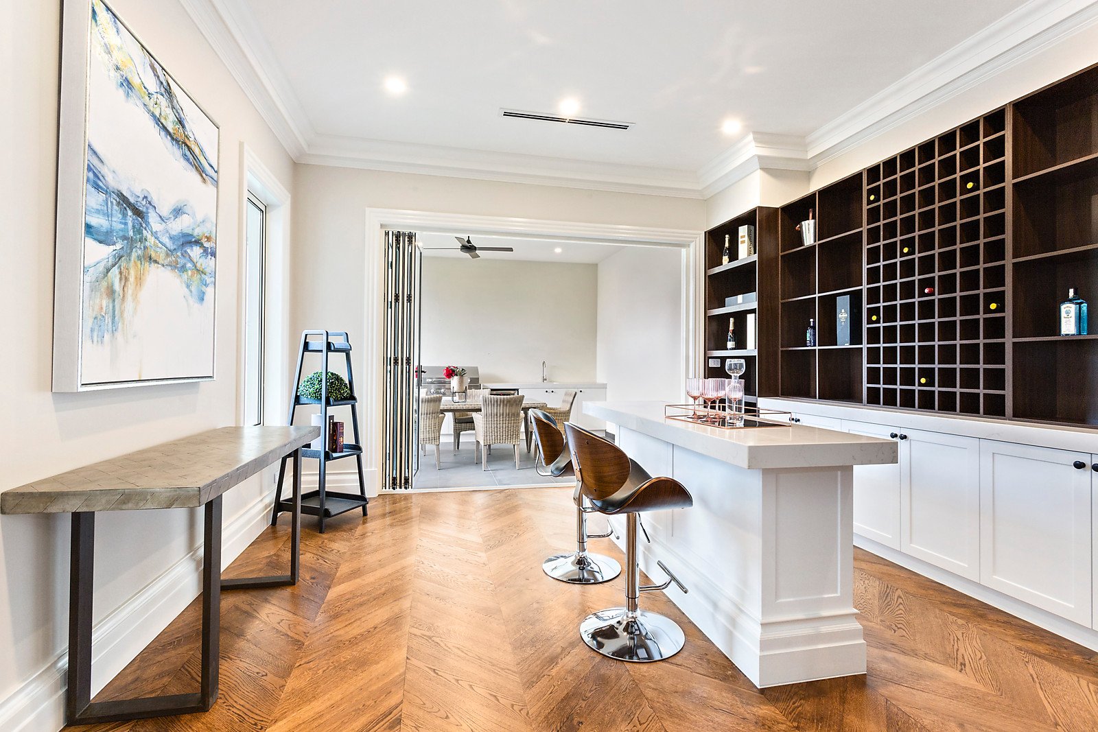 Basking in the northern orientation, bi-folds reveal a putting green while French doors lead to a seductive entertainer's bar joined by a covered alfresco with outdoor kitchen.