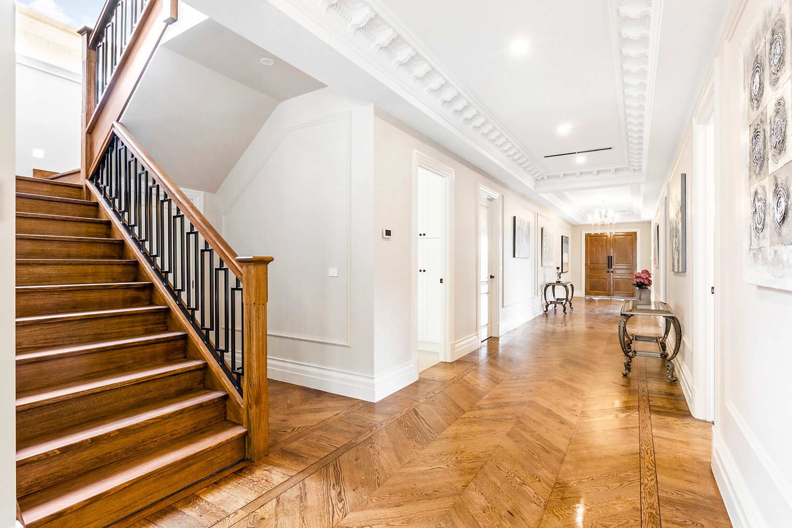 Luxuriate in your own exclusive family oasis, showcasing a grand, just-completed five bedroom residence in the Balwyn High School zone. As highly-decorative ceilings soar, European Oak floors sweep along the broad and long hall past the fire-side lounge and fully-fitted theatre to the vast dining, family room and Miele epicurean kitchen with second kitchen.