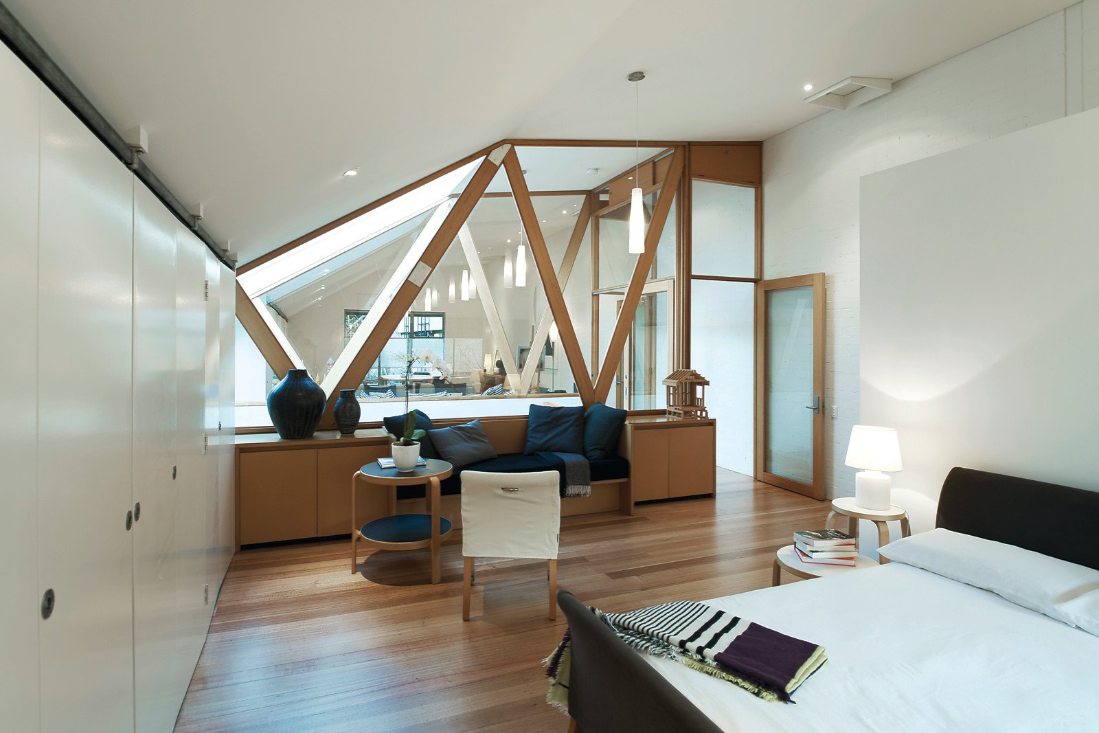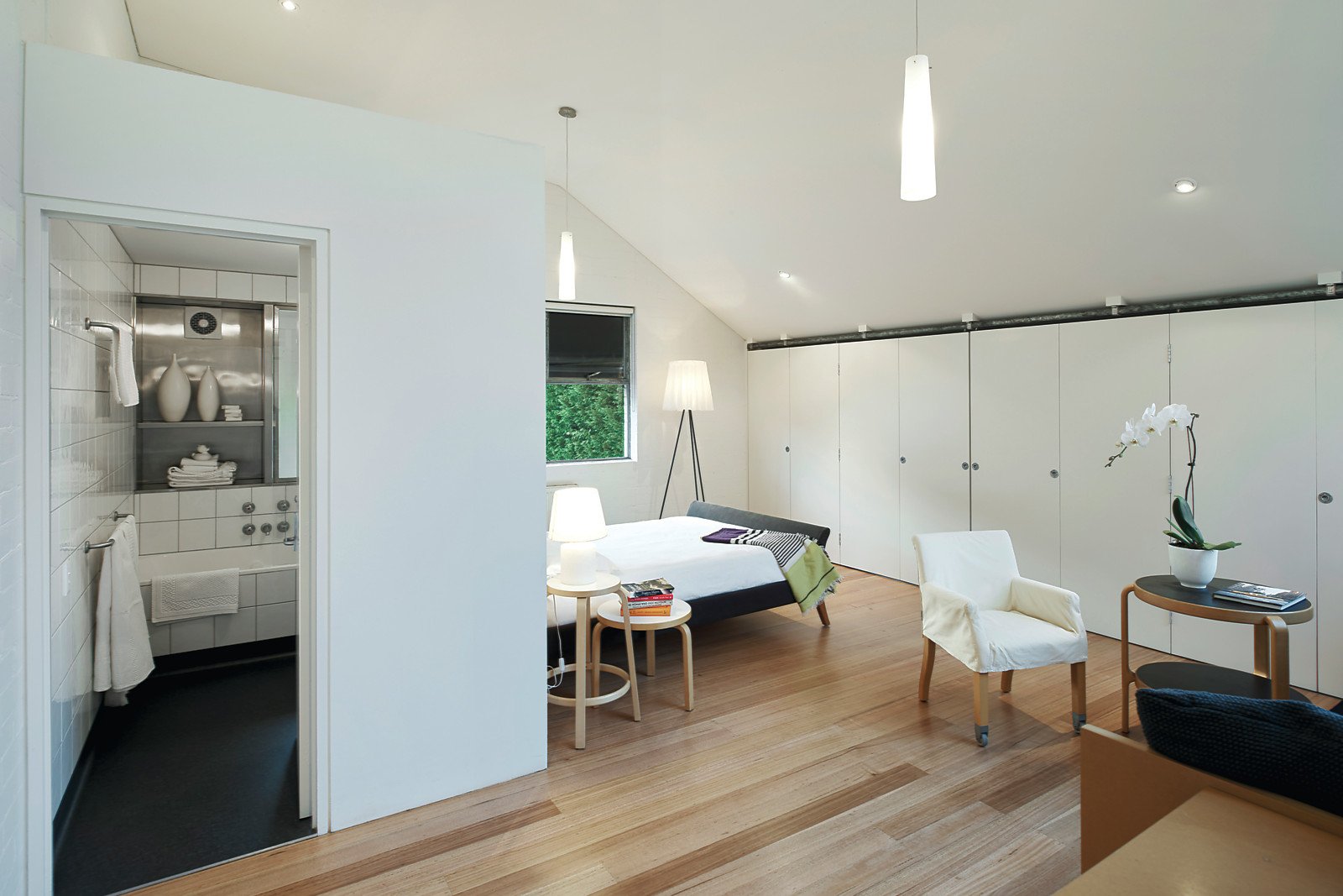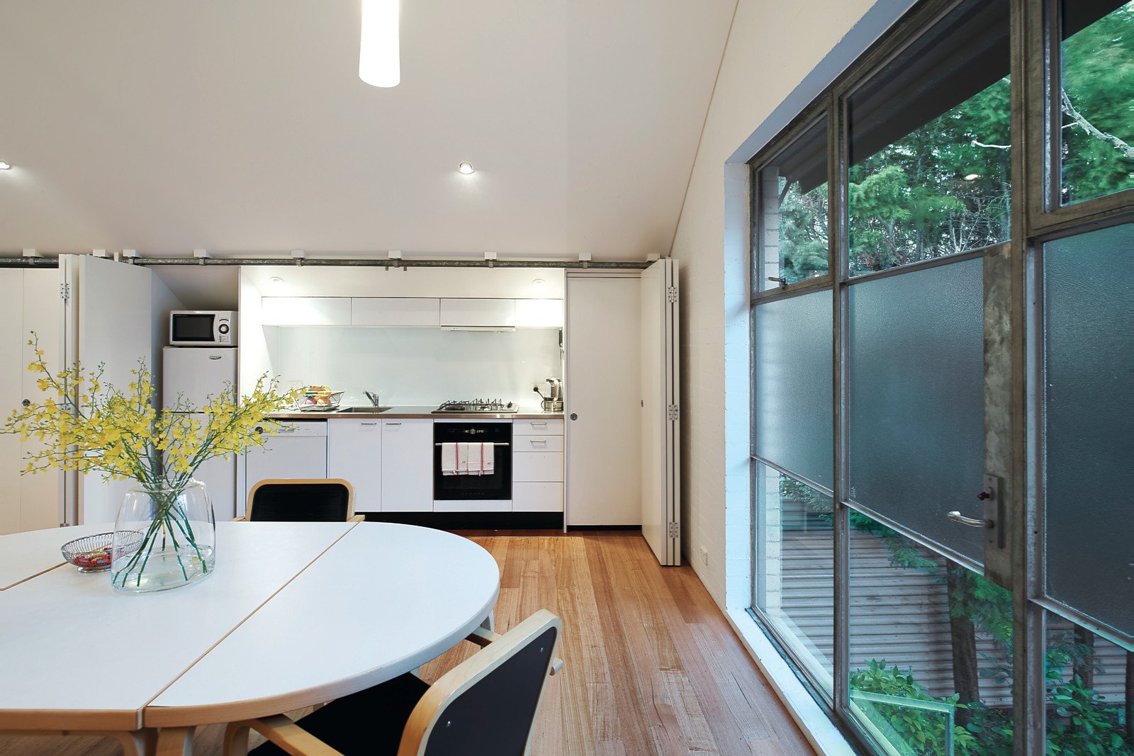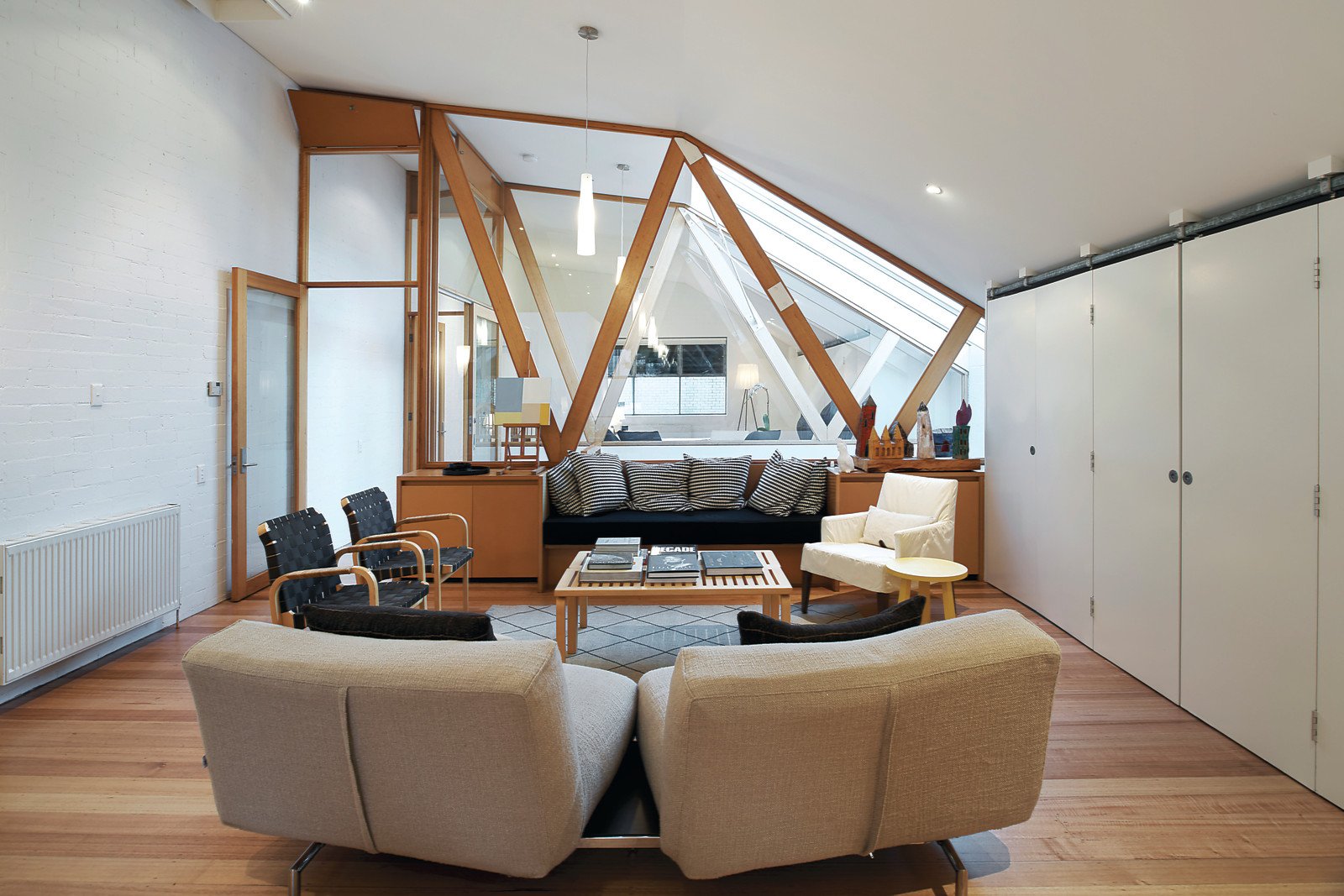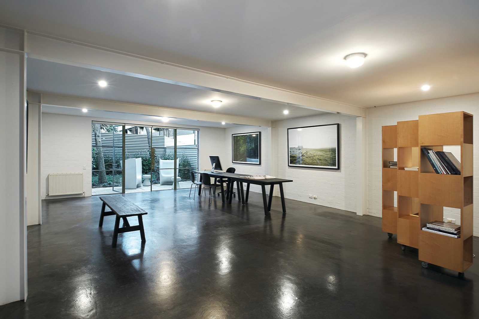 Filled with industrial character this freestanding two-storey warehouse-style dwelling with variable internal and external spaces suits an array of uses with scope to reconfigure. Preserved as a minimalist slate for the next occupant, on the ground floor this solid home, designed by architect George Hatzisavas, consists of one huge studio room, large enough to convert into 2 or 3 rooms if required and a double garage, presenting further opportunity to expand accommodation depending on requirements. A skylight with a retractable mesh shade cover disperses northern light across generous first-floor spaces featuring white painted brick interiors that complement Victorian Ash timber accents. Vaulted ceilings highlight both the massive bedroom featuring full-width BIRs and bathroom and immense living space with concealed kitchen and copious storage. Inc. black stained concrete floors, studio kitchenette, powder room, Euro laundry, rear garden with paved patio and plantings, industrial ventilation system, hydronic heating, intelligent built-in storage and two further car parks on title. LIVE, WORK or BOTH.
