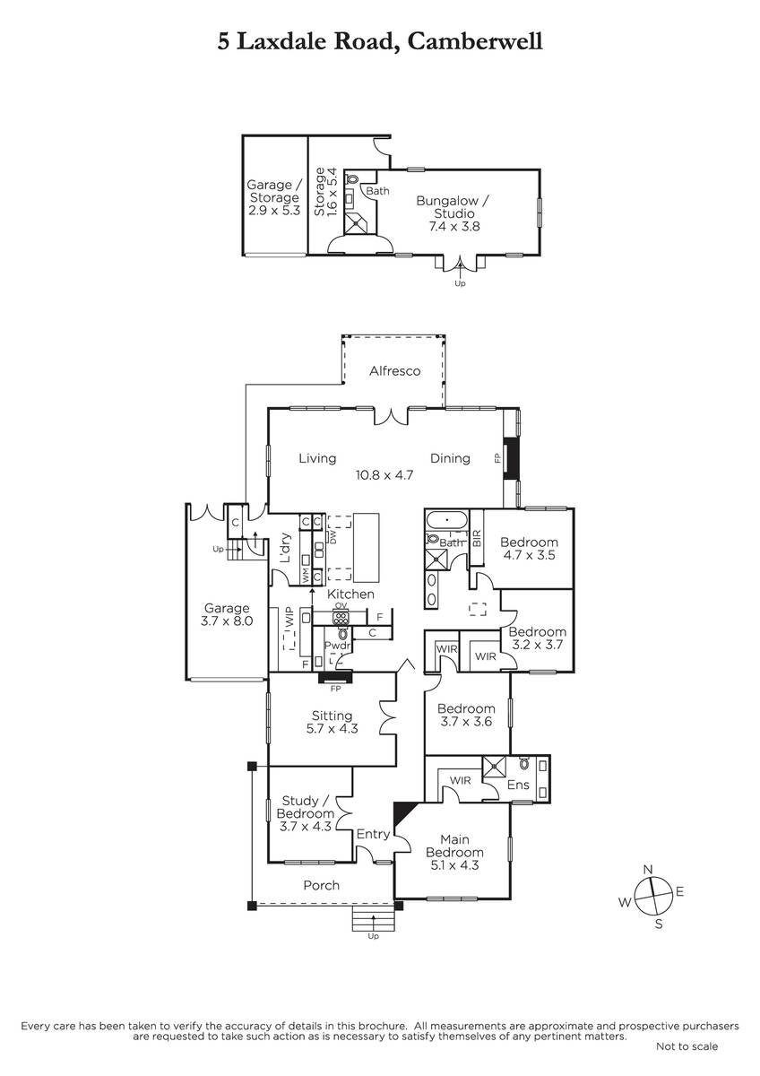 Framed by an elevated verandah, the wide entrance hall featuring Baltic pine floors, ornate ceiling and leadlight windows introduces a study/fifth bedroom option and gracious sitting room with an open fire. The Baltic pine floors continue through the gorgeous main bedroom with decorative fireplace, walk in robe and chic en suite and a separate children's wing comprising three additional double bedrooms with walk in/built in robes and a stylish central bathroom. Expansive in scale, the spectacular open plan living and dining room also features Baltic pine floors, a gas log fire and a Hampton's inspired gourmet kitchen boasting Corian benches, beautiful Blackbutt island bench, 120cm premium Falcon double oven with induction cooktop and a butler's pantry. French doors open to the covered deck and the picturesque private north-facing garden with a versatile bungalow/studio with bathroom, storeroom and garden shed.