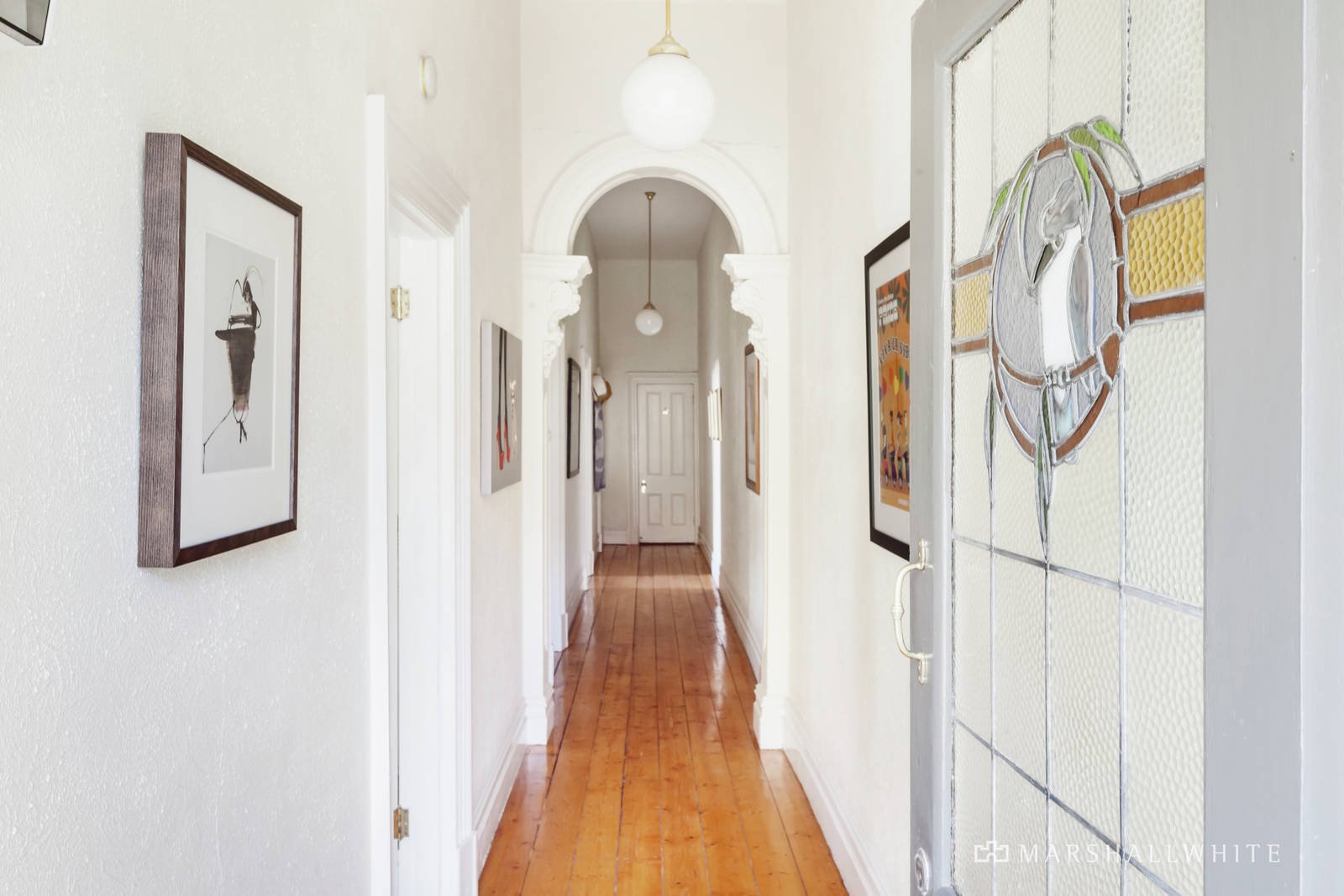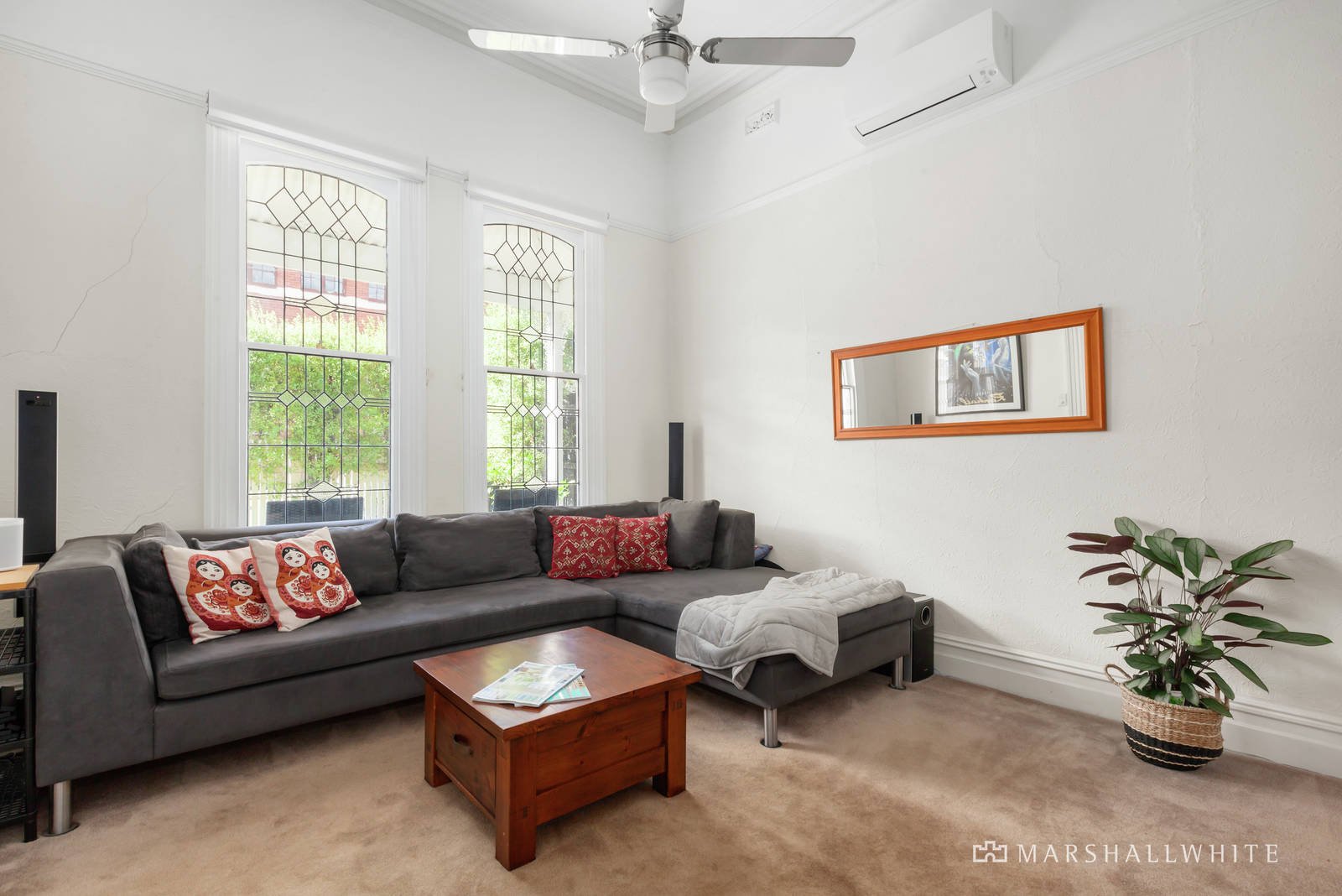 High ceilings and Baltic pine floors are featured in the wide entrance hall which leads to a gracious sitting room boasting a gas log fire and exquisite leadlight windows, two double bedrooms and a stylish bathroom. Baltic pine floors flow through the light-filled living and dining room with study nook served by a well-appointed modern kitchen. The living spills out to a large covered deck and the deep private garden with carport accessed via the rear right of way.