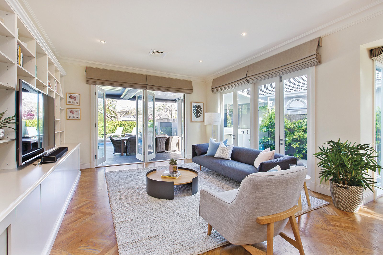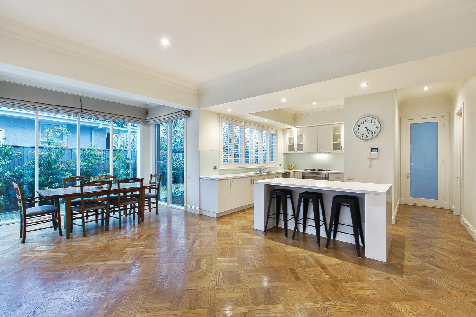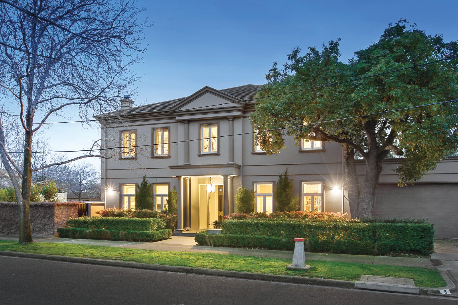Set on a peaceful 687sqm (approx.) allotment, this architect-designed, Georgian-style residence represents the height of luxurious family living and a commanding street presence. Arranged across two levels and introduced by a grand entrance hallway adjacent to formal receptions rooms, a seamless floorplan unfolds. Generously proportioned open-plan informal living and dining spaces with landscaped exterior aspects and bespoke cabinetry are complemented by a contemporary kitchen featuring island bench, stainless-steel appliances and stone benchtops. Flowing effortlessly beyond French doors, a state-of-the-art outdoor entertainment space boasts a bar fridge, inbuilt barbeque, outdoor heating and electric roof louvres - all overlooking a vast pool with water feature and lush garden space. A palatially scaled main suite showcases an extensive walk-in robe and marble ensuite complete with double vanity, large circular spa bath, double shower and sauna. An additional two bedrooms with walk-in robes share a well-appointed central bathroom with separate bath, while a third enjoys direct access to the ground floor bathroom. Also includes large first floor study (or a 5th bedroom), laundry, powder room, outdoor shower, parquetry flooring, Jetmaster fireplace, plantation shutters, ducted vacuum, video intercom, security and surveillance systems, 6000L rainwater storage, fish pond with water feature and garage for four cars.