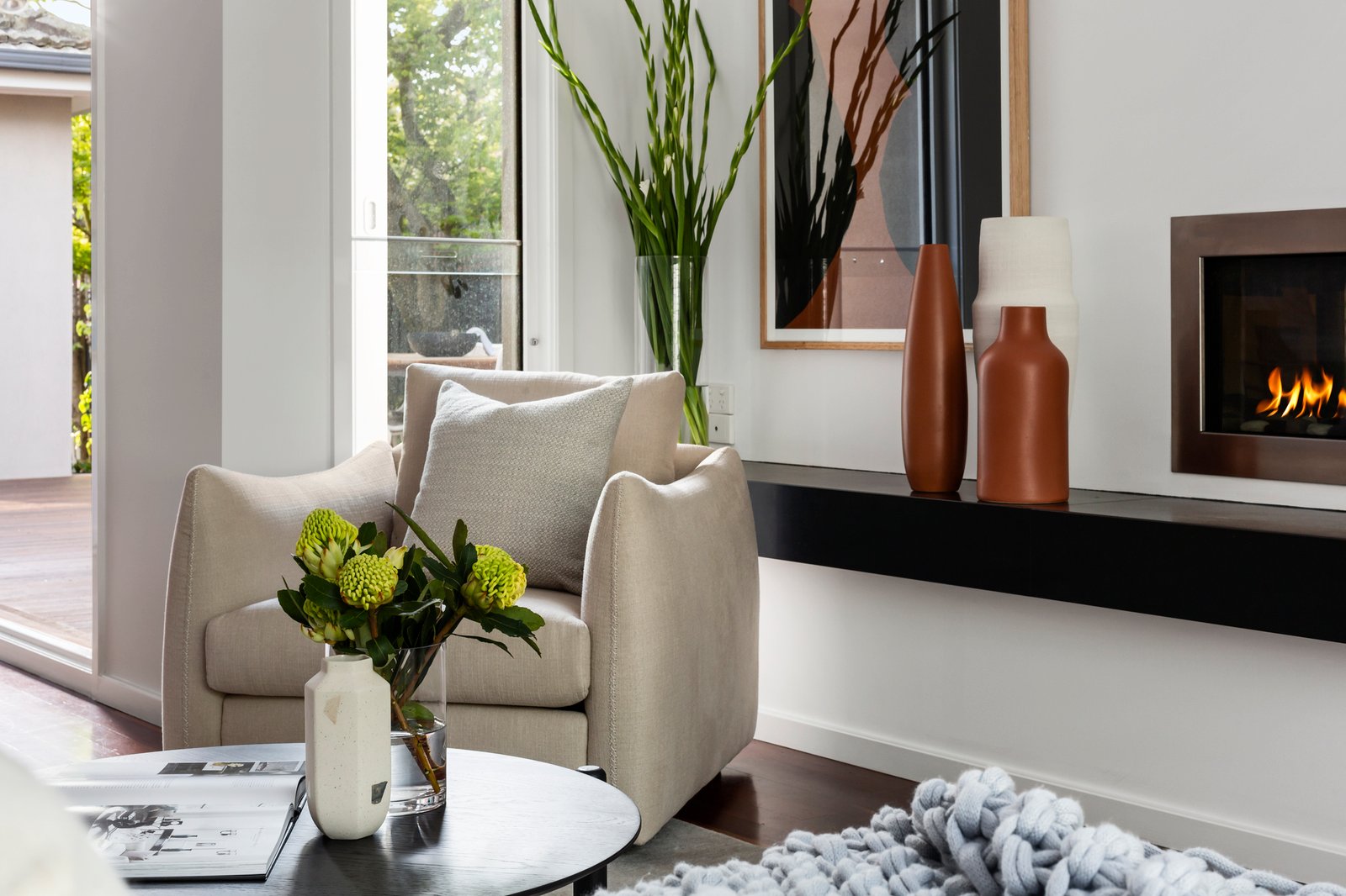 Streaming with natural light, the expansive sitting and formal dining room featuring a gas pebble fireplace, plantation shutters and dark timber floors opens through bi-fold doors to a tranquil north-facing deck. The generous family living/dining room and gourmet kitchen appointed with Miele/Ilve appliances and stone benches opens to the landscaped northwest private garden and picturesque pool and spa surrounded by decks. The gorgeous main bedroom with built in robe and designer en suite enjoys its own space serenely set apart from three additional robed bedrooms, a home office and stylish bathroom with bath.
