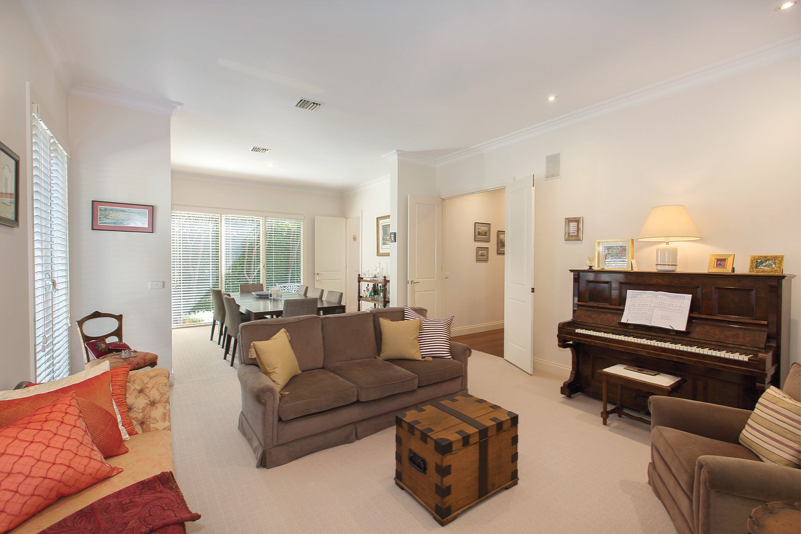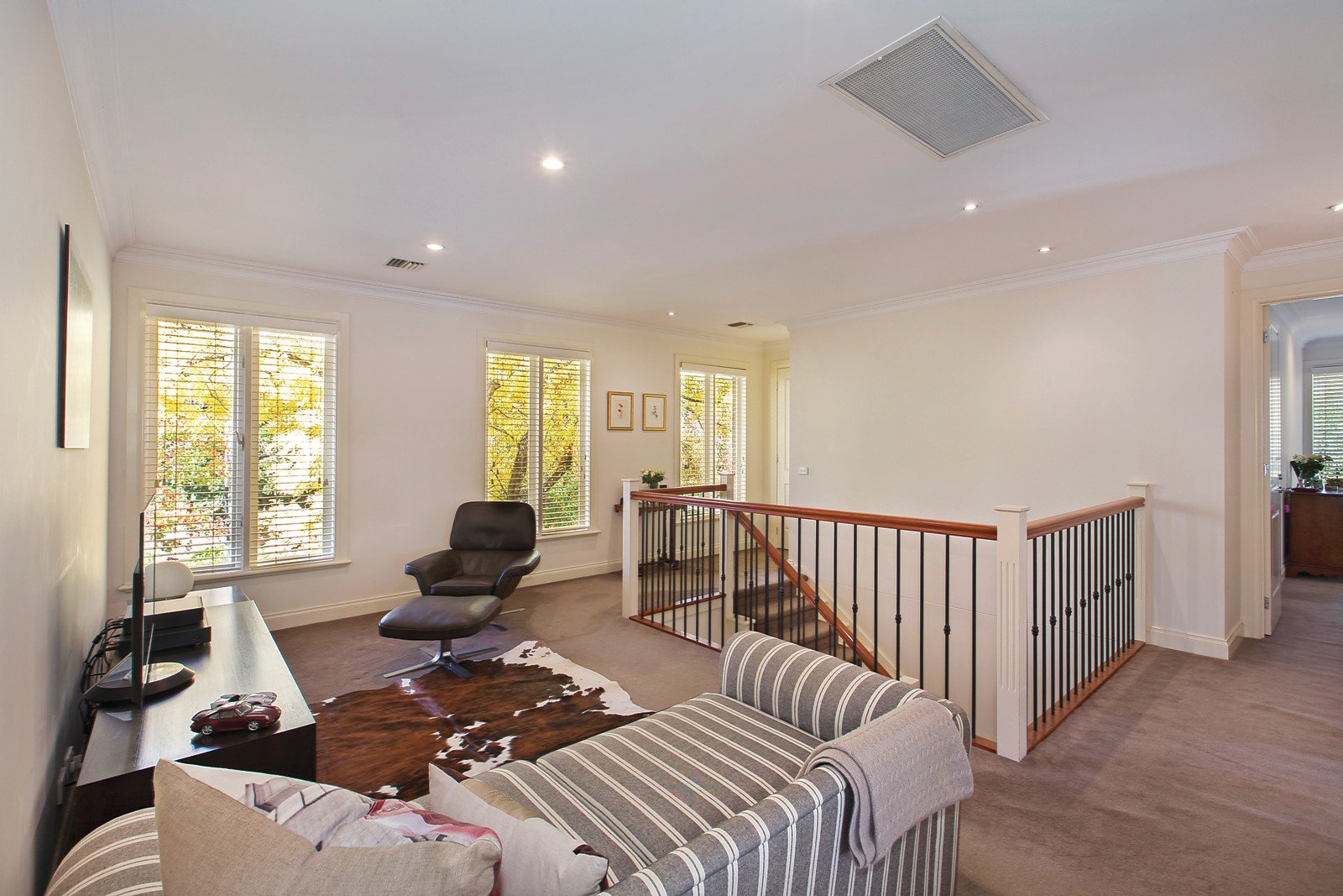 Behind a broad street frontage, the welcoming entrance hall introduces a study and beautiful formal sitting and dining room overlooking the garden. The gourmet European kitchen boasting stone benches and a light-filled, generously proportioned living and dining room with gas fireplace open out to the picturesque private leafy west-facing garden with entertaining deck. Surrounding a retreat upstairs, two lavish bedrooms with stylish en-suites and walk in robes are matched by two additional double bedrooms with walk in robes and a chic bathroom.