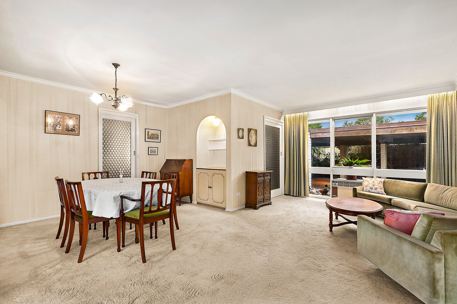 Behind the distinctive 1970's façade, a central hall leads through to an expansive L-shaped formal sitting and dining room, a bright capable kitchen and family living and dining room. The main bedroom with a semi-en suite and walk in robe is complemented by three additional bedrooms with built in robes and a bathroom with separate powder-room. The deep private leafy garden with a large BBQ terrace and double carport offers plenty of room to extend.