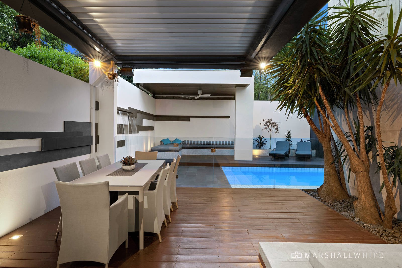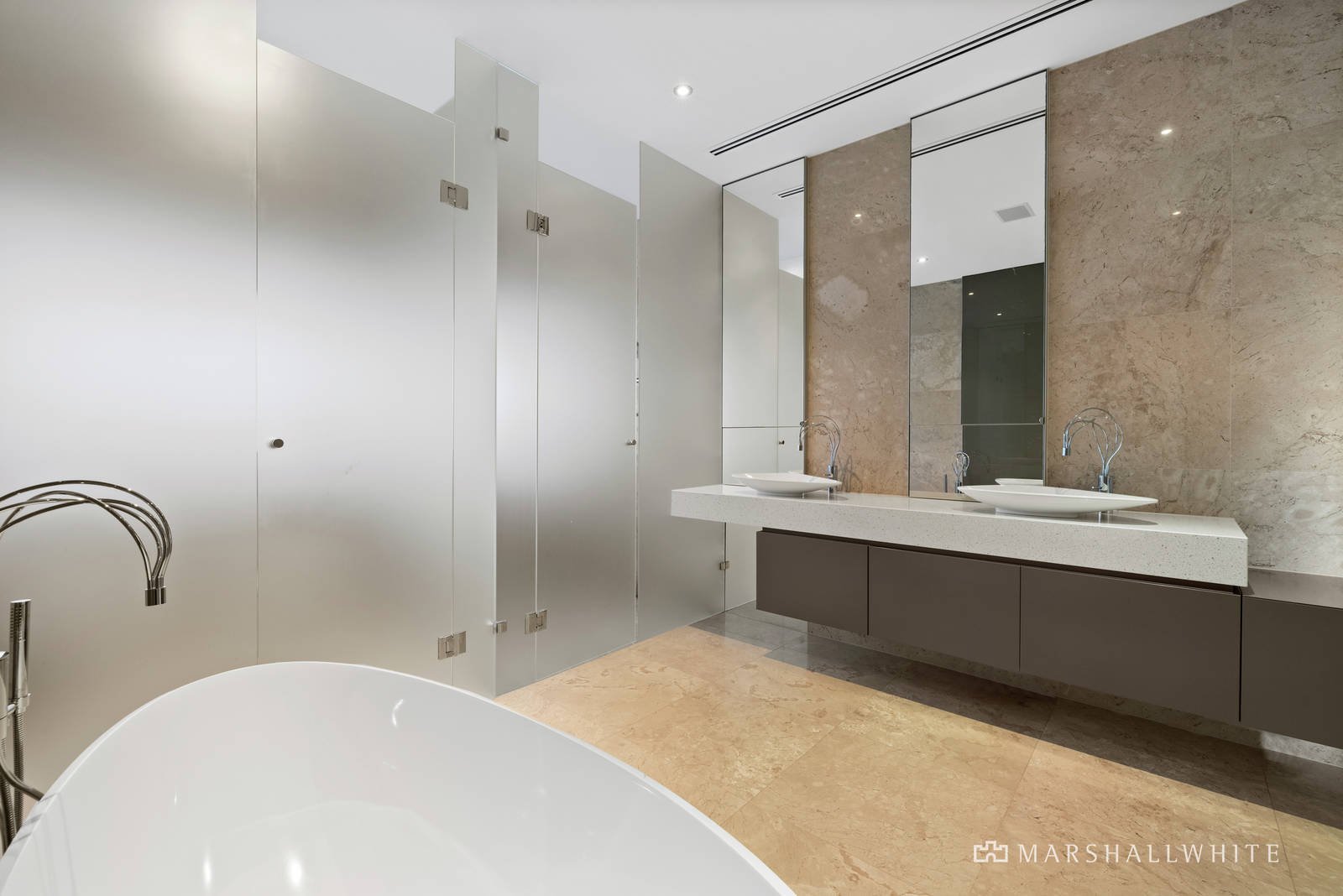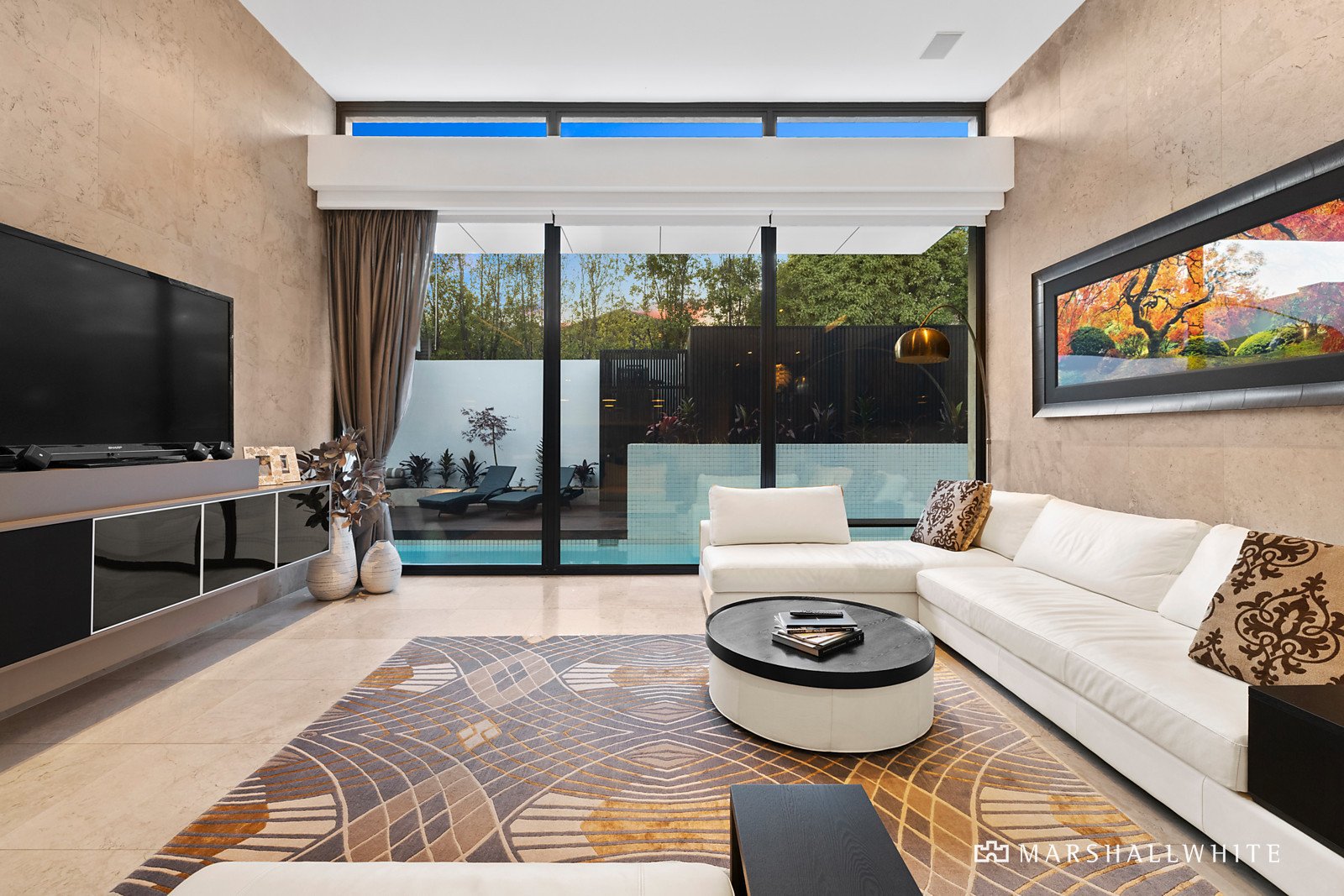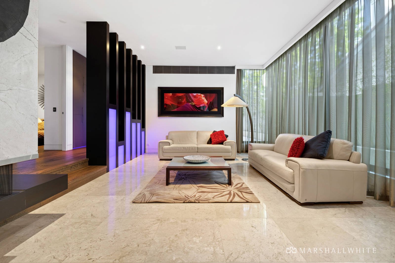 Combining high end sophistication alongside family practicality, every specification has been carefully considered including more than 500sqm of European marble tiles used throughout, creating continuity and flow for the occupants. Grand expanses of glass accent throughout the ground floor where a fully equipped office, formal living and dining rooms a plush guest bedroom and huge family room deliver great family flexibility and largescale entertaining potential. Outside a gas and solar heated pool and spa, sauna, outdoor kitchen and undercover entertaining zone, sundeck and shower room confirm immediate alfresco enjoyment.