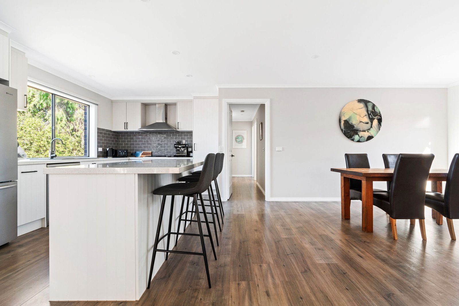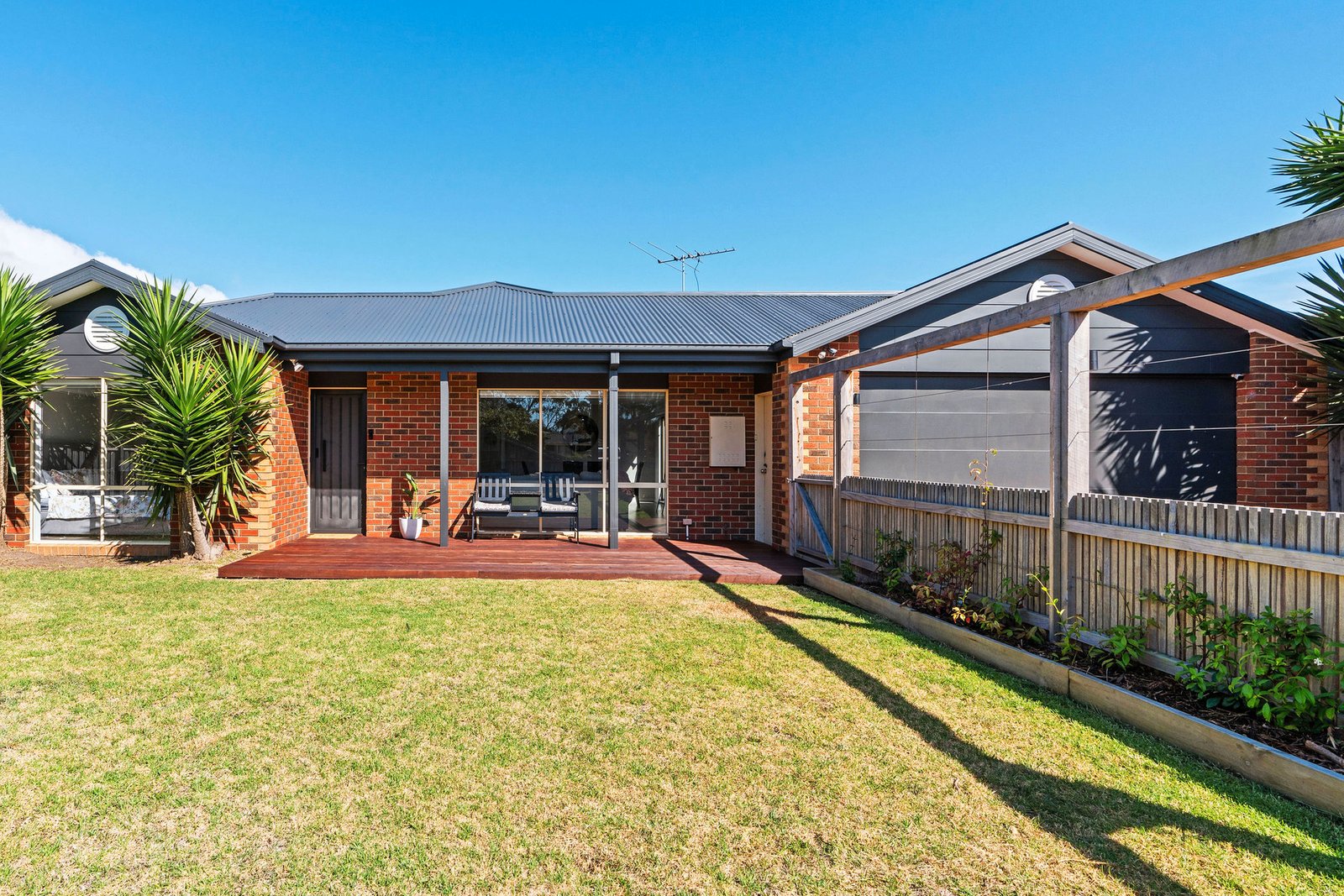 Wonderfully private, the main bedroom is a stylish retreat with its ensuite and walk-in robe, while two additional bedrooms at the rear offer built-in robes and are serviced by a chic family bathroom and a separate toilet. The laundry is a spacious haven with custom storage and rear yard access, where the wide open space and established landscaping provides an excellent canvas to craft your ideal alfresco setting.