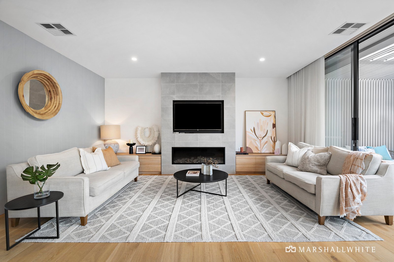 Includes gas-log fireplace, hydronic heating, under-floor heating, ducted heating and refrigerated cooling, gas-heated swimming pool and spa, and alfresco pergola, designer lighting including stair lights and LED strip lighting in bathrooms, security intercom and keyless entry system, two car driveway behind secure remote controlled gates.