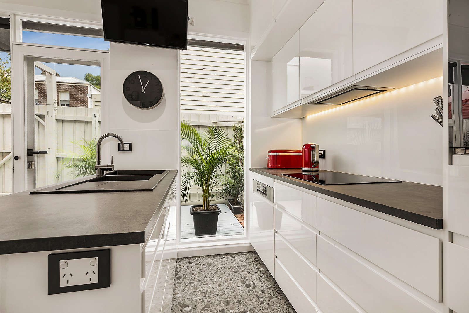Stylishly refurbished while retaining wonderful period features, this charming c1935 freestanding solid brick residence's light-filled dimensions deliver immediate lifestyle and investment appeal in a prized location just a short stroll to Albert Park Village, the beach, Albert Park Lake, MSAC, light rail, trams and schools. Wide oak floors add a contemporary contrast to the ornate ceilings and leadlight windows in the entrance hall and living room warmed by an open fire. The stylish new kitchen appointed with European appliances and a sunny dining area open to a wrap-around northeast garden with an entertaining deck. The two double bedrooms with built in robes share a chic bathroom overlooking a leafy light-well. Possessing scope to easily extend or rebuild (STCA), it also includes CCTV, RC/air-conditioner, Euro-laundry, garden shed, pull-down attic storage and off-street parking.
