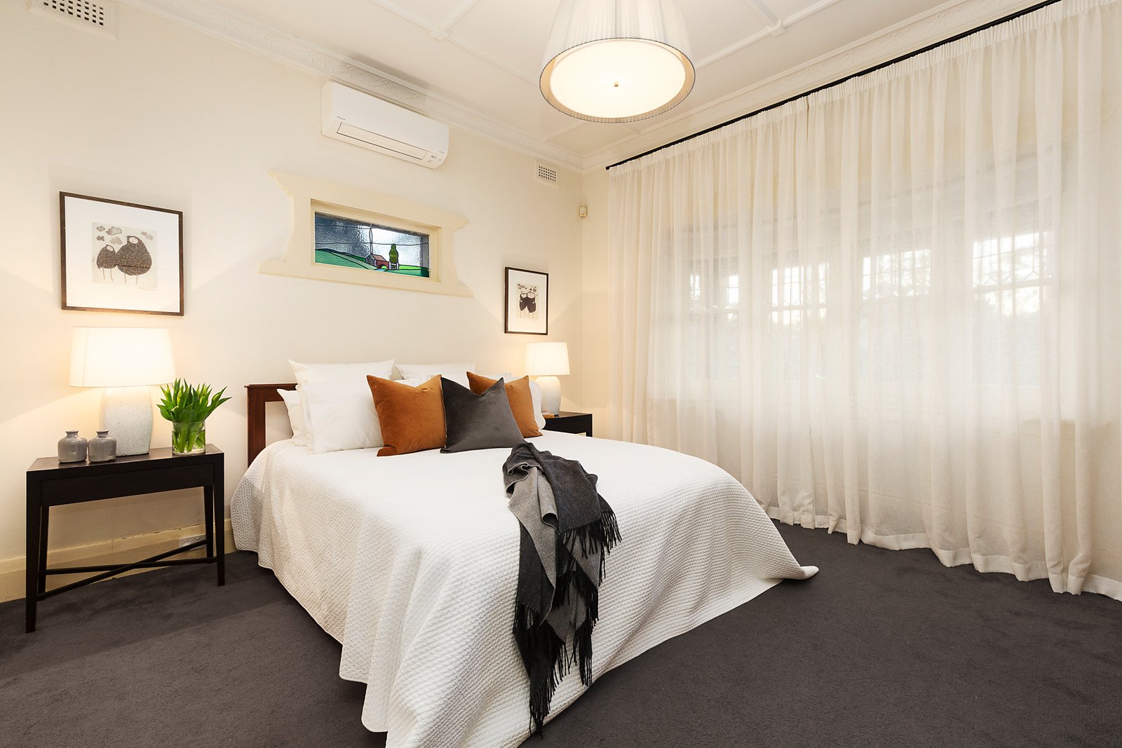 Behind a sweeping verandah, the wide entrance hall boasting timber floors and an ornate ceiling flows through to a glorious sitting room with open fire and leadlight bay window and an adjacent formal dining room also with a fireplace. Spectacular in scale, the open plan living and dining spaces surround an exceptionally generous gourmet kitchen with a stone island bench and Miele appliances. The living area opens to the landscaped private tropical inspired garden with sensational 20m gas/solar heated pool and a tranquil fire-pit. The abundance of family accommodation comprises a serene downstairs main bedroom with walk in robe and en suite and a fabulous children's zone upstairs featuring three double bedrooms with built in robes, a stylish bathroom and huge retreat opening to a full width balcony.
