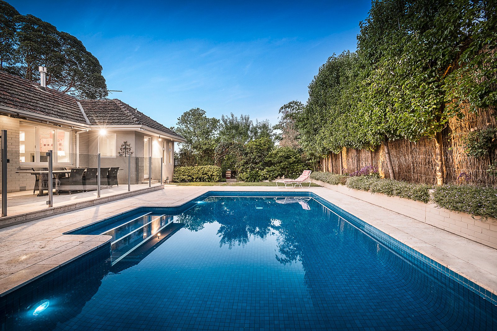 At the tranquil end of a highly sought after avenue, this classically elegant residence (built circa 1953) radiates refined contemporary style inside and out. Impressively spacious with majority of living on one level, zoned interior dimensions and beautiful landscaped garden and pool surrounds (1,012sqm approx.) provide the idyllic family setting to comfortably grow into. A wide reception hall featuring oak parquetry floors introduces a beautiful sitting room with open fireplace and an adjacent library looking out onto a stunning garden setting. Flooded with natural light the generously proportioned living and dining room with gas fire and gourmet kitchen appointed with stone benches, European appliances and a butler's pantry. Bi-fold doors open to an entirely private and enclosed northeast garden oasis with solar heated salt water pool and large Travertine terrace.